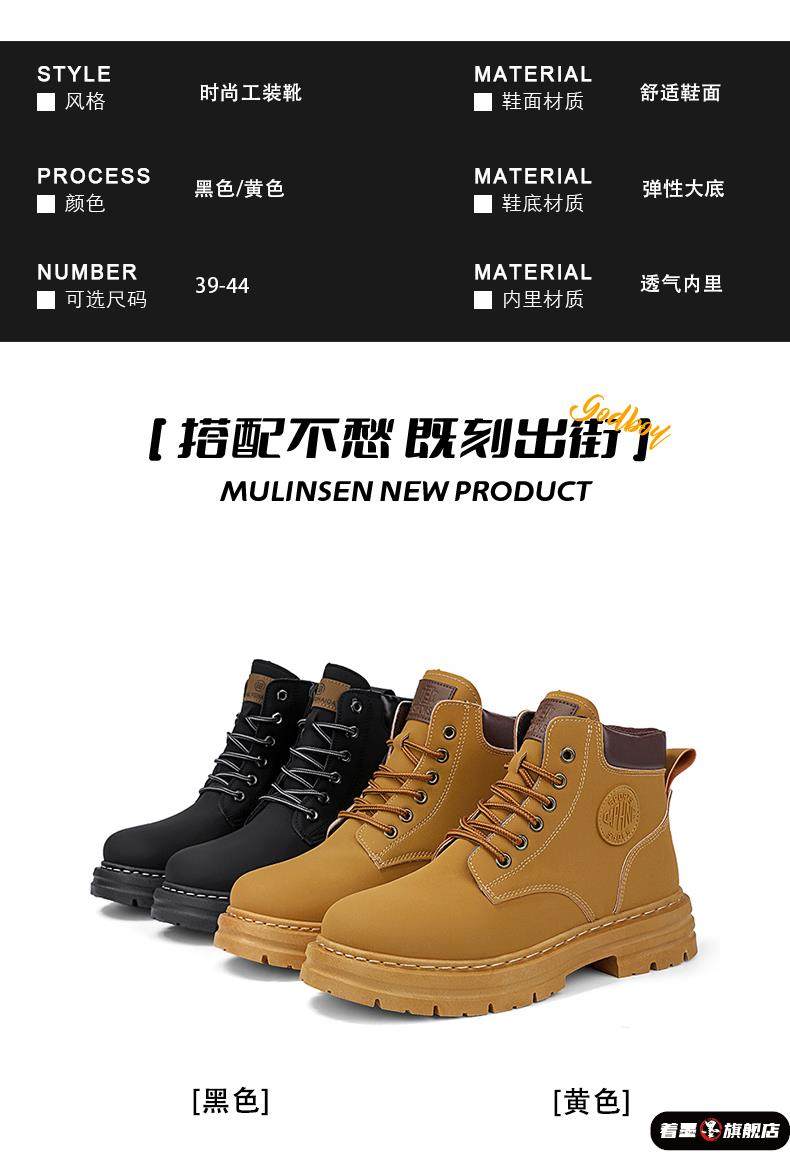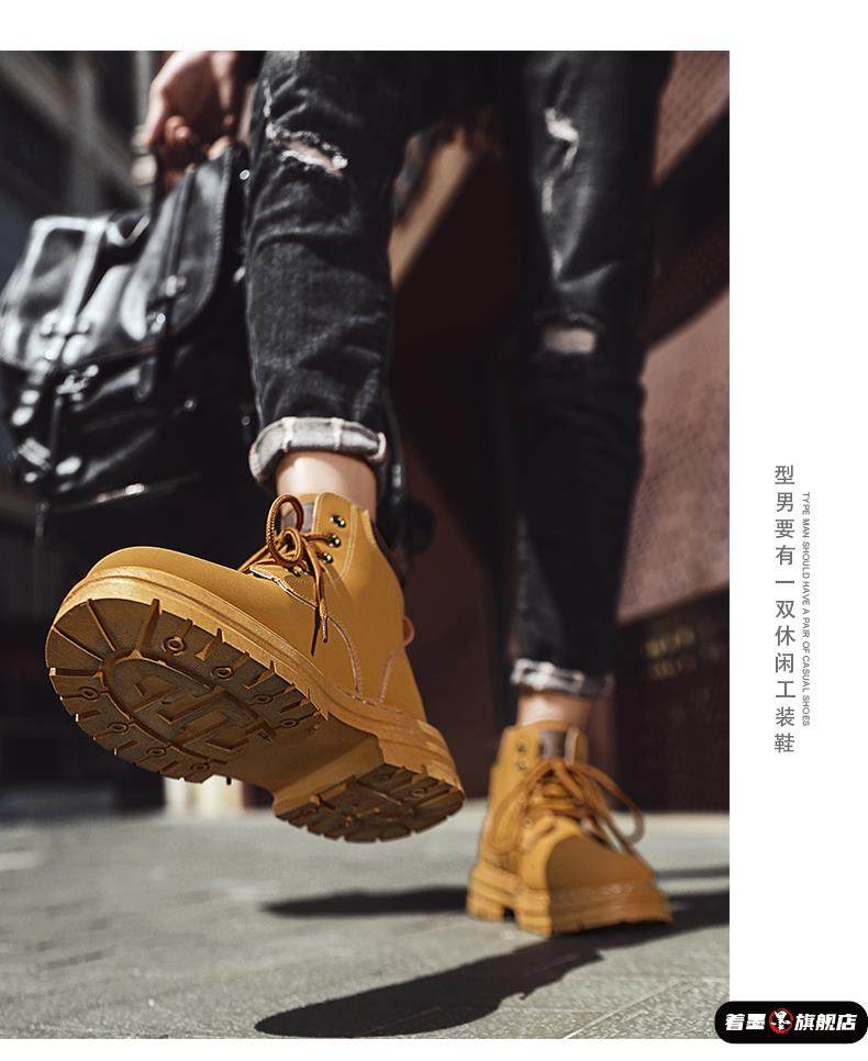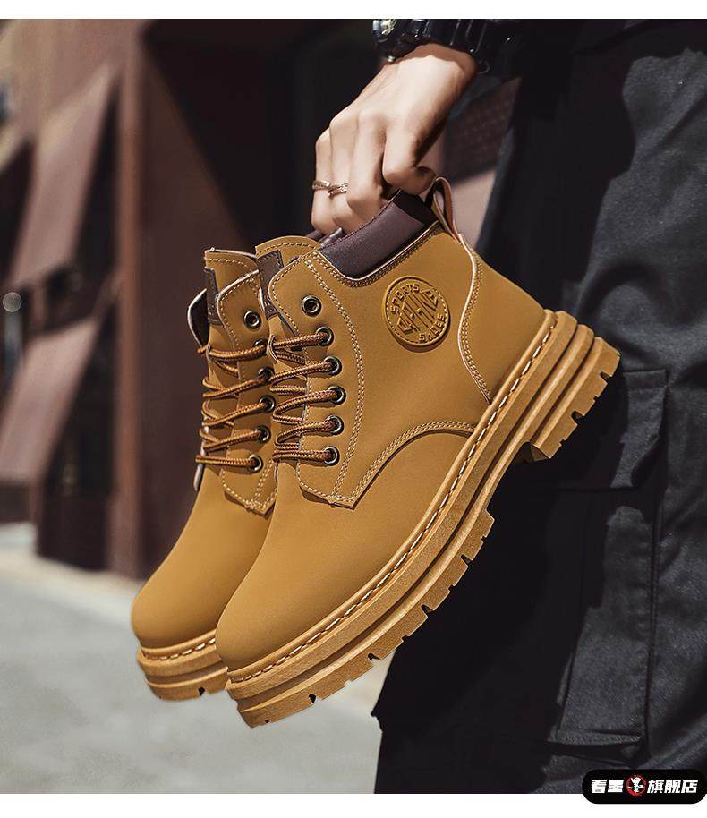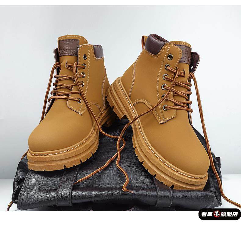 2025 Spring Work Boots Men's Safety Shoes Versatile Martin Boots Leather High-Top Sneakers Casual Shoes Men's Yellow Boots