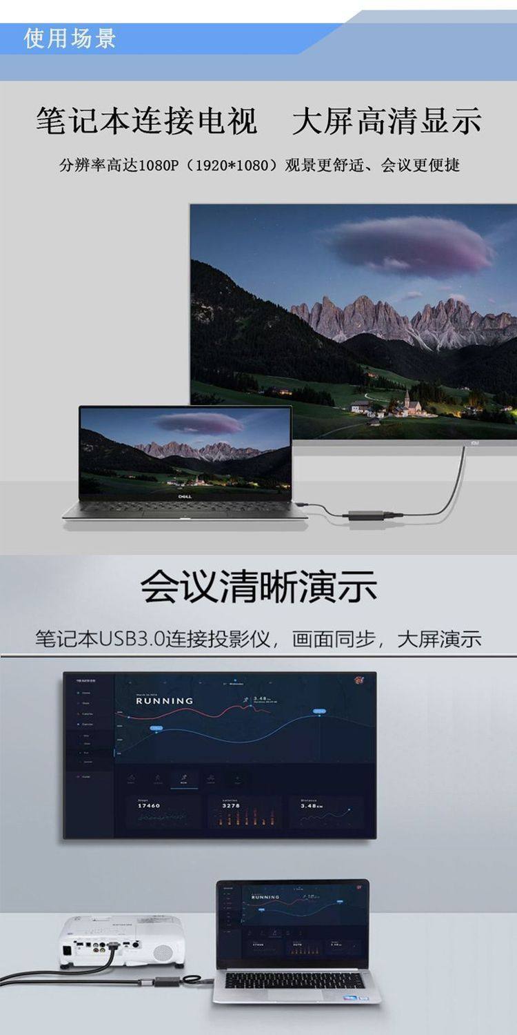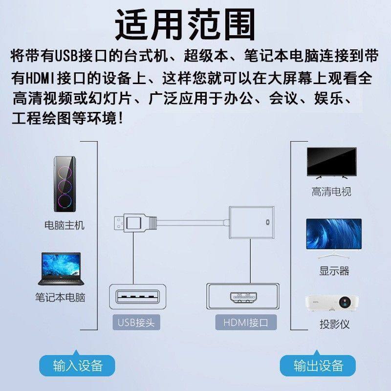 Computer USB to HDMI High-Definition Video Cable Adapter Laptop Split-Screen External Monitor Typec Converter