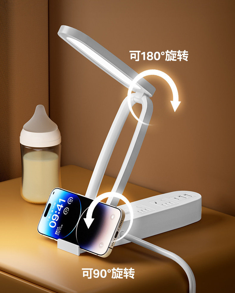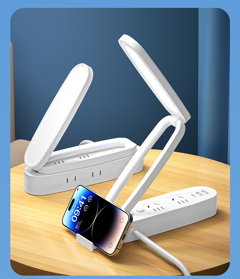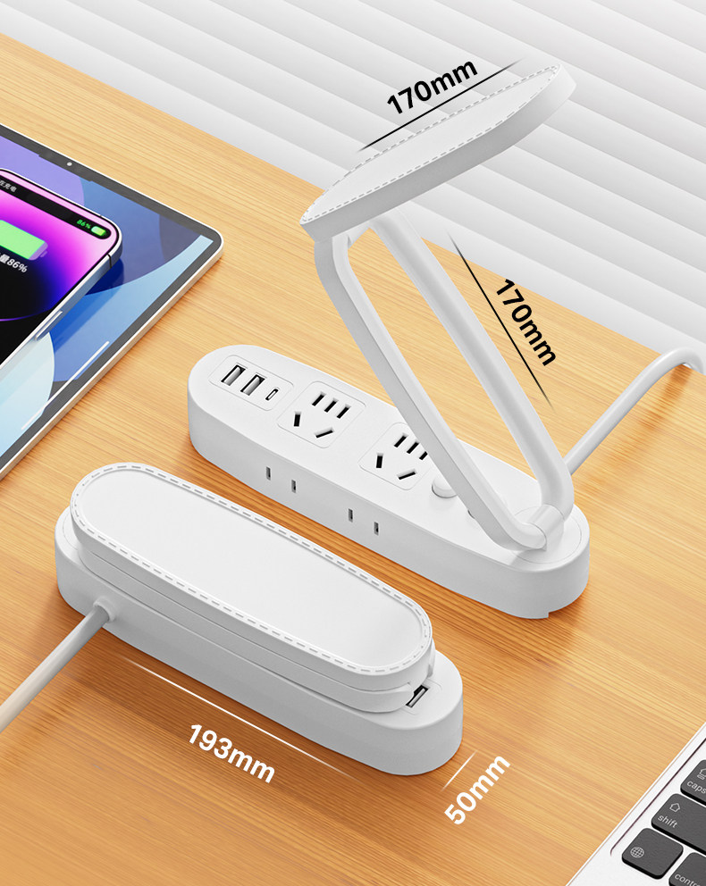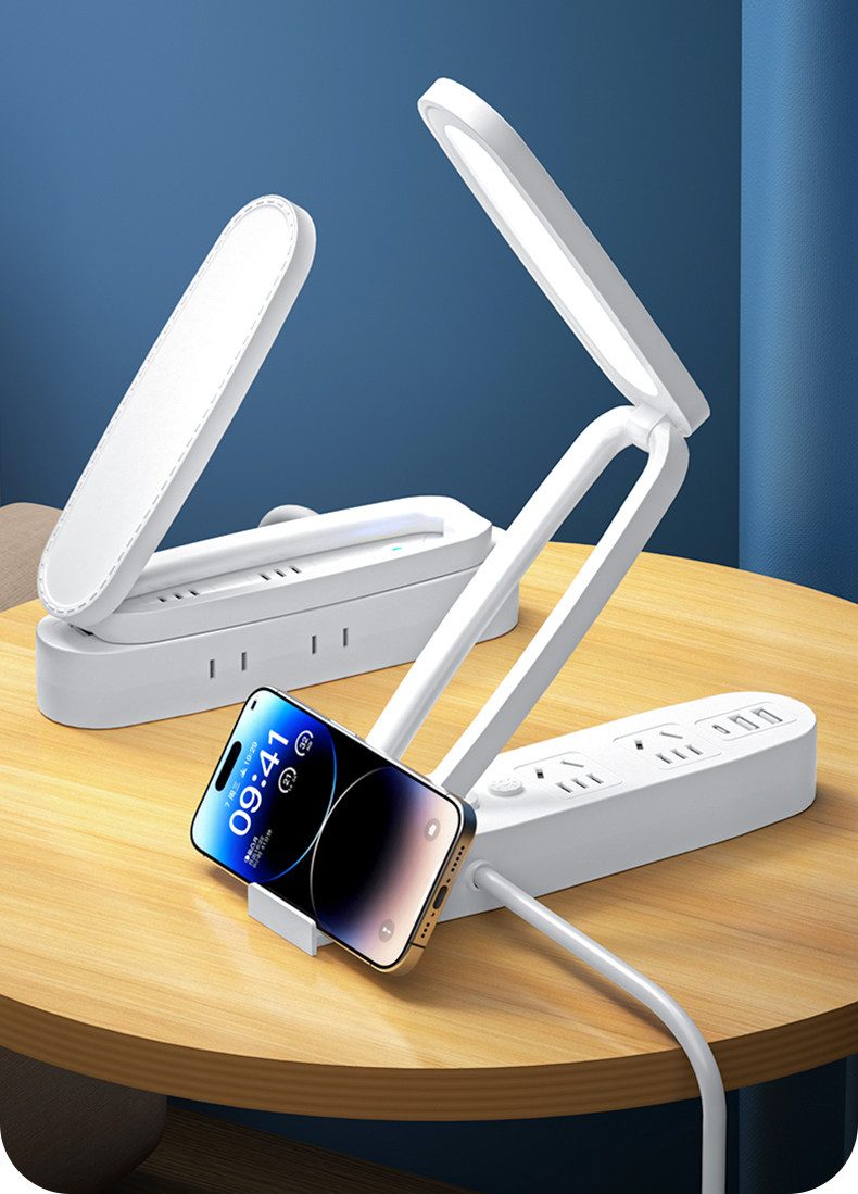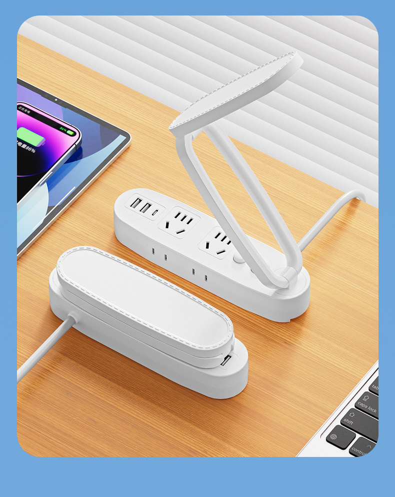 Multifunctional Desk Lamp Led Light Socket Integrated Foldable Night Light with Long Cord Power Strip for Home Dormitory Students
