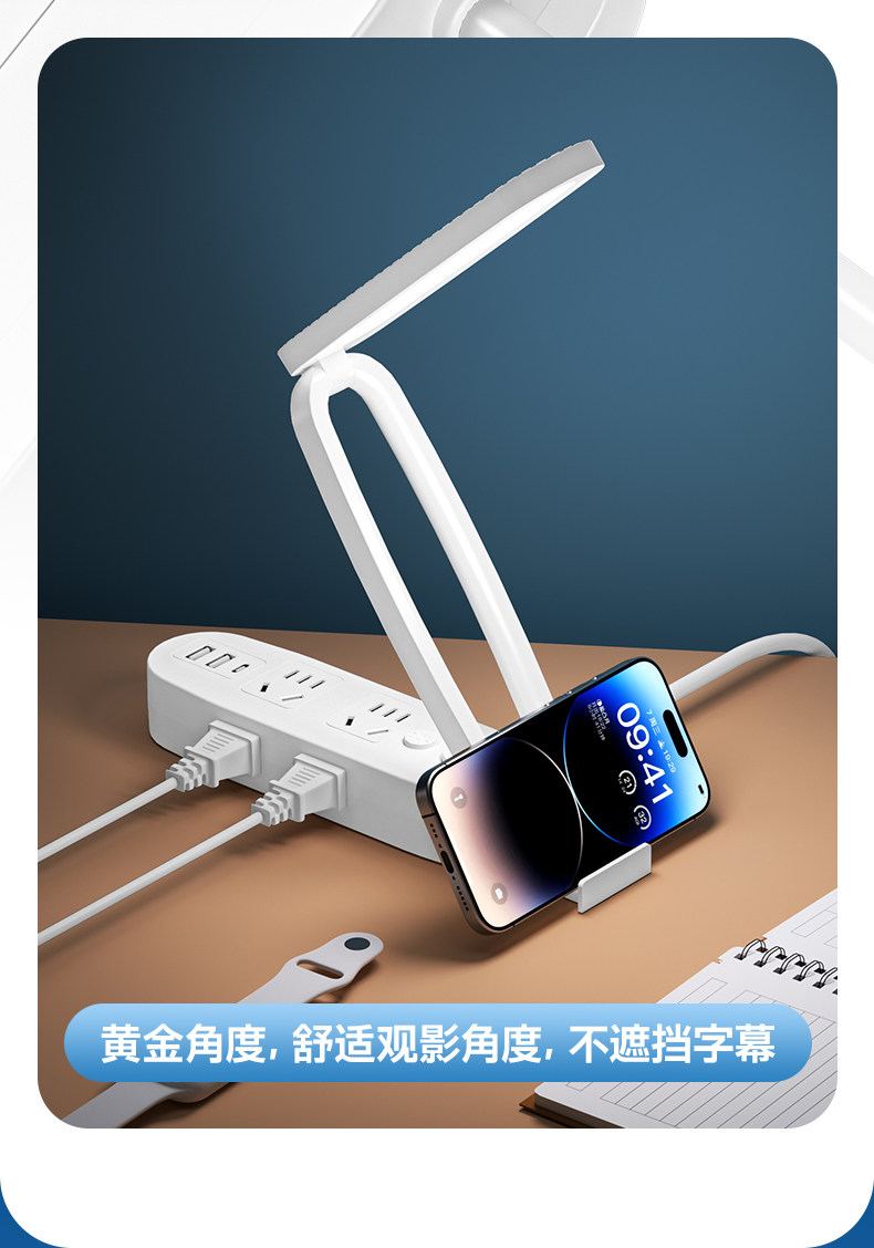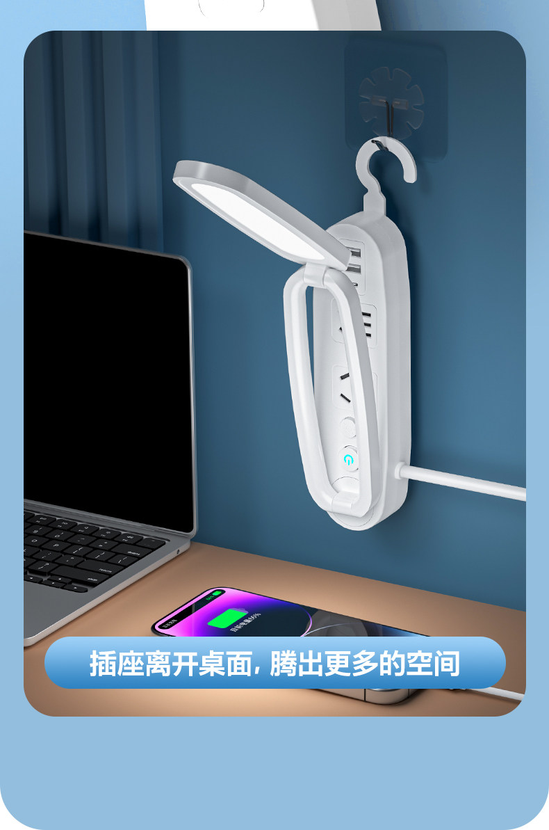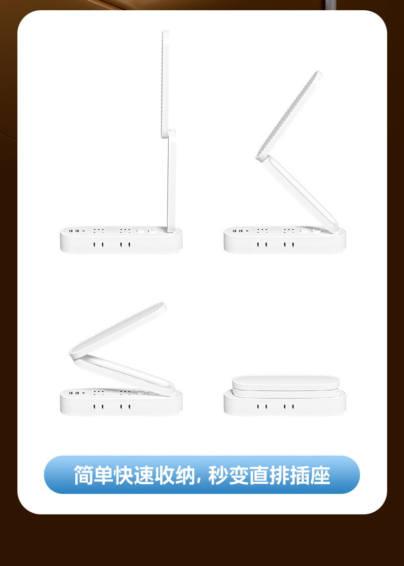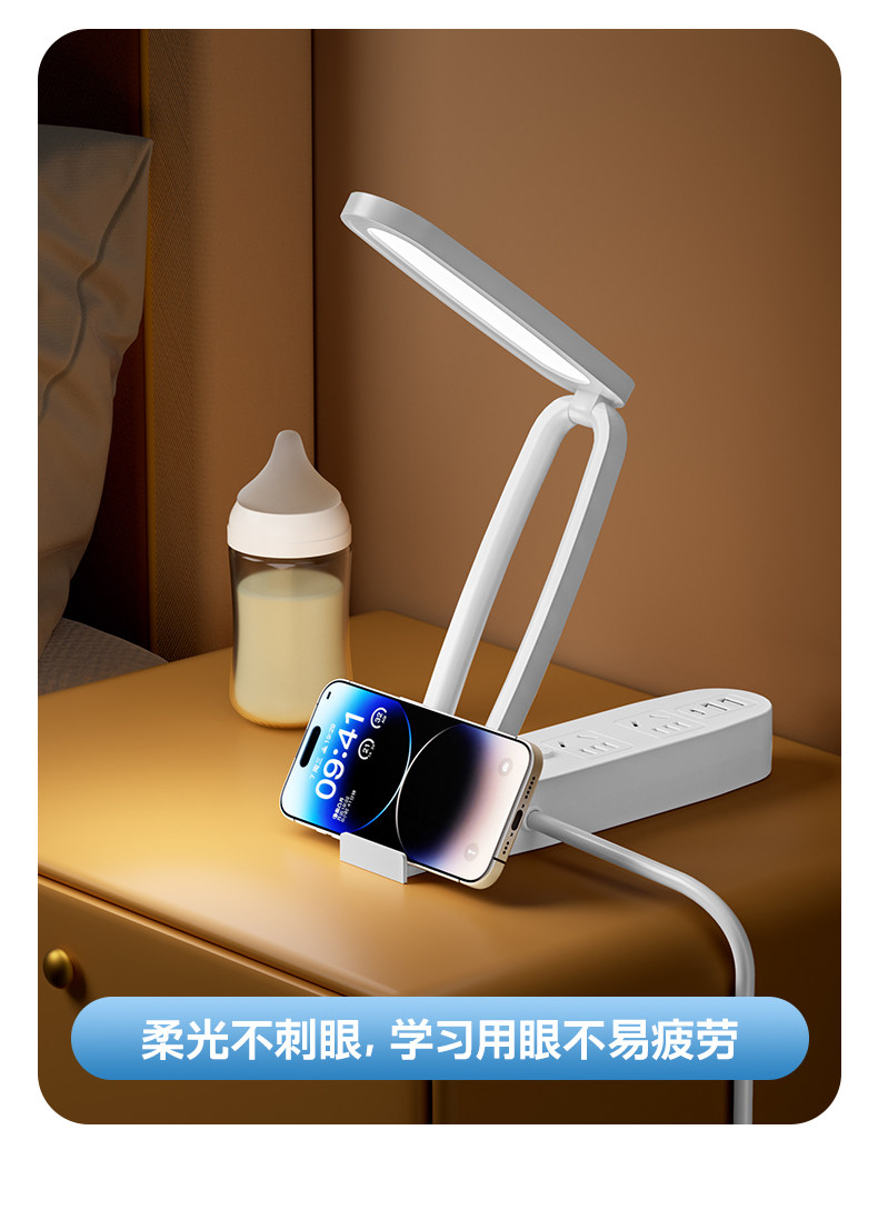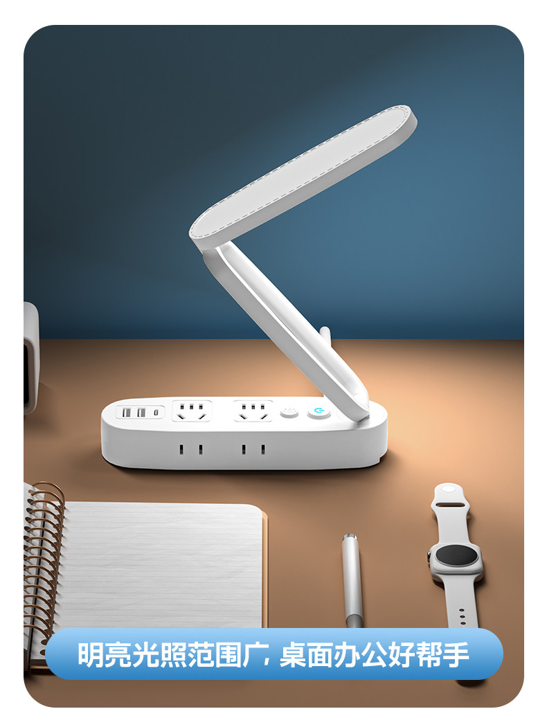 Multifunctional Desk Lamp Led Light Socket Integrated Foldable Night Light with Long Cord Power Strip for Home Dormitory Students