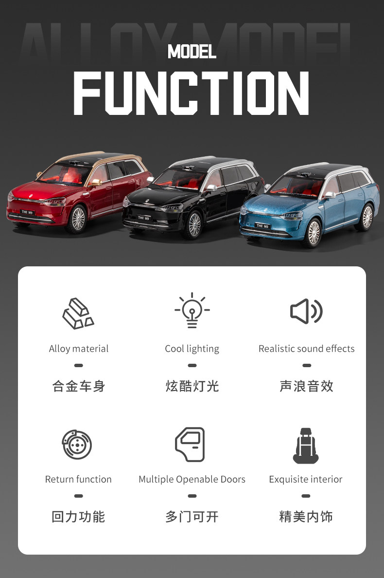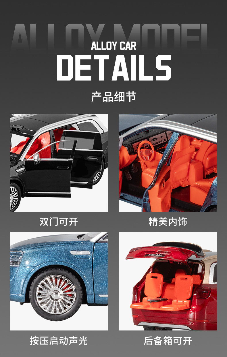 1:24 Qianjie M9 Alloy Suv Car Model with Key, Interior Decoration, Steering Wheel, Boy's Toy Car Gift