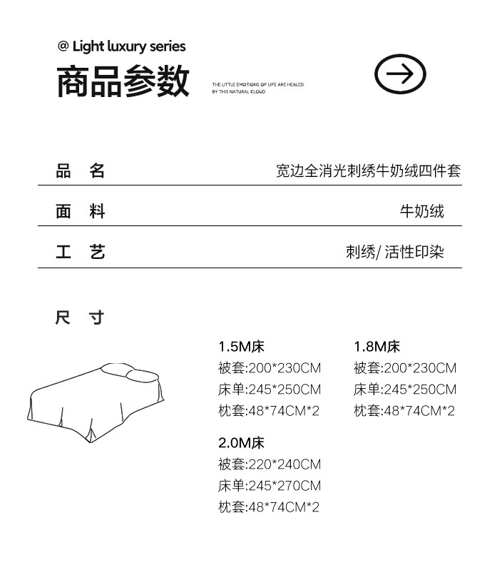 | Applicable Bed Size | 1.5m Bed [Sheet Set of Four] - Suitable for 200*230 Quilt,1.8m Bed [Sheet Set of Four] - Suitable for 200*230 Quilt,2.0m Bed [Sheet Set of Four] - Suitable for 220*240 Quilt |