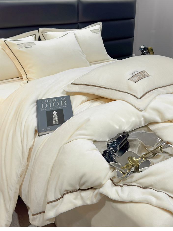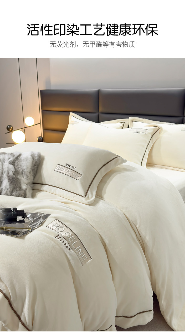 High-End Light Luxury Milk Velvet Four-Piece Set, High Weight and Thickened Bed Sheet and Duvet Cover, Winter Warm Coral Velvet Bedding