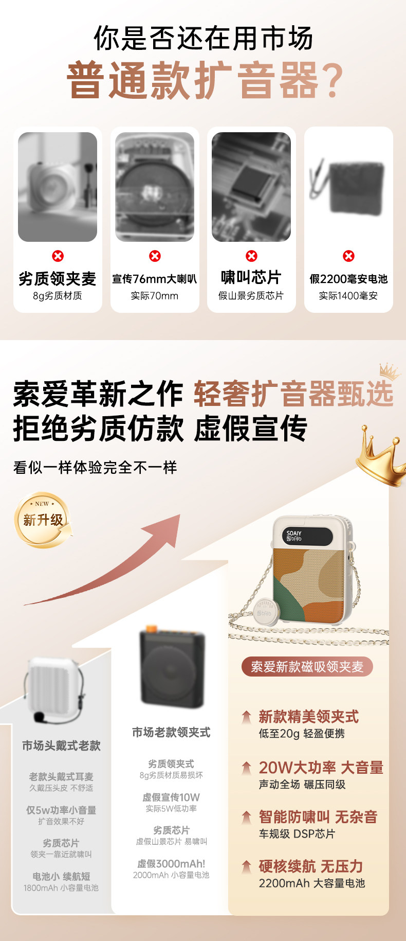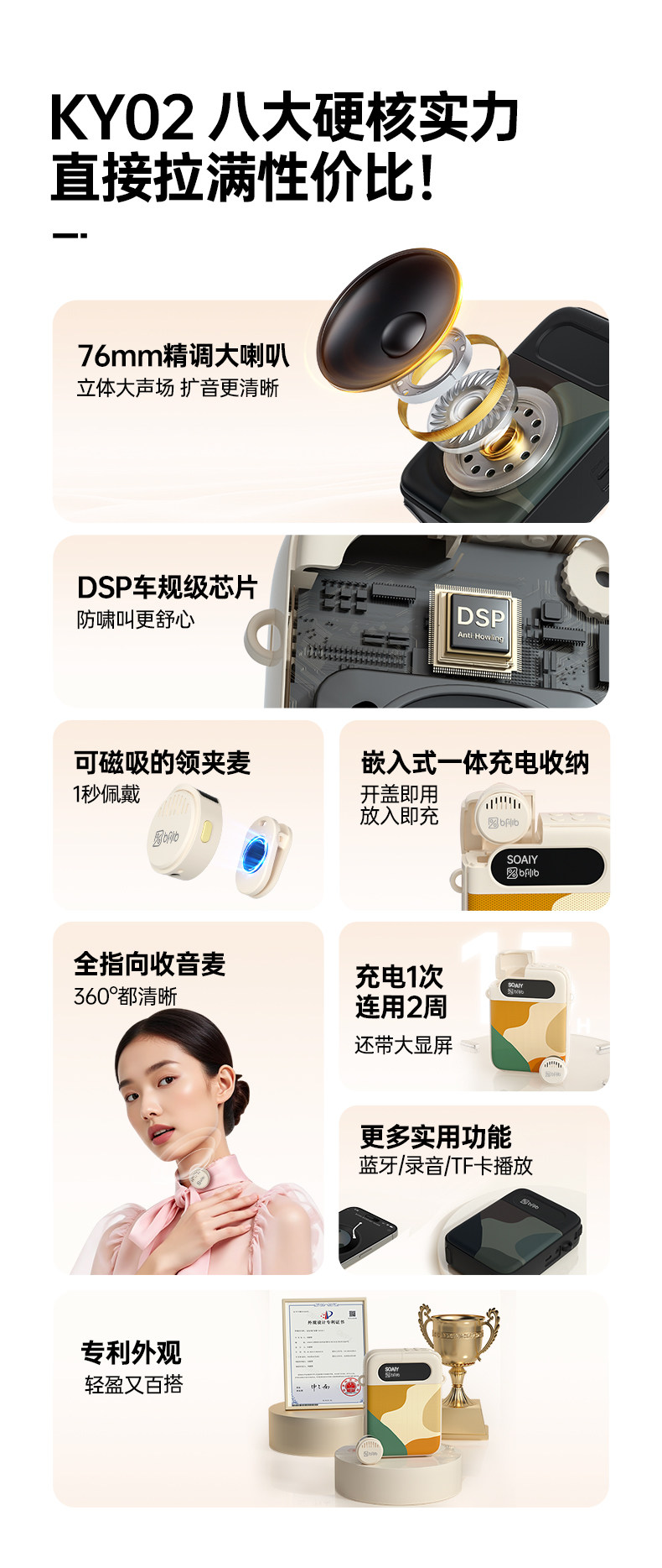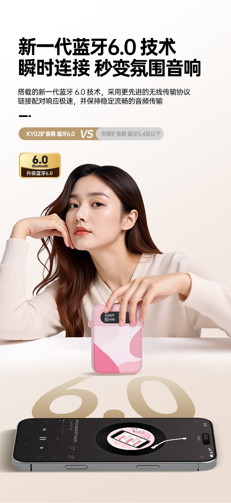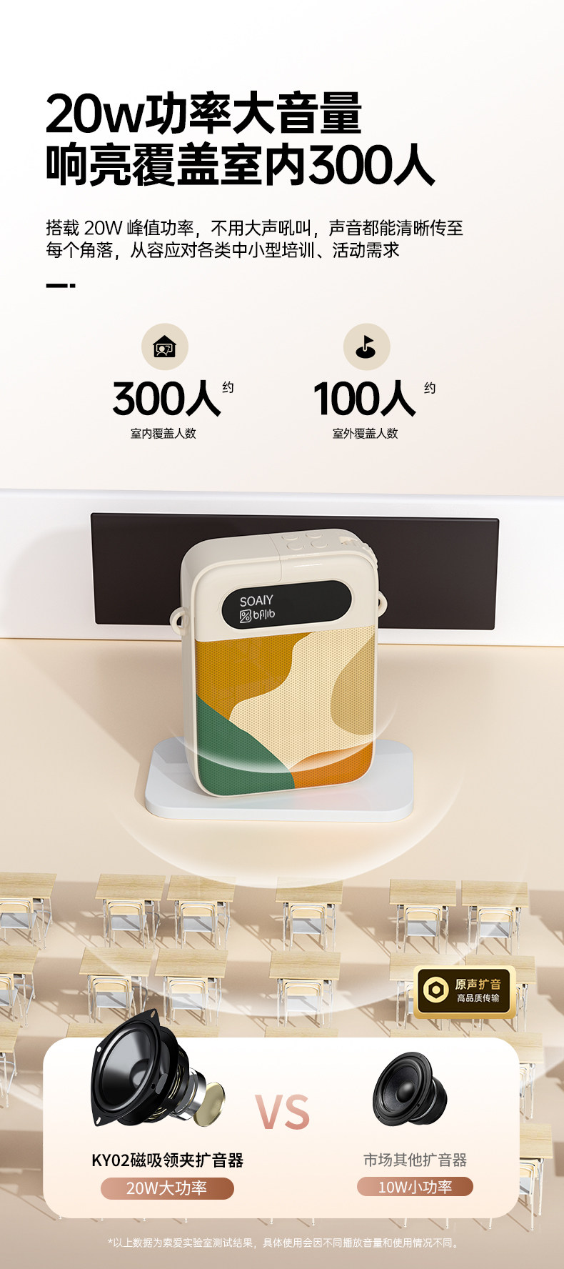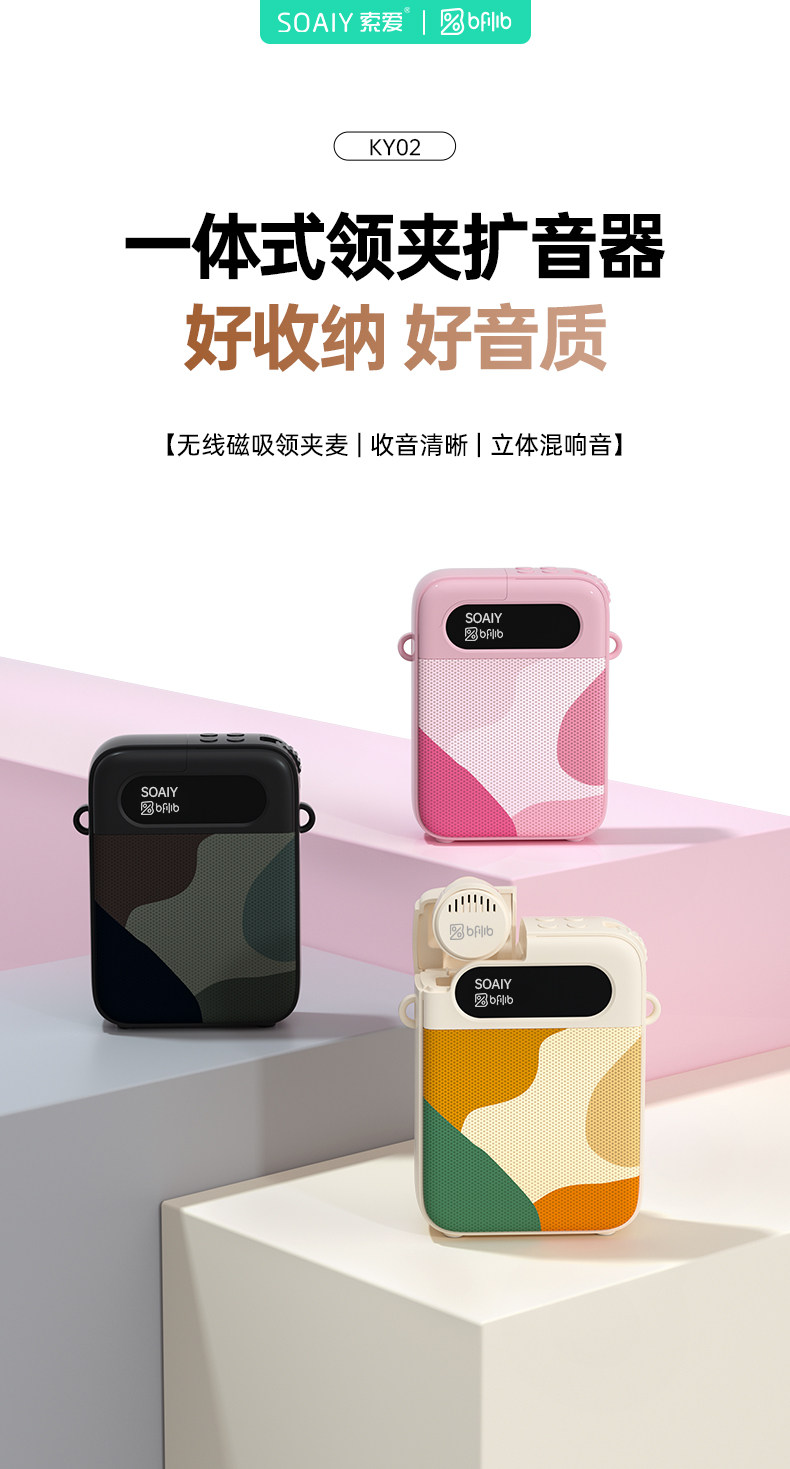 Soaiy Ky02 Wireless Lavalier Microphone Amplifier for Teachers, Teacher's Classroom Microphone Speaker