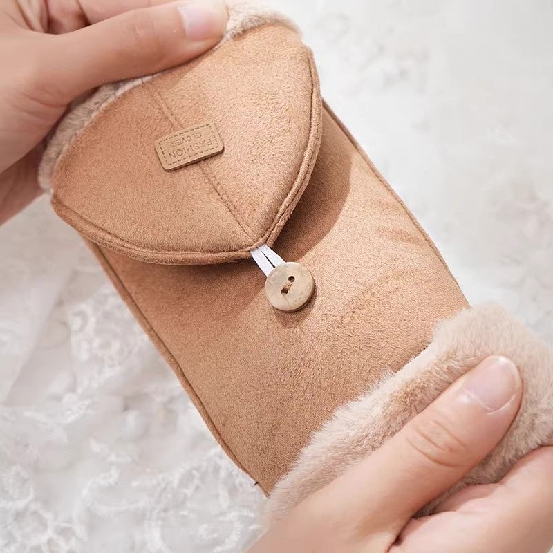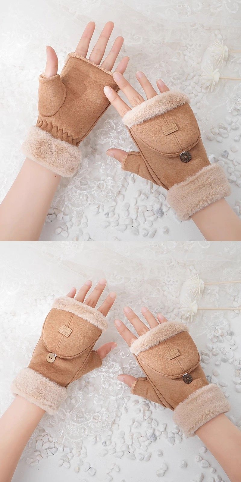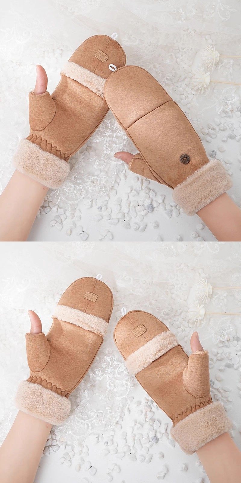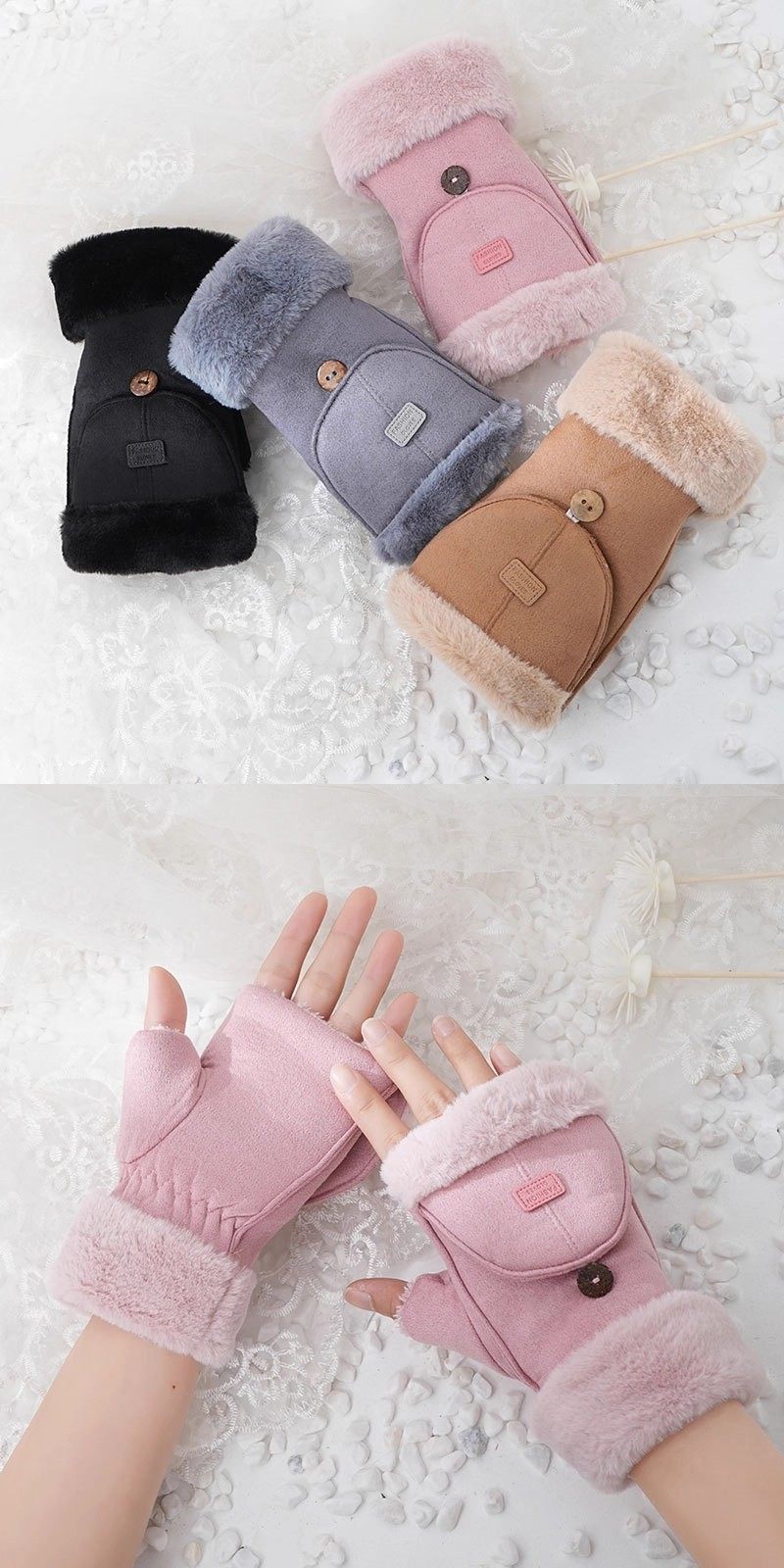 Plush Gloves for Women, Winter Warm Flip-Top Half-Finger Cute Fleece-Lined Student Cycling Touchscreen Gloves, Flip-Top Gloves, Thickened