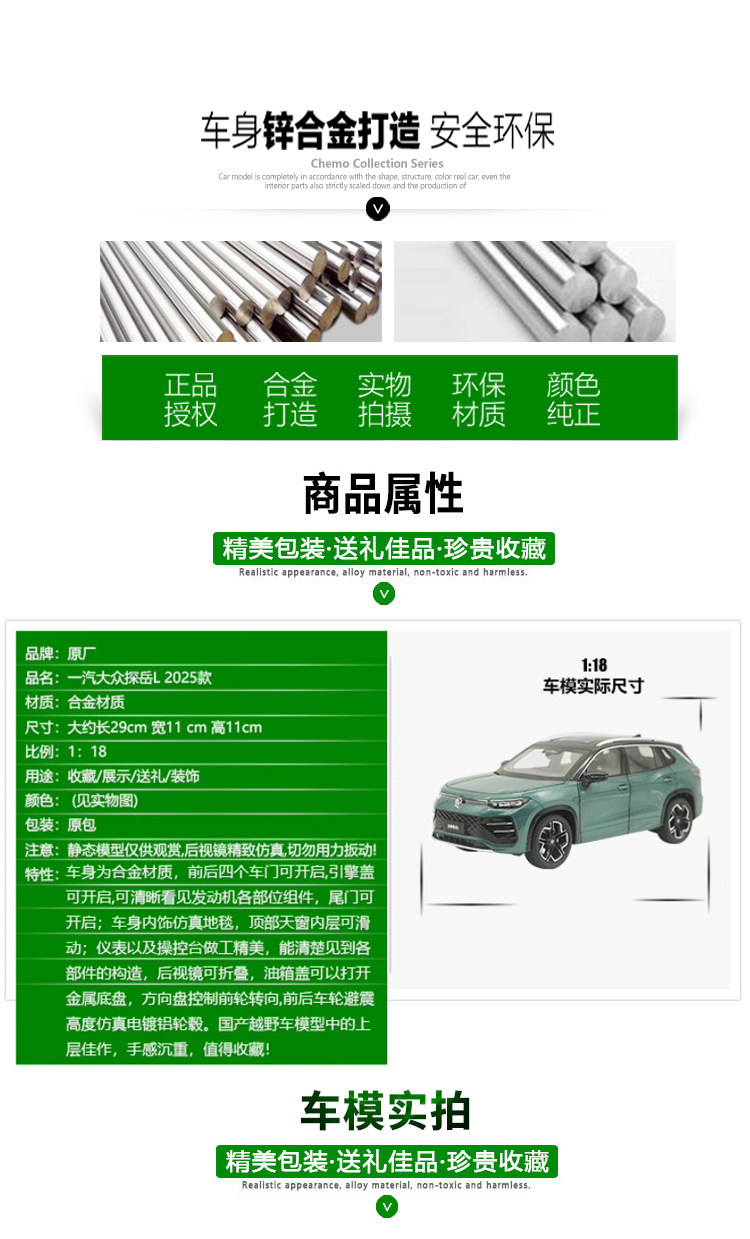 1:18 Original Faw-Volkswagen Tayron L 2025 Model Tayron L Suv Alloy Simulation Car Model