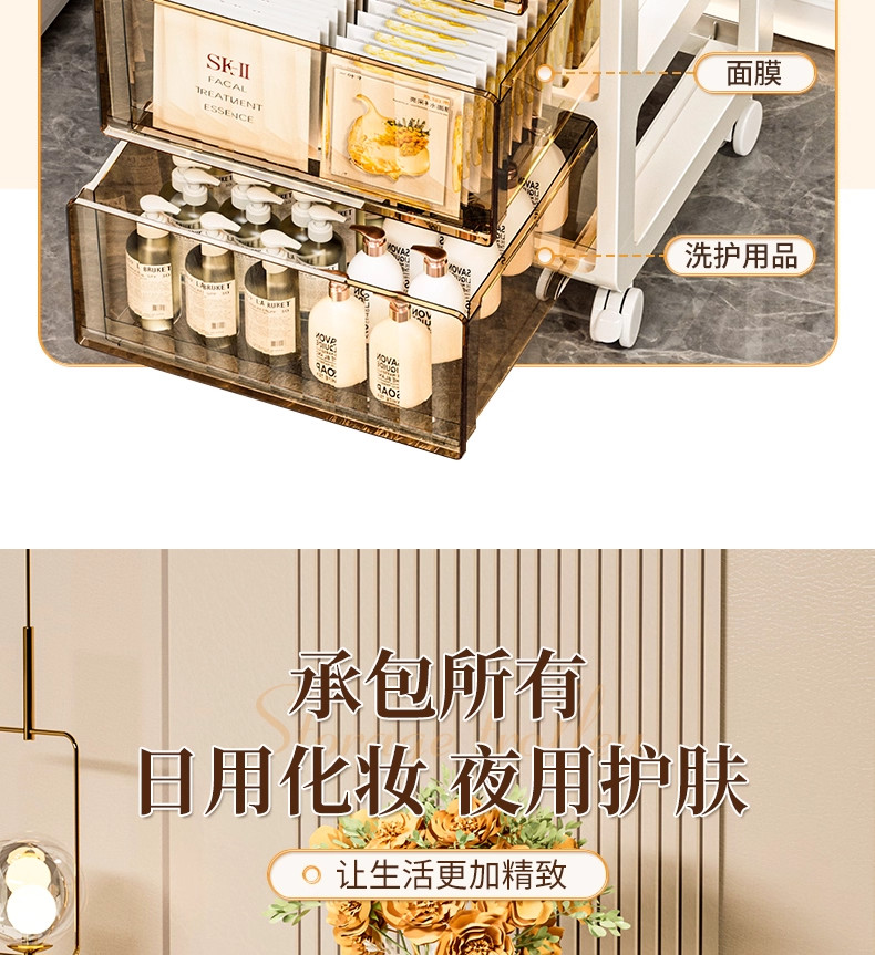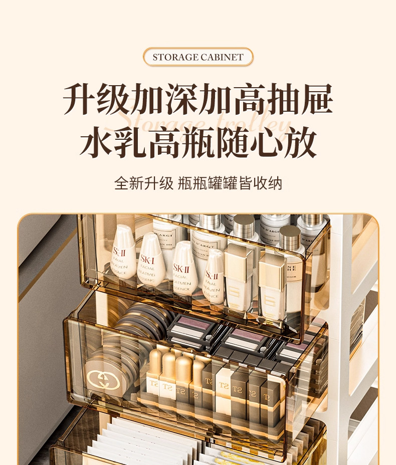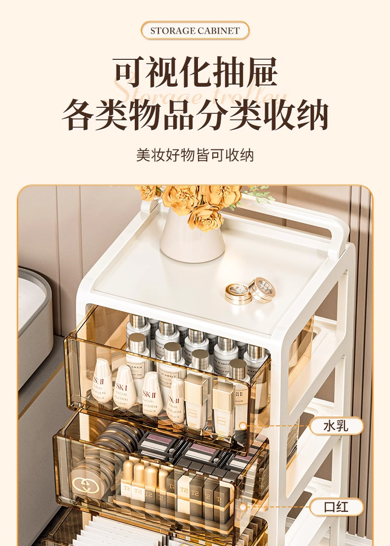 Drawer-Type Storage Cabinet, Movable Multi-Layer Storage Rack, Cosmetics, Living Room, Snacks, Sundries, Toys, Light Luxury Organizing Cabinet