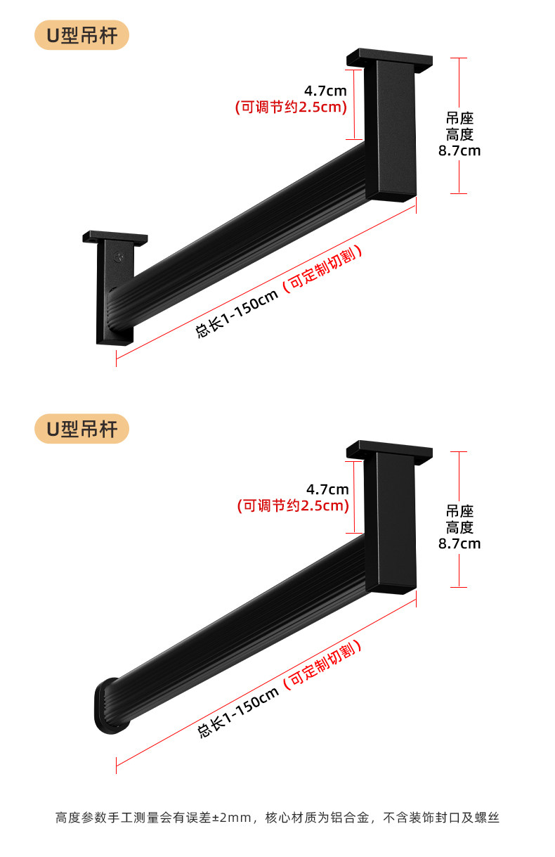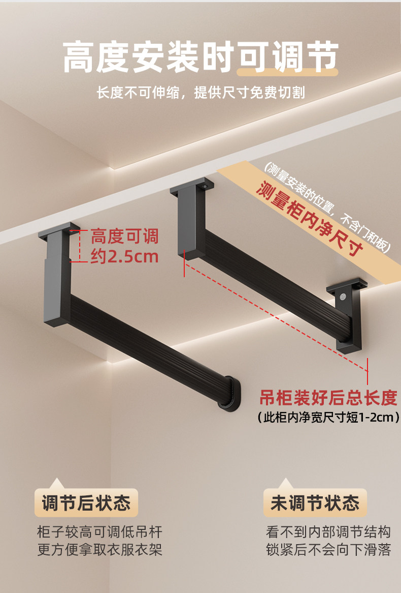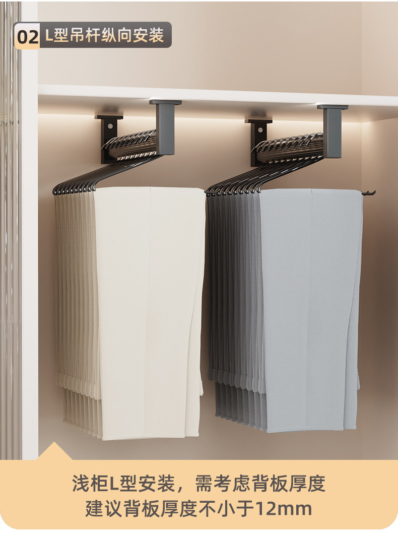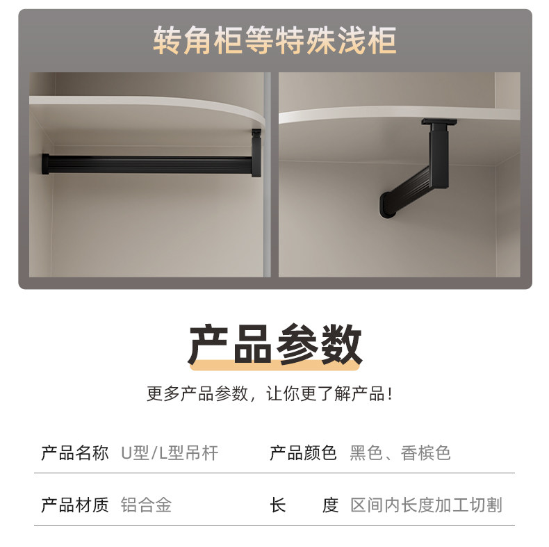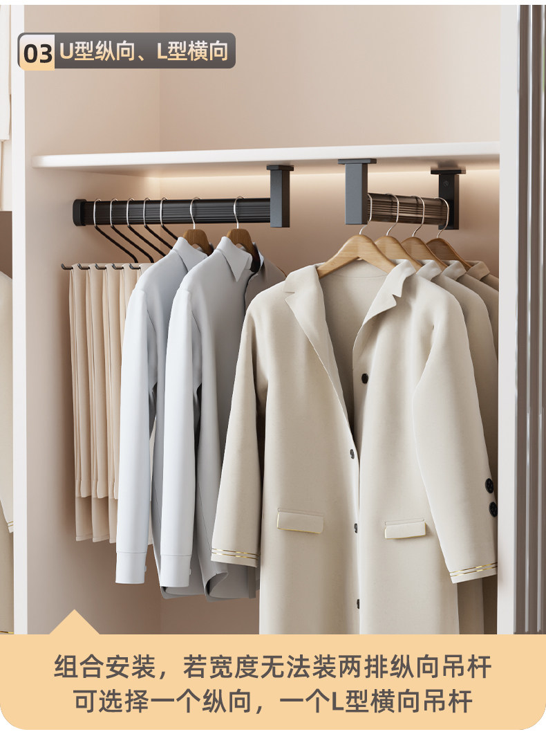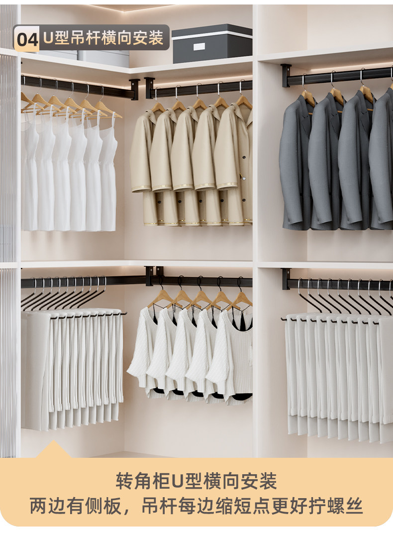 Top-Mounted Shallow Wardrobe Hanging Rod, Thickened U-Shaped Vertical Hanging Rod, Wardrobe Accessories, L-Shaped Crossbar for Hanging