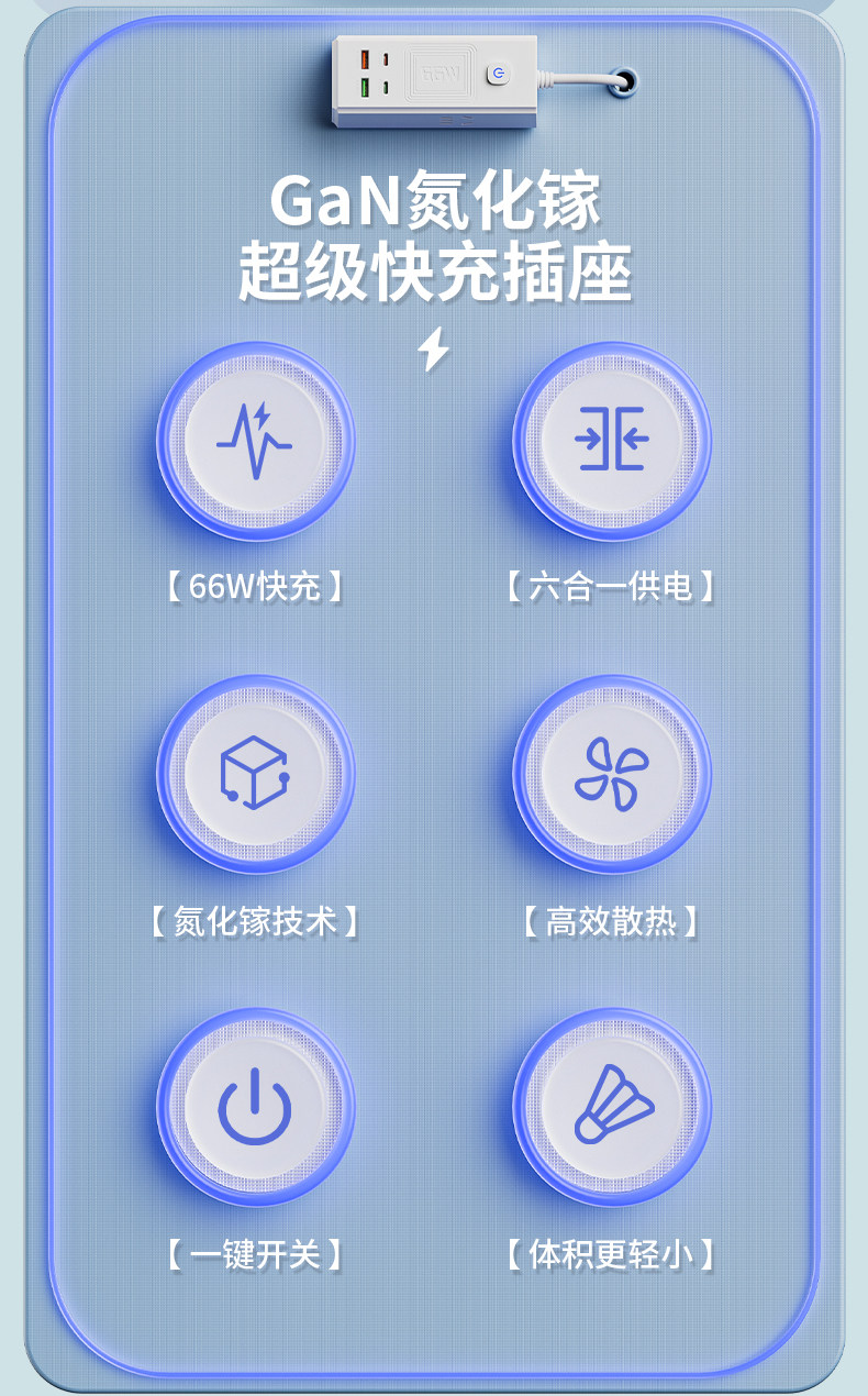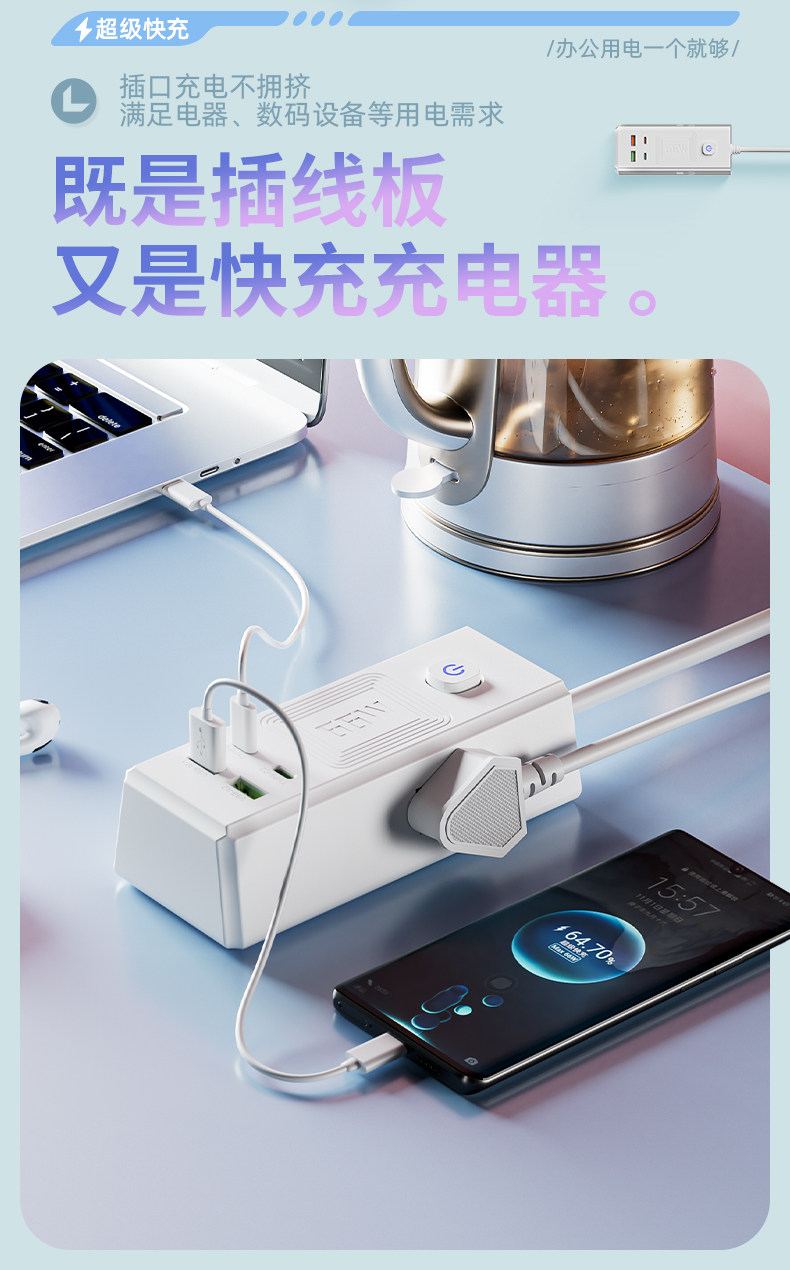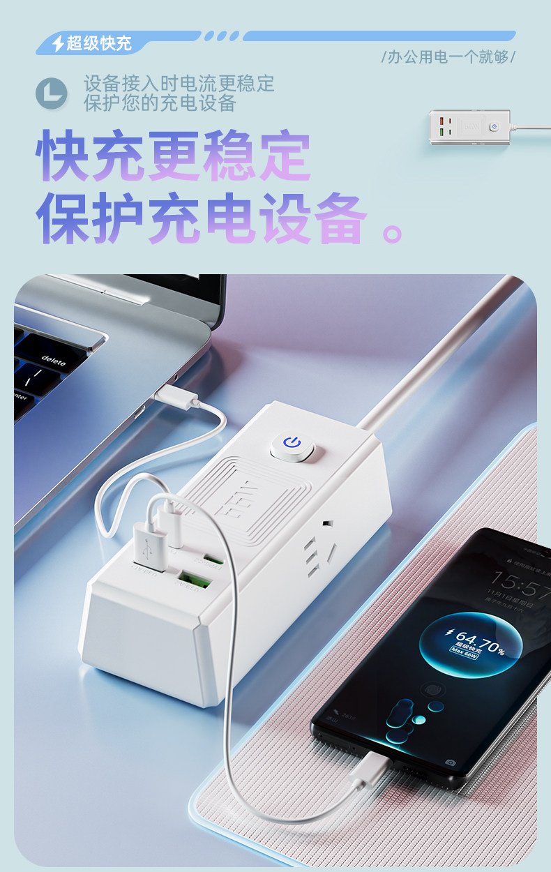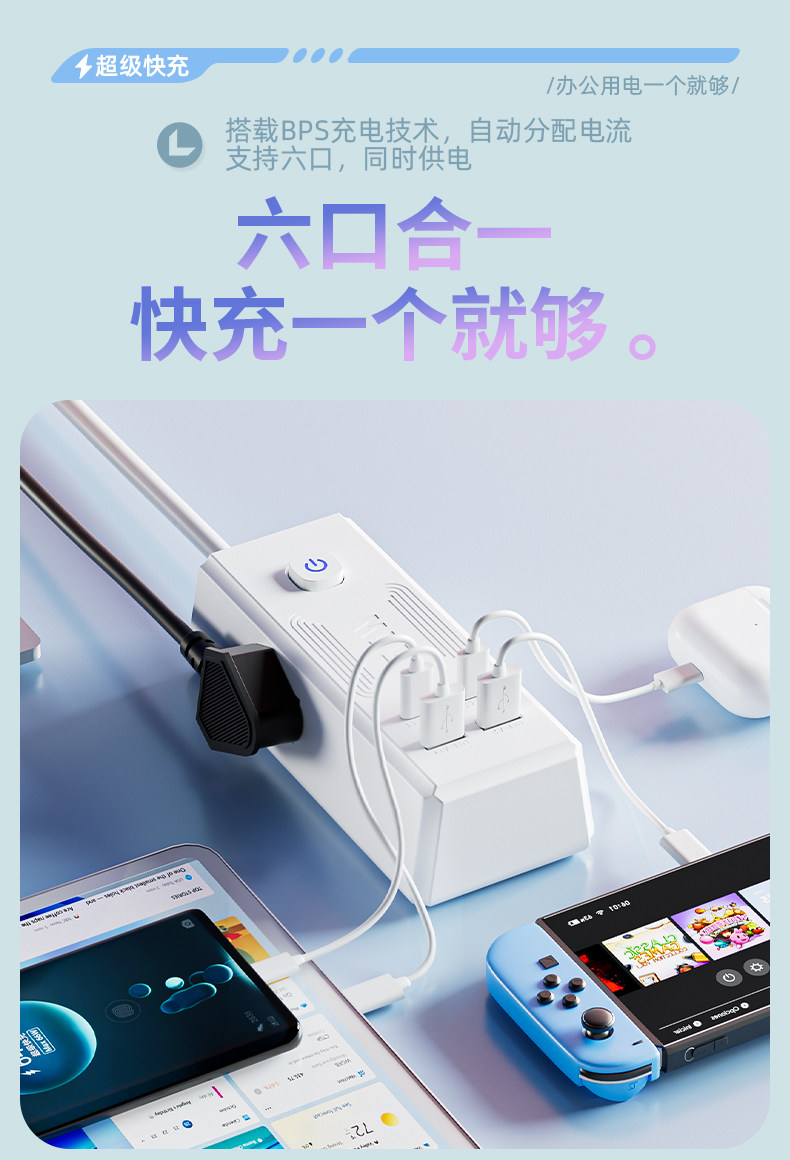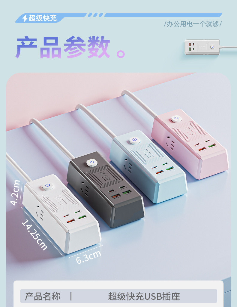 Suitable for Huawei 66W Gallium Nitride Fast Charging Socket, Multi-Functional Multi-Port Power Strip, USB Power Strip for Home, Dormitory, and Students