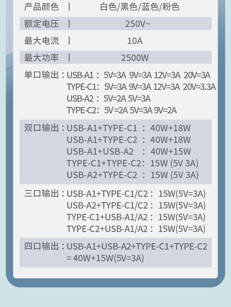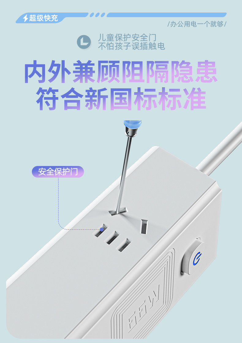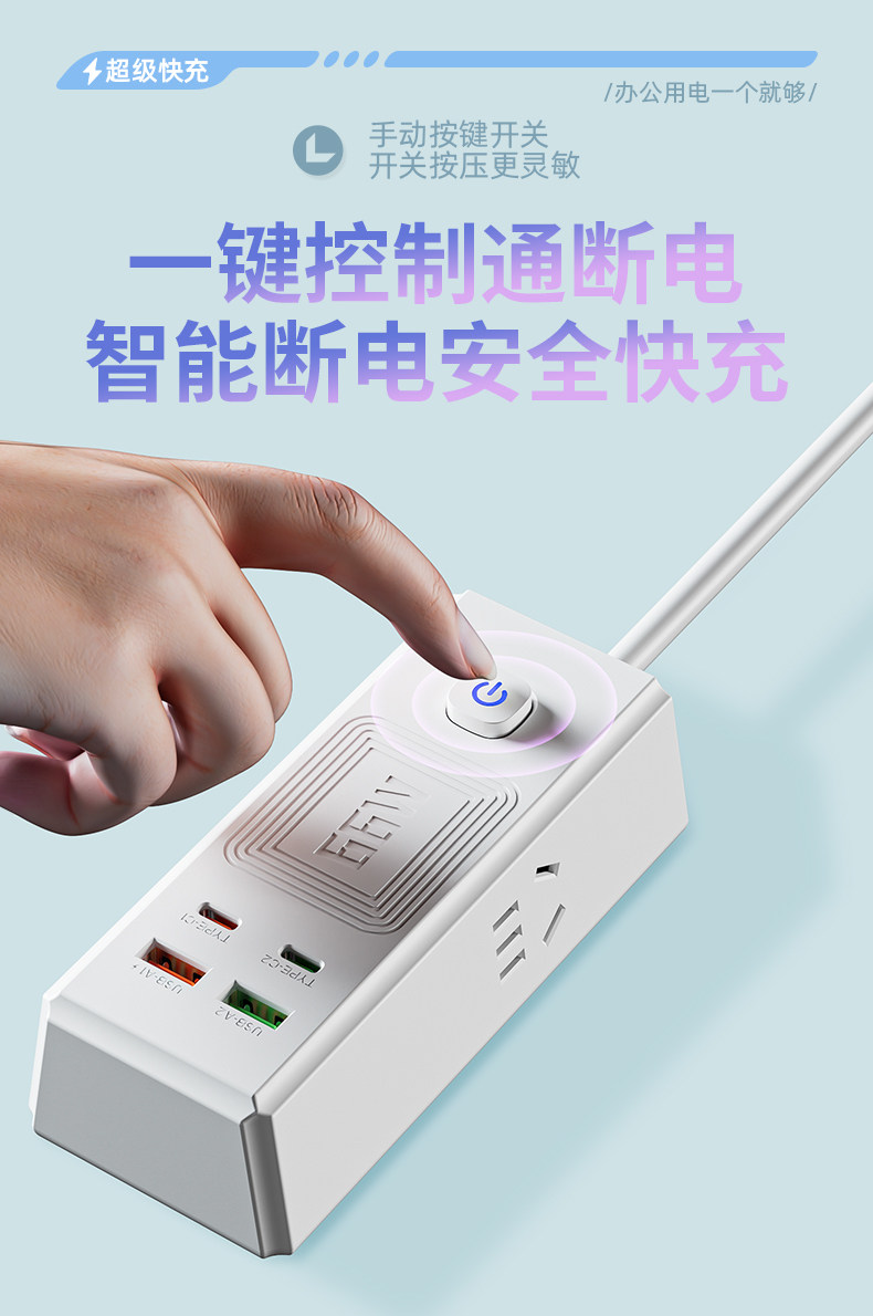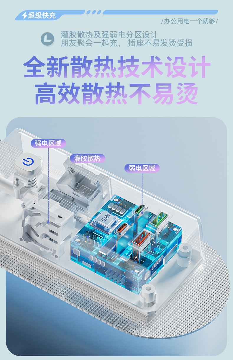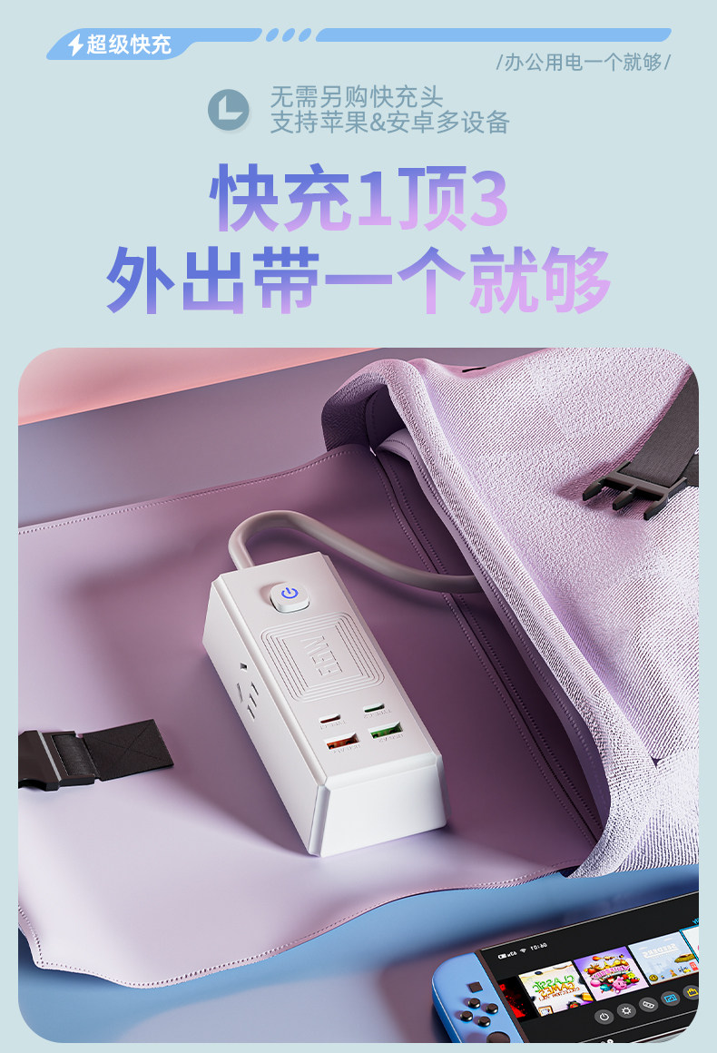 Suitable for Huawei 66W Gallium Nitride Fast Charging Socket, Multi-Functional Multi-Port Power Strip, USB Power Strip for Home, Dormitory, and Students