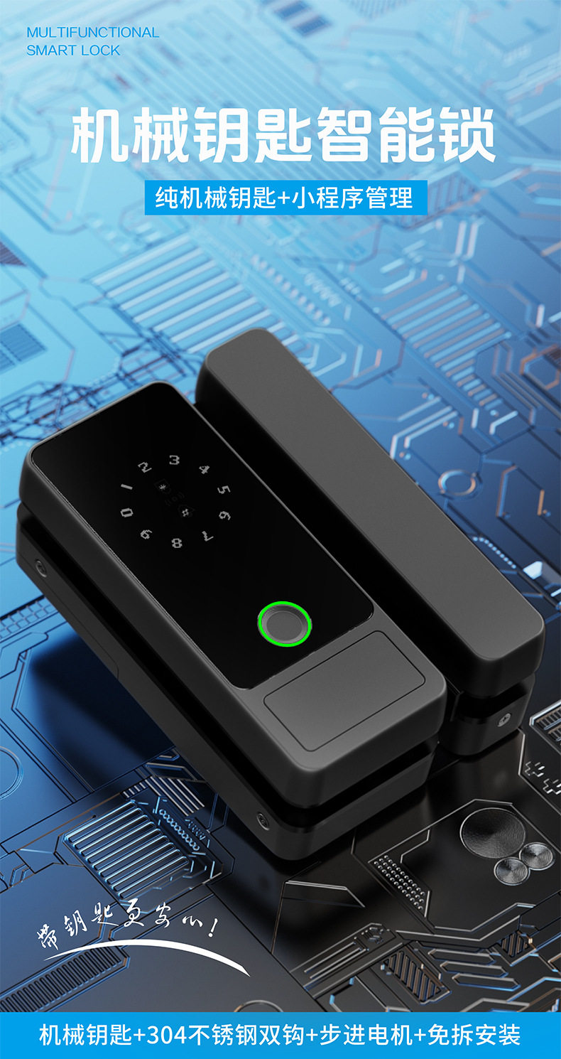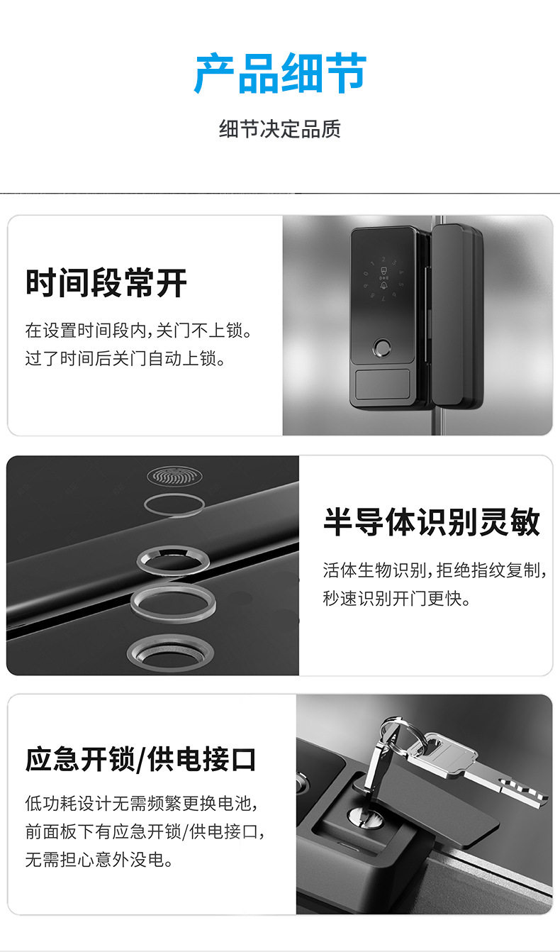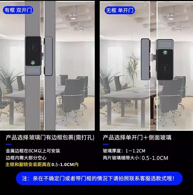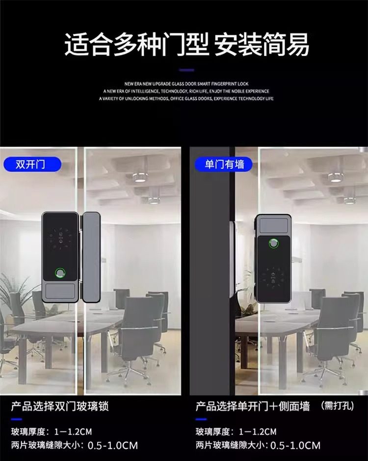 Glass Door Password Lock, Office Fingerprint Lock, Shop Electronic Lock, No Drilling Required, with Frame, Double/Single Door Access Control with Key