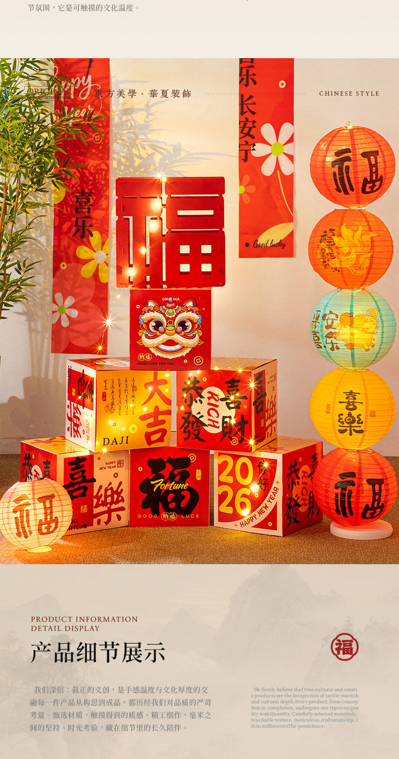 | Color Classification | 【New Year Fortune】Stackable Boxes (3 Pieces) + Lantern Pillars (2 Sets, 8 Pieces Total),【All the Best】Stackable Boxes (Set of 3) + Lantern Pillars (2 Sets, 8 Total),【Good Things Happen】Stackable Boxes (Set of 3) + Lantern Pillars (2 Sets, 8 Total),【Wishing You Prosperity】Stackable Boxes (Set of 3) + Lantern Pillars (2 Sets, 8 Pieces Total),【New Year Fortune】Stackable Boxes (Set of 3) + Lantern Pillars (2 Sets, 8 Total) (Light-Up Version),【All the Best】Stackable Boxes (Set of 3) + Lantern Pillars (2 Sets, 8 Total) (Light-Up Version),【Good Things Happen】 Stackable Boxes (3 Pieces) + Lantern Pillars (2 Sets, 8 Pieces Total) (Light-Up Version),【Wishing You Prosperity】Stackable Boxes (Set of 3) + Lantern Pillars (2 Sets, 8 Total) (Light-Up Version),【New Year Fortune】Stackable Boxes (6 Pieces) + Lantern Pillars (2 Sets, 10 Pieces Total),【All the Best】Stackable Boxes (6 Pieces) + Lantern Pillars (2 Sets, 10 Pieces Total),【Good Things Happen】Stackable Boxes (6 Pieces) + Lantern Pillars (2 Sets, 10 Pieces Total),【Wishing You Prosperity】Stackable Boxes (6 Pieces) + Lantern Pillars (2 Sets, 10 Pieces Total),【New Year Fortune】Stackable Boxes (6 Pieces) + Lantern Pillars (2 Sets, 10 Pieces Total) (Light-Up Version),【All the Best】Stackable Boxes (6 Pieces) + Lantern Pillars (2 Sets, 10 Pieces Total) (Light-Up Version),【Good Things Happen】 Stackable Boxes (6 Pieces) + Lantern Pillars (2 Sets, 10 Pieces Total) (Light-Up Version),【Wishing You Prosperity】Stackable Boxes (6 Pieces) + Lantern Pillars (2 Sets, 10 Pieces Total) (Light-Up Version),【Get Rich Quick This Year】Stackable Storage Box + Hanging Decor,【All the Best】Dui Dui Box + Hanging Cloth,【Good Things Happen】Stackable Box + Hanging Fabric,【Wishing You Prosperity】Stackable Box + Hanging Cloth,【New Year Fortune】Stackable Box Set (6 Pieces) + Hanging Cloth + 10 Wire Lanterns,【All the Best】 Stackable Boxes (Set of 6) + Backdrop Cloth + 10 Wire Lanterns,【Good Things Happen】 Stackable Boxes (Set of 6) + Backdrop Cloth + String Lights with 10 Lanterns,【Wishing You Prosperity】Stackable Boxes (Set of 6) + Hanging Fabric + 10 Brushed Lanterns |