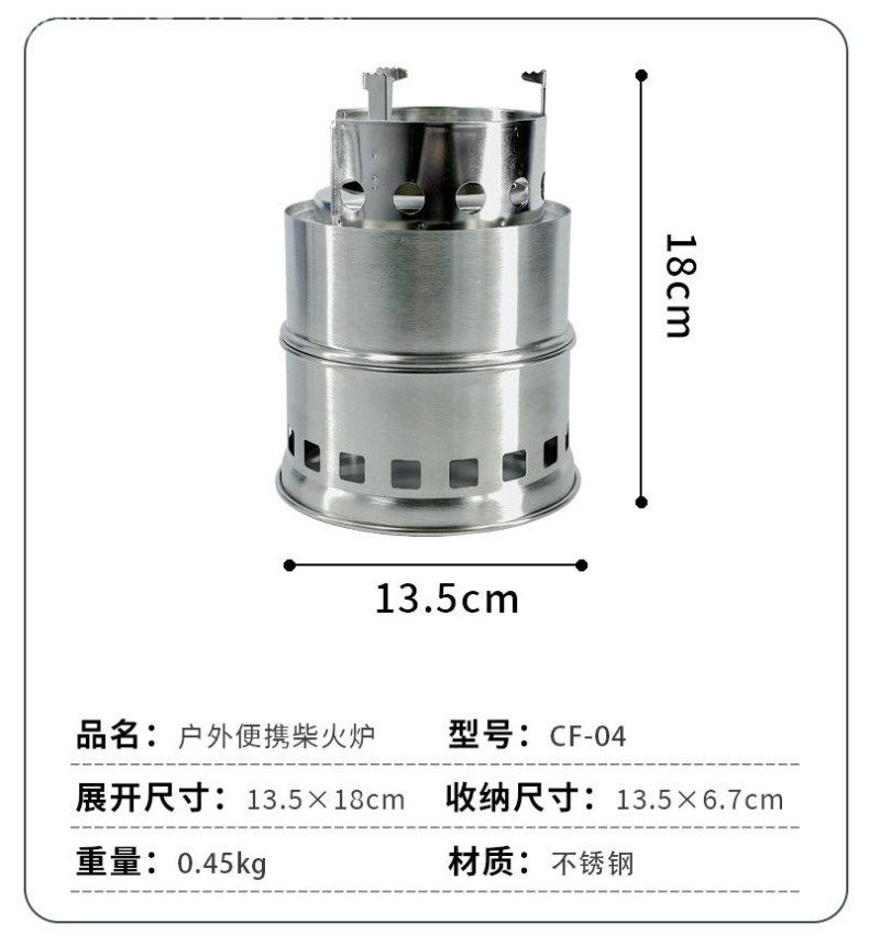 Portable Folding Water Boiling Stove, Stainless Steel Small Camping Cookware, Wood-Burning Household Smokeless Vaporizer Stove, Firewood Stove