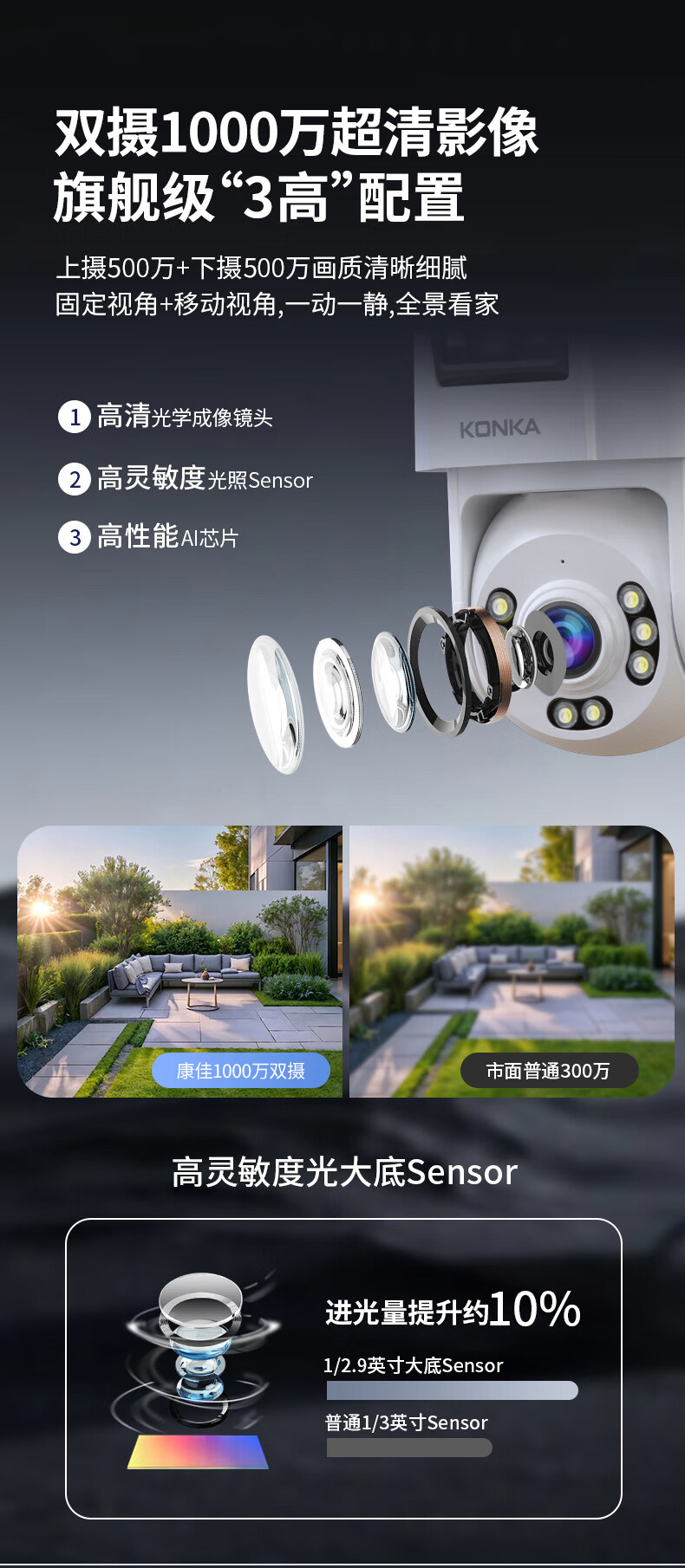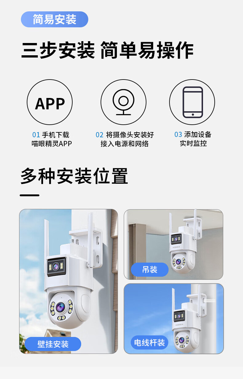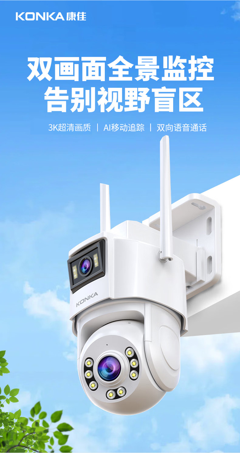 Konka Data-Free Camera Home Monitor 360-Degree No Blind Spots Outdoor Mobile Phone Remote No Internet Required Video
