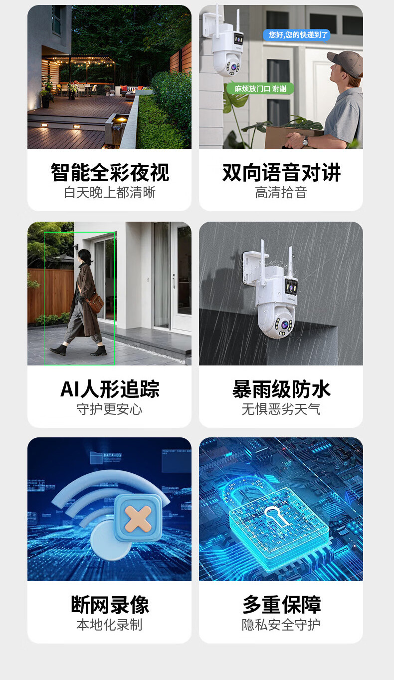 | Color Classification | 【Get 99 Years of Data Included】【Dual-Lens Ultra Hd 4g Model】Simultaneous Dual-Screen Viewing + Audible & Visual Alerts + Two-Way Talk + Tracking,【Get 99 Years of Data Included】【Dual-Lens Ultra Hd 4g Model + Power Outage Monitoring】Simultaneous Dual-Screen Viewing + Audible and Visual Alerts + Two-Way Talk + Tracking,【Get 99 Years of Data Included】【Triple-Lens Ultra Hd 4g Model】Watch Three Screens Simultaneously + Audible and Visual Alerts + Two-Way Talk + Tracking,【Get 99 Years of Data Included】【Triple-Lens Ultra Hd 4g Model + Power Outage Monitoring】Simultaneous Three-View Monitoring + Audible and Visual Alerts + Two-Way Talk + Tracking,【Dual-Lens Ultra Hd Wifi】Simultaneous Dual-Screen Viewing + Audible & Visual Alerts + Proactive Defense + Two-Way Talk + Tracking + Panoramic Monitoring,【Triple-Lens Ultra Hd Wifi】Simultaneous Three-View Monitoring + Audible & Visual Alerts + Proactive Defense + Two-Way Talk + Tracking + Panoramic Surveillance,[Four-Lens Ultra-Clear Wifi Model + 10X Zoom] Watch Three Pictures at the Same Time + Sound and Light Alarm + Intercom + Tracking,【Quad-Lens Ultra Hd Wifi Camera + 10X Zoom + Power Outage Monitoring】Triple Screen View + Audible & Visual Alerts + Two-Way Talk + Tracking |