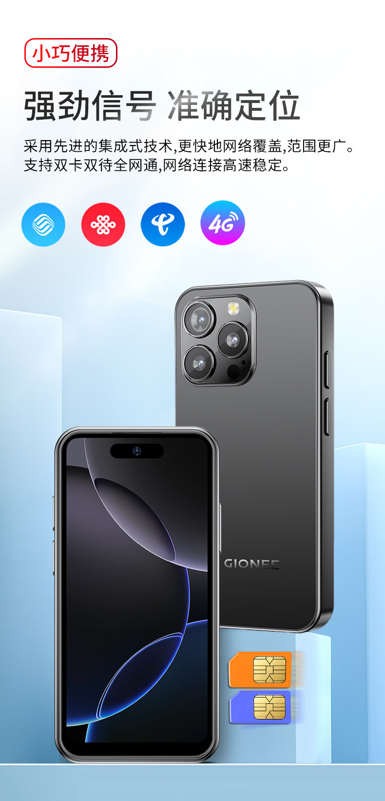 Gionee Mini Smart Phone New Model Mini Nx16 Dual Sim Full Network Support 5g Card 4inch Small Screen Phone Video Call Student Card Phone Lightweight Portable White
