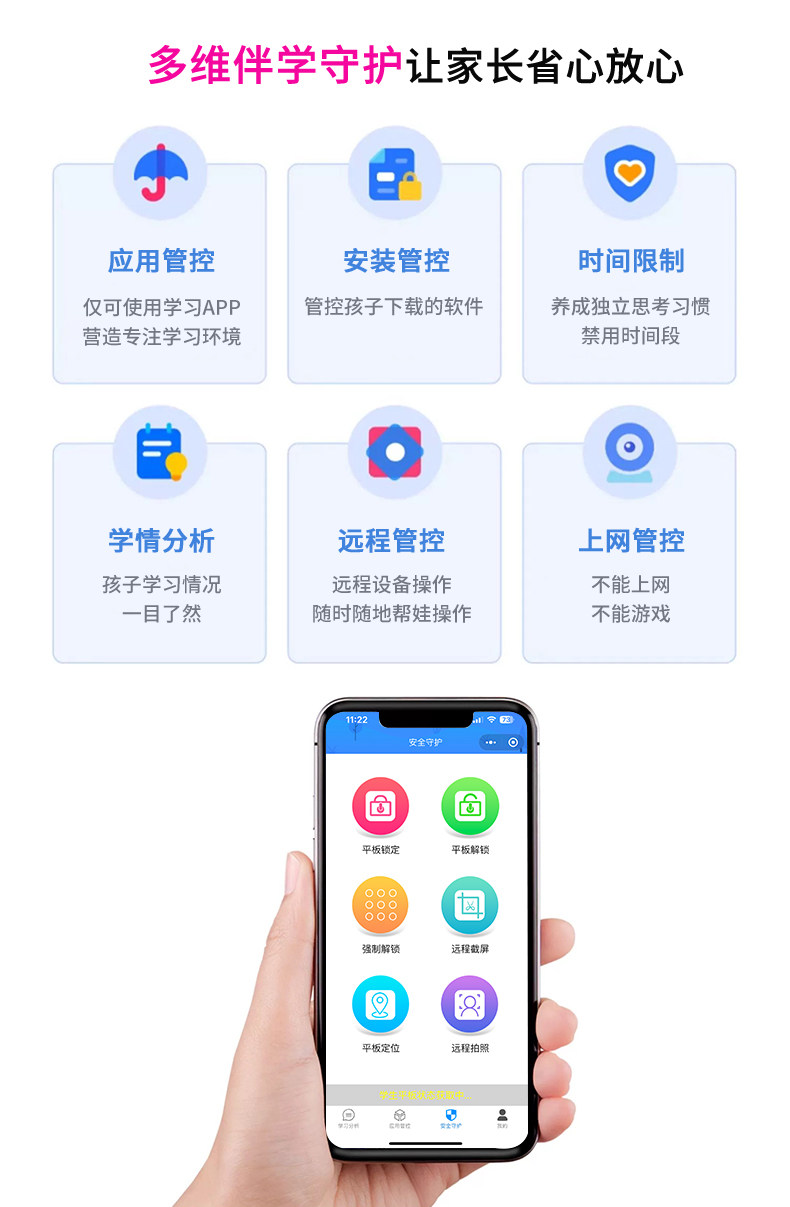 | Parental Control | Internet Control,Content Filtering,Parental Mobile App,Application Download Restrictions,Take Regular Breaks,Remote Screenshot,Parents Accompany Their Children to Study,Time Control,Usage Statistics,Application Management,Account Switching,Personalized Reminder,Daily Learning Report |