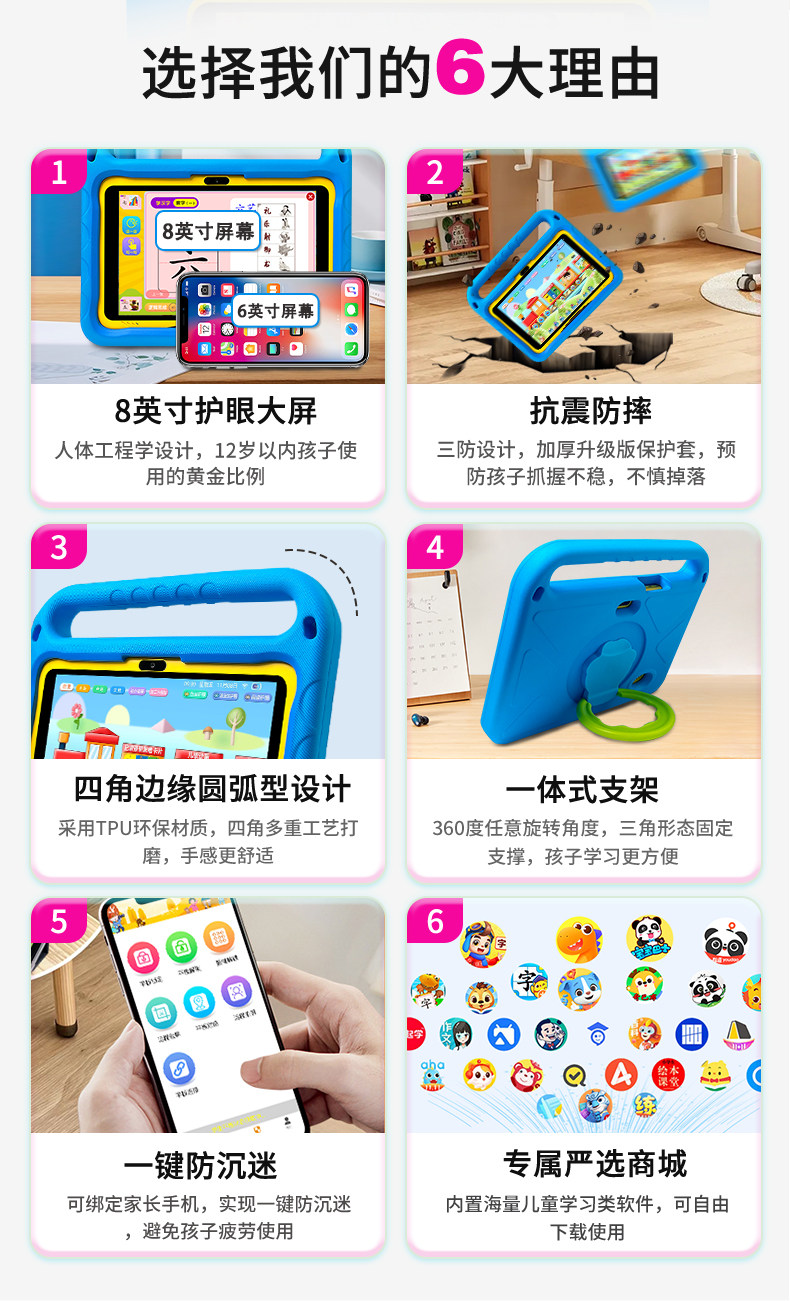 New Ultra-Durable Version of Aixuebao S1 Children's Tablet Learning Device for Ages 3-6-12, Early Education Machine for All Ages, Eye-Protecting Screen, Preschool to Elementary School Transition, Synchronized Student Tablet Learning Device