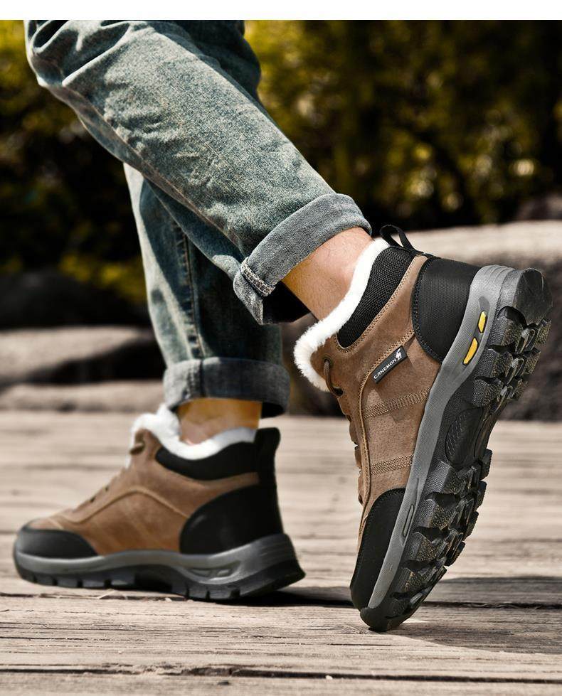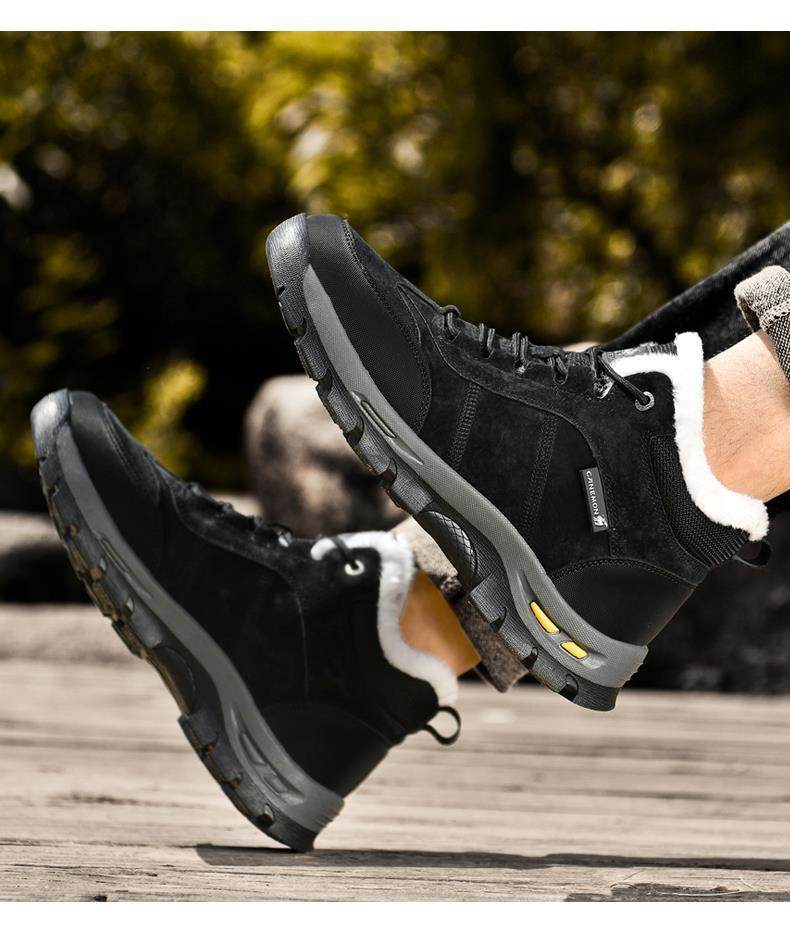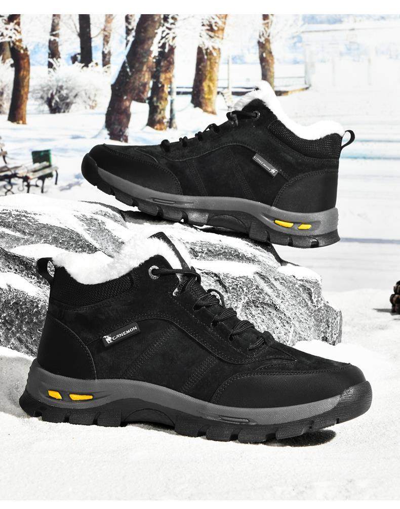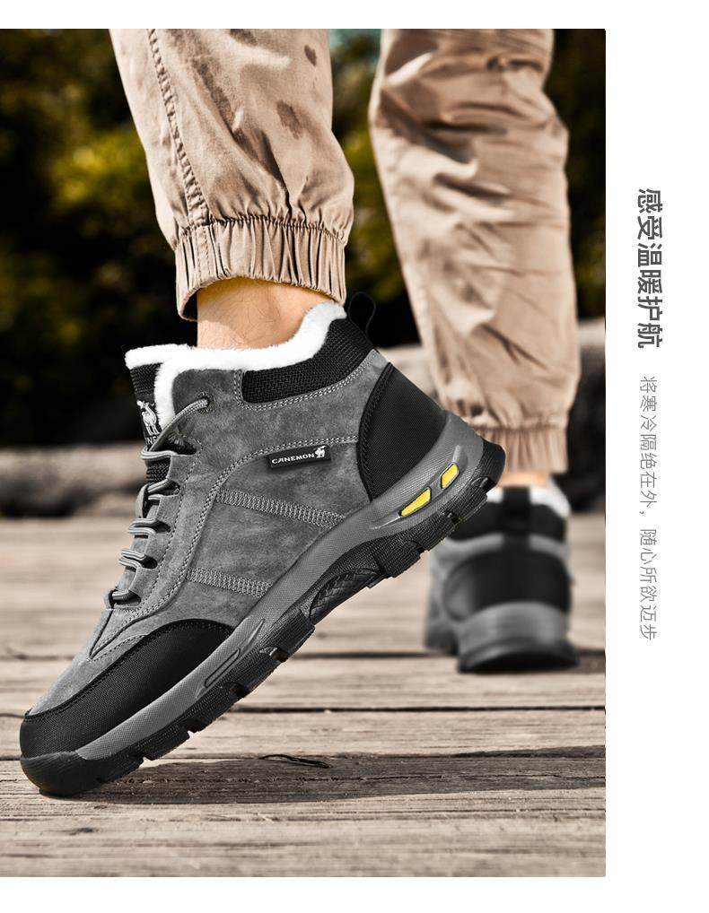 Paul Camel Winter Men's Shoes with Fleece Lining, Thickened for Cold Protection, Warm Work Shoes, Outdoor Non-Slip High-Top Cotton Shoes, Snow Boots