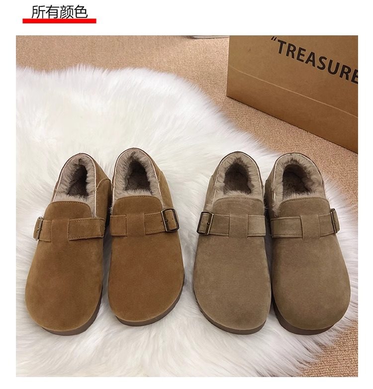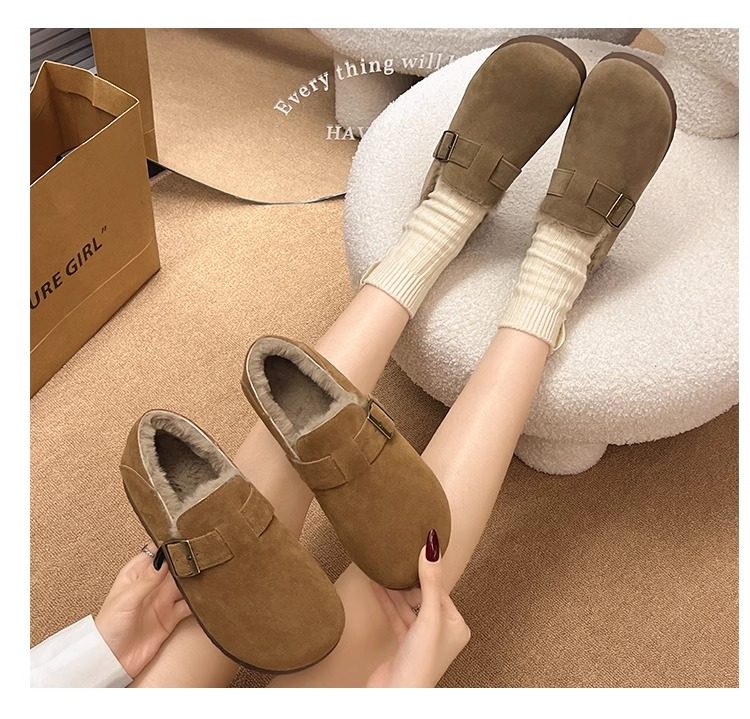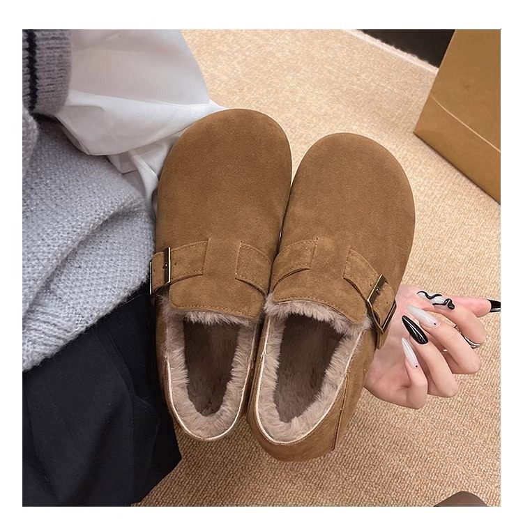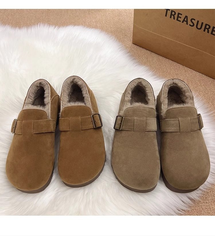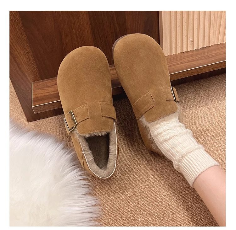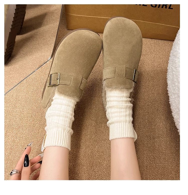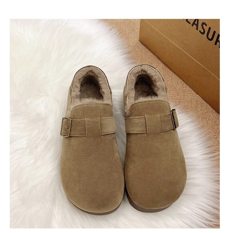 Fleece-Lined Full-Wrap Retro Birkenstock Shoes for Women, Winter 2025 New Slip-On Loafers, Furry Cotton Shoes, Warm Snow Boots