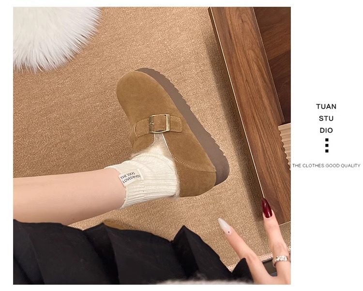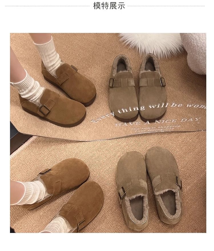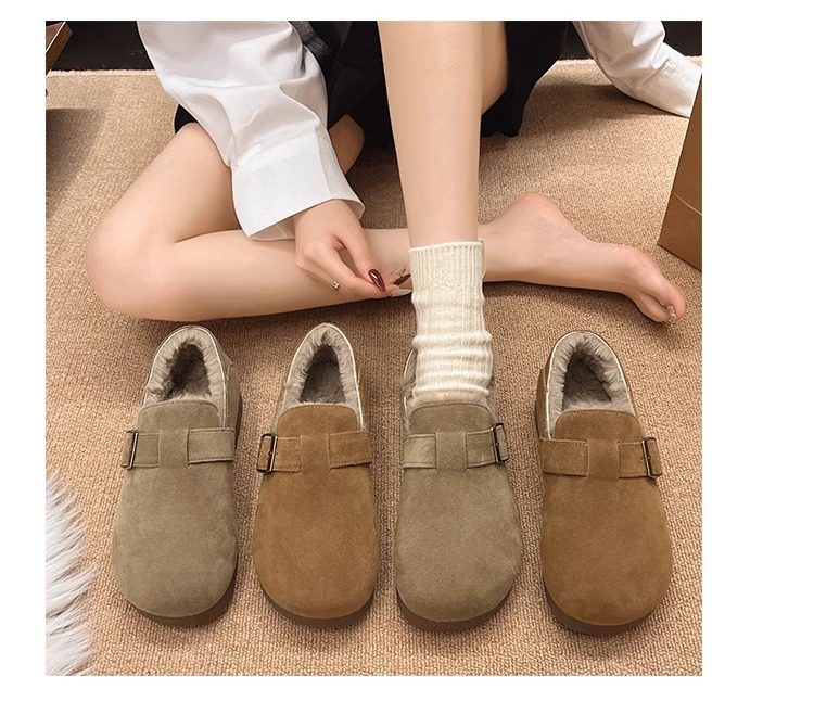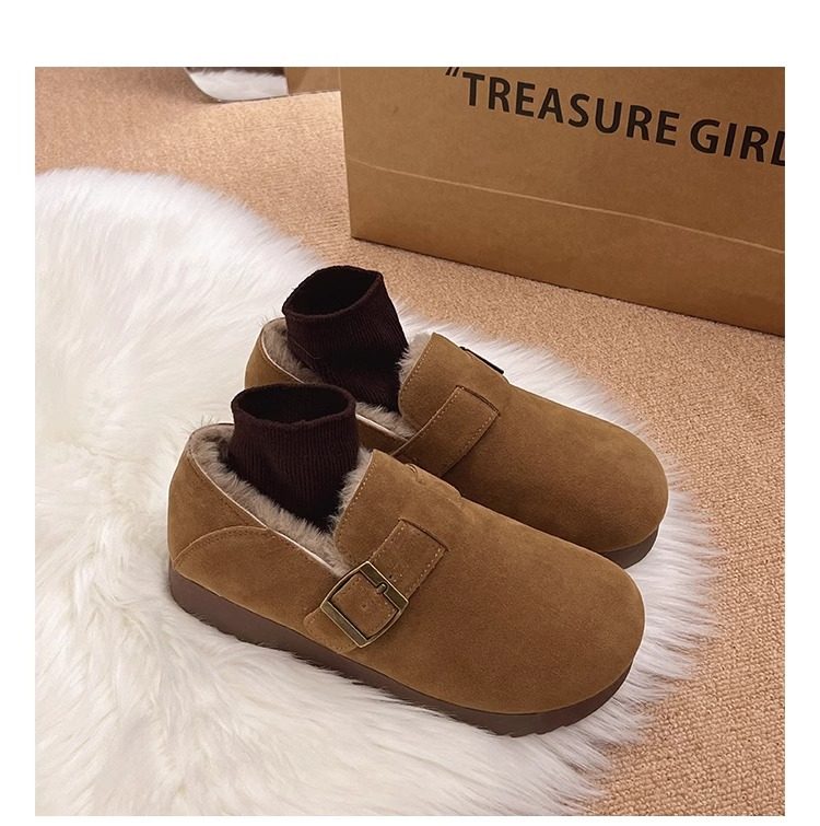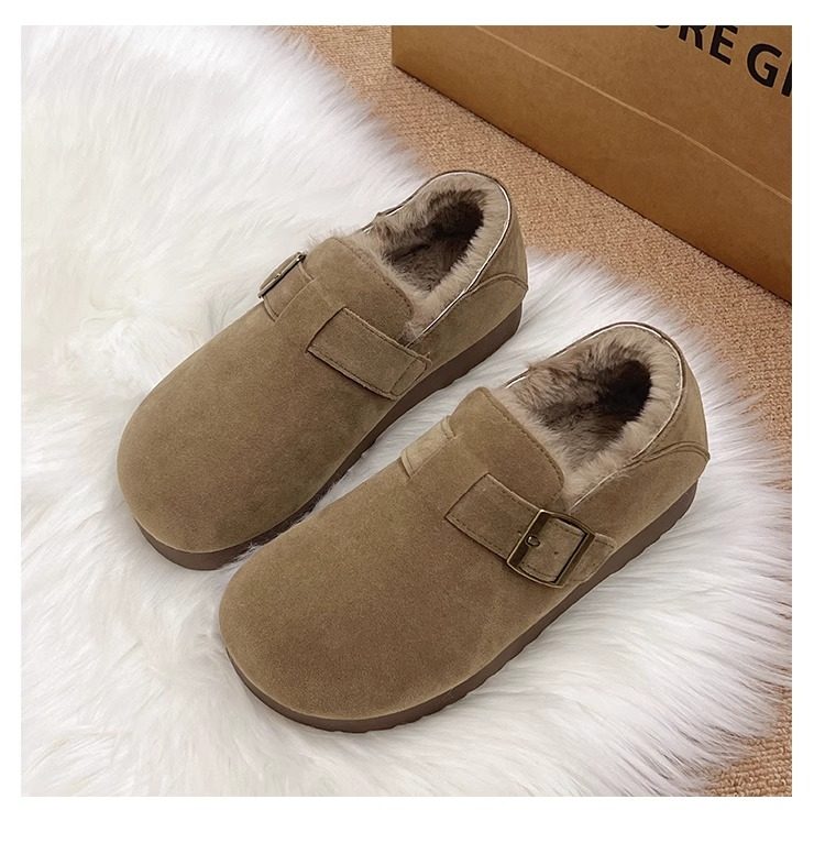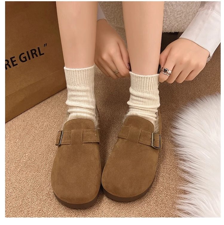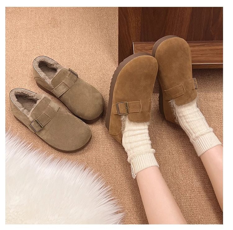 Fleece-Lined Full-Wrap Retro Birkenstock Shoes for Women, Winter 2025 New Slip-On Loafers, Furry Cotton Shoes, Warm Snow Boots