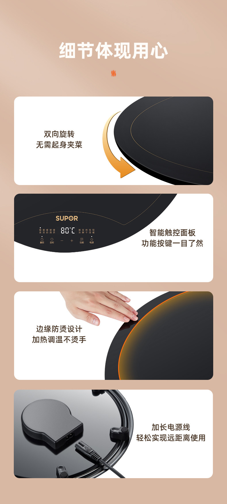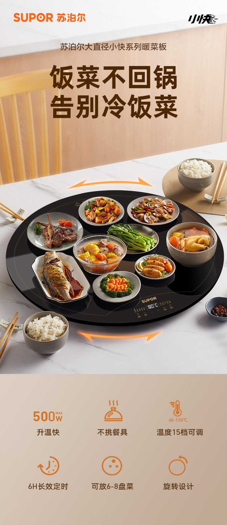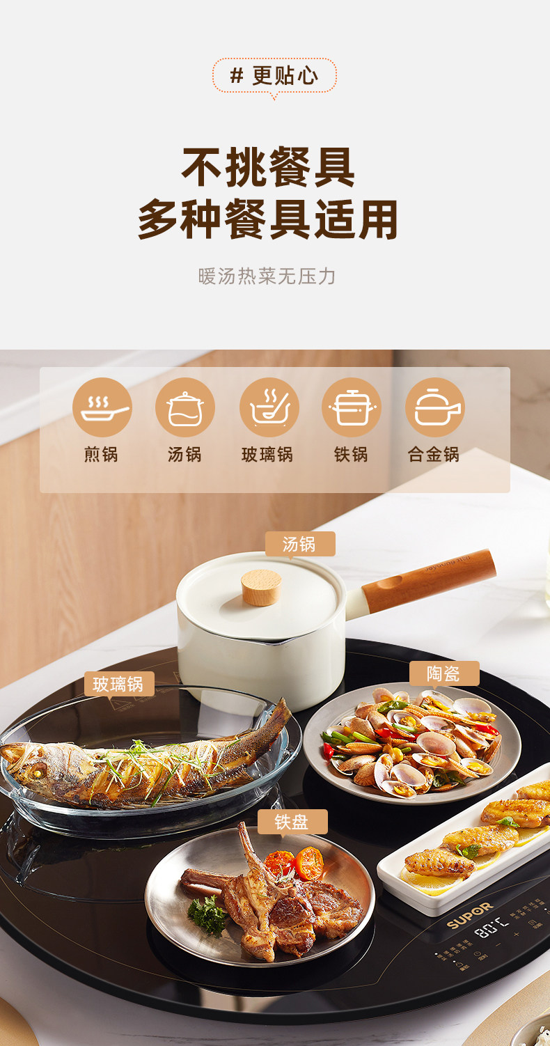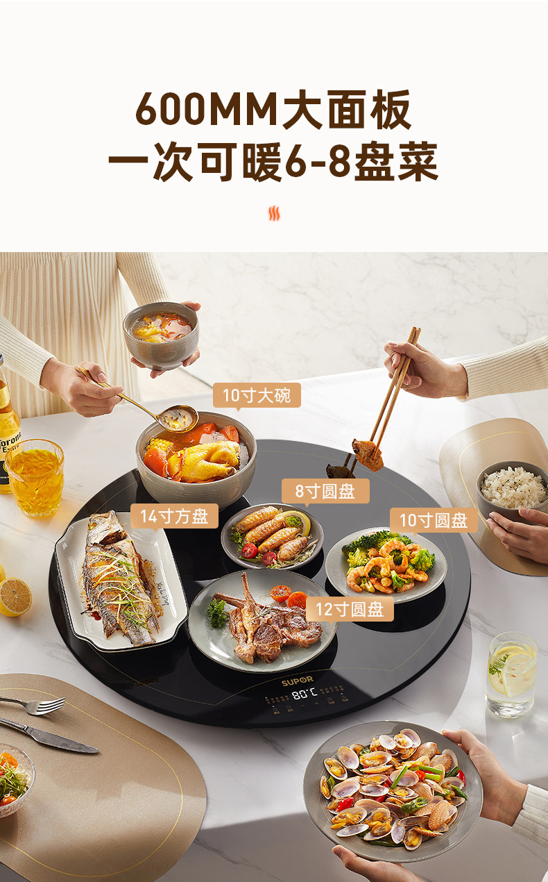 Supor Warming Plate, Hot Dish Plate, Heated Dining Table Turntable, Food Warming Plate, Household 2025 New Model, Hot Dish Magic Tool