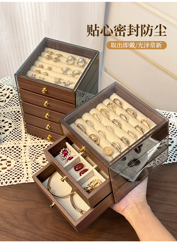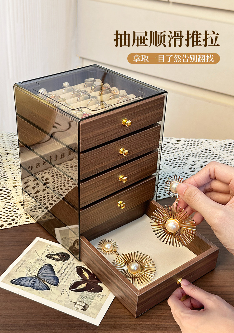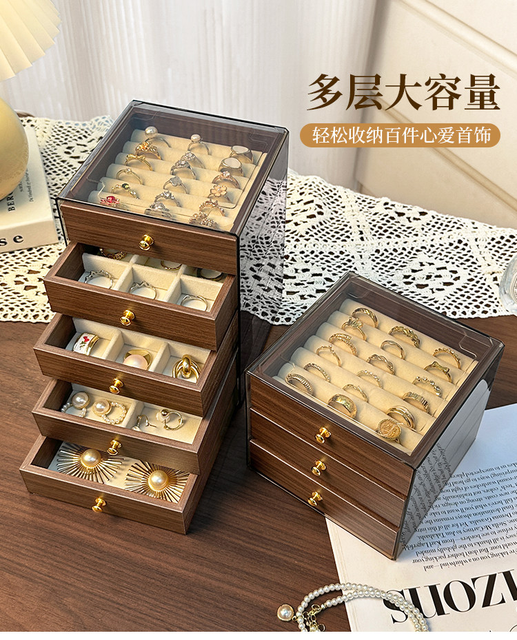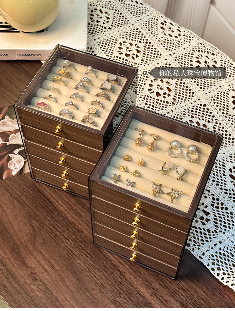 High-End and Exquisite Jewelry Storage Box for Rings, Earrings, and Necklaces, Anti-Oxidation Drawer-Style Small Jewelry Box
