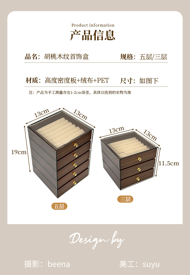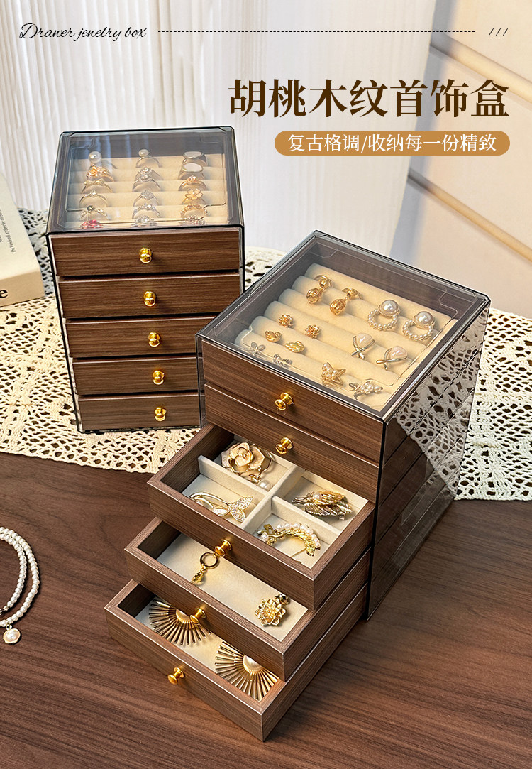 | Color Classification | [Three Layers-Regular Style] Walnut Grain Jewelry Box,[Three Layers-Multi-Grid Style] Walnut Grain Jewelry Box,[Five Layers-Regular Style] Walnut Grain Jewelry Box,[Five Layers-Multi-Grid Style] Walnut Grain Jewelry Box |