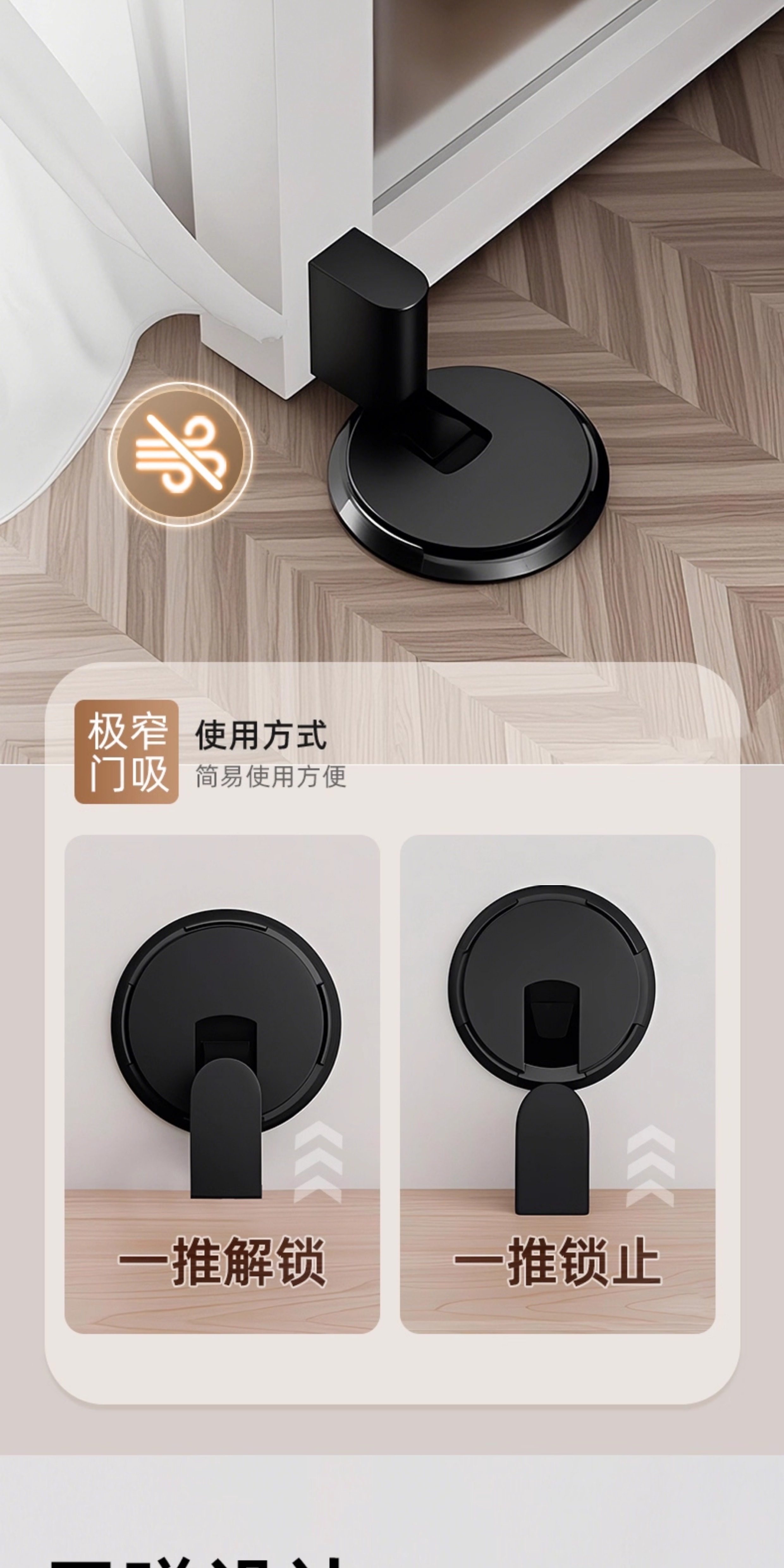 Mary Door Stopper, No-Drill, Ultra-Narrow, Windproof, Floor-Mounted, Glass Door Anti-Collision Door Stopper, New Invisible Bathroom Door Stopper
