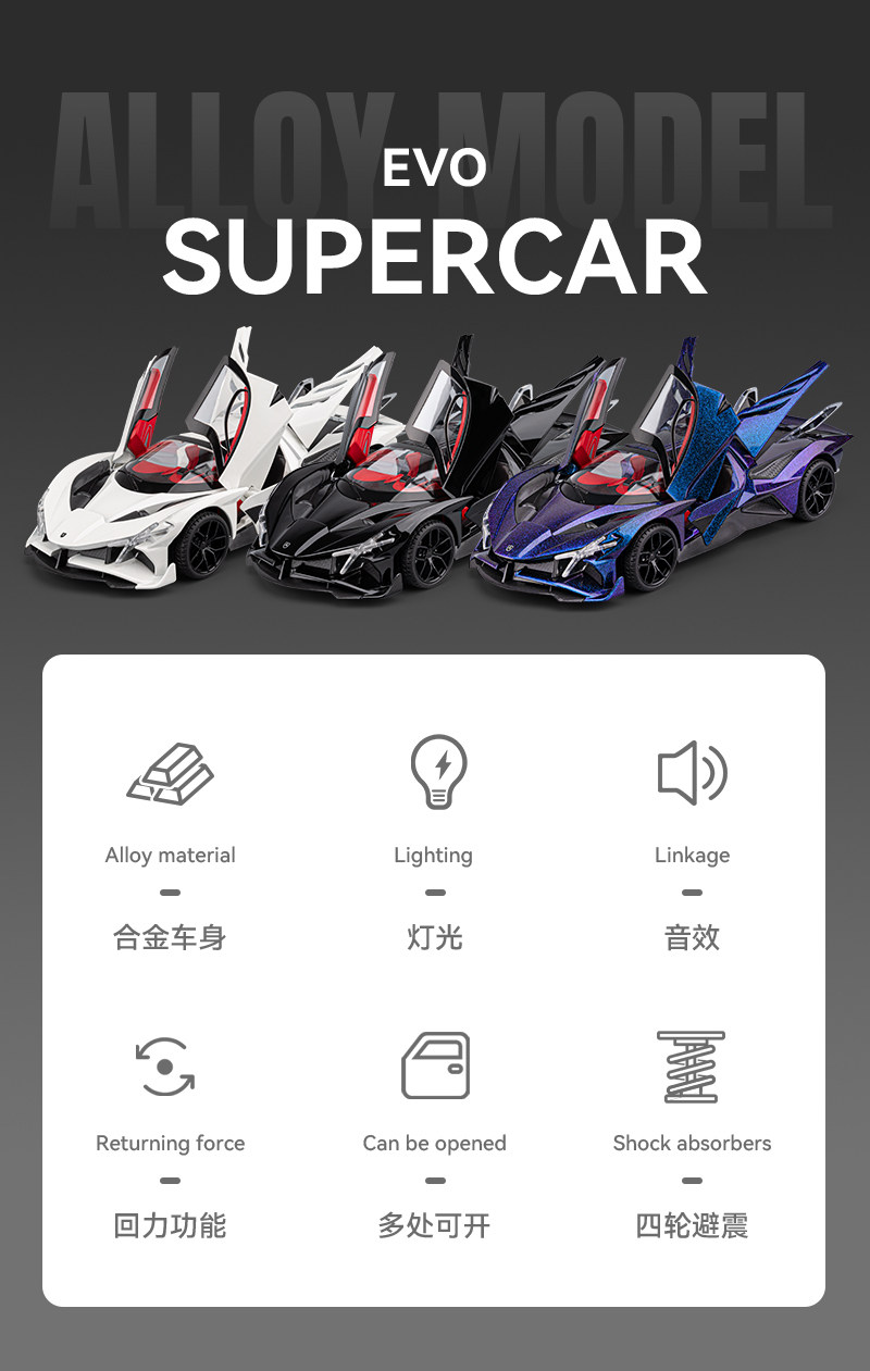 1:18 Apollo Sun God Evo Alloy Car Model Imitation Real Car Model Supercar Toy Car Boy Gift