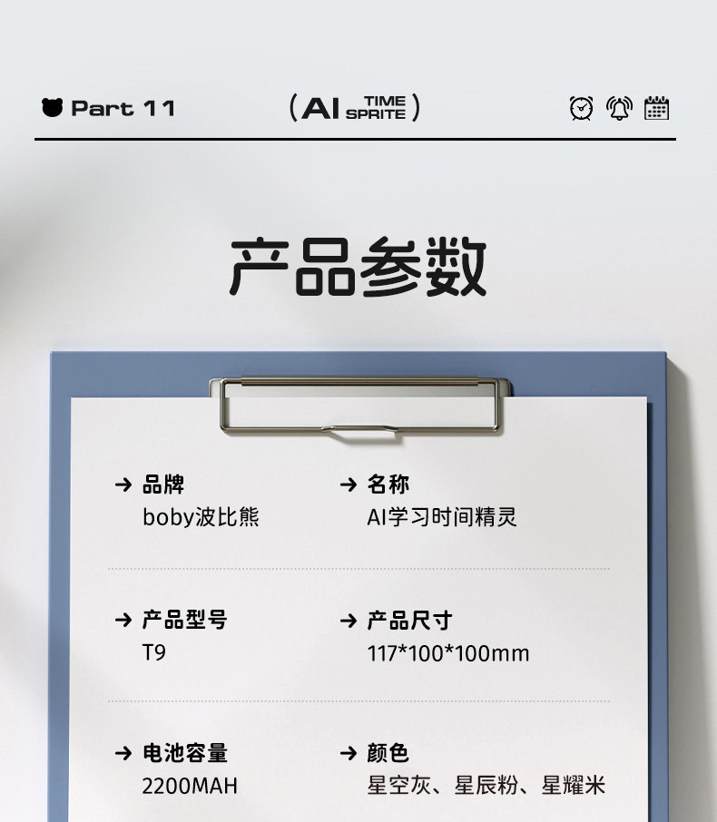 Poppy Bear Intelligent Learning Butler Ai Voice Dialogue 2025 New Model Alarm Clock T9 Learning Robot Multifunctional Wake-Up Device for Primary and Secondary School Students Children's Learning Self-Discipline Time Manager