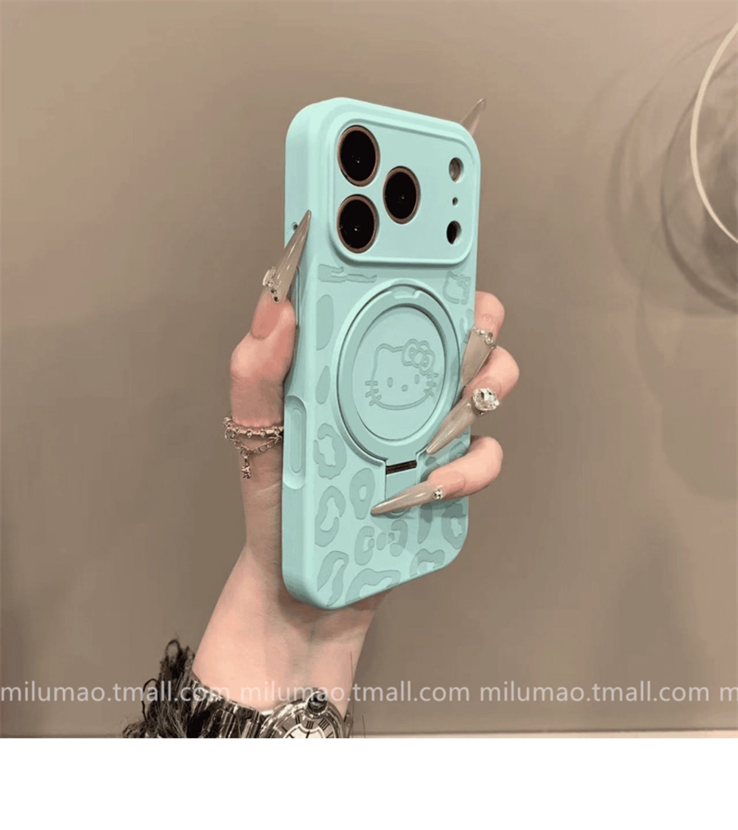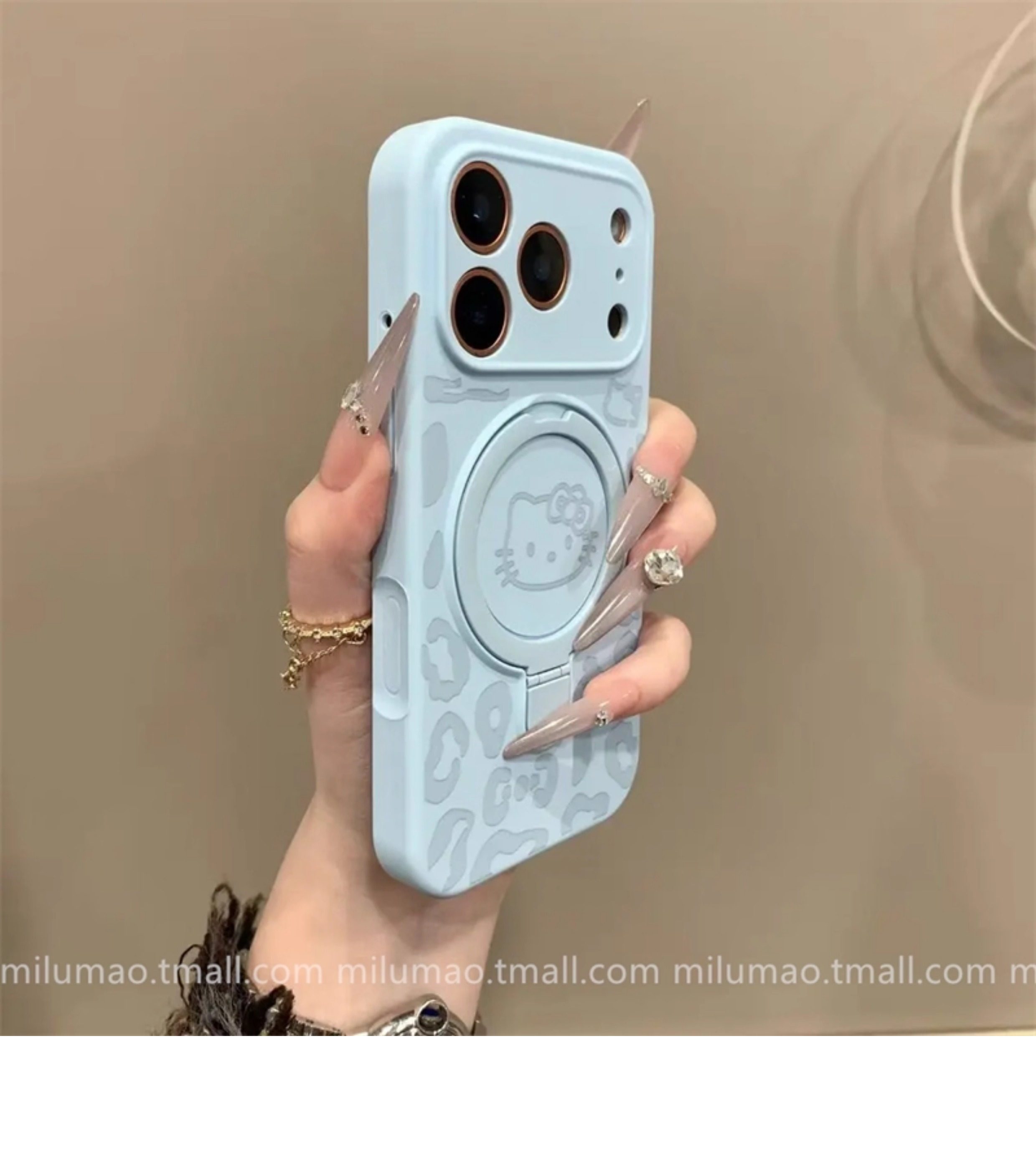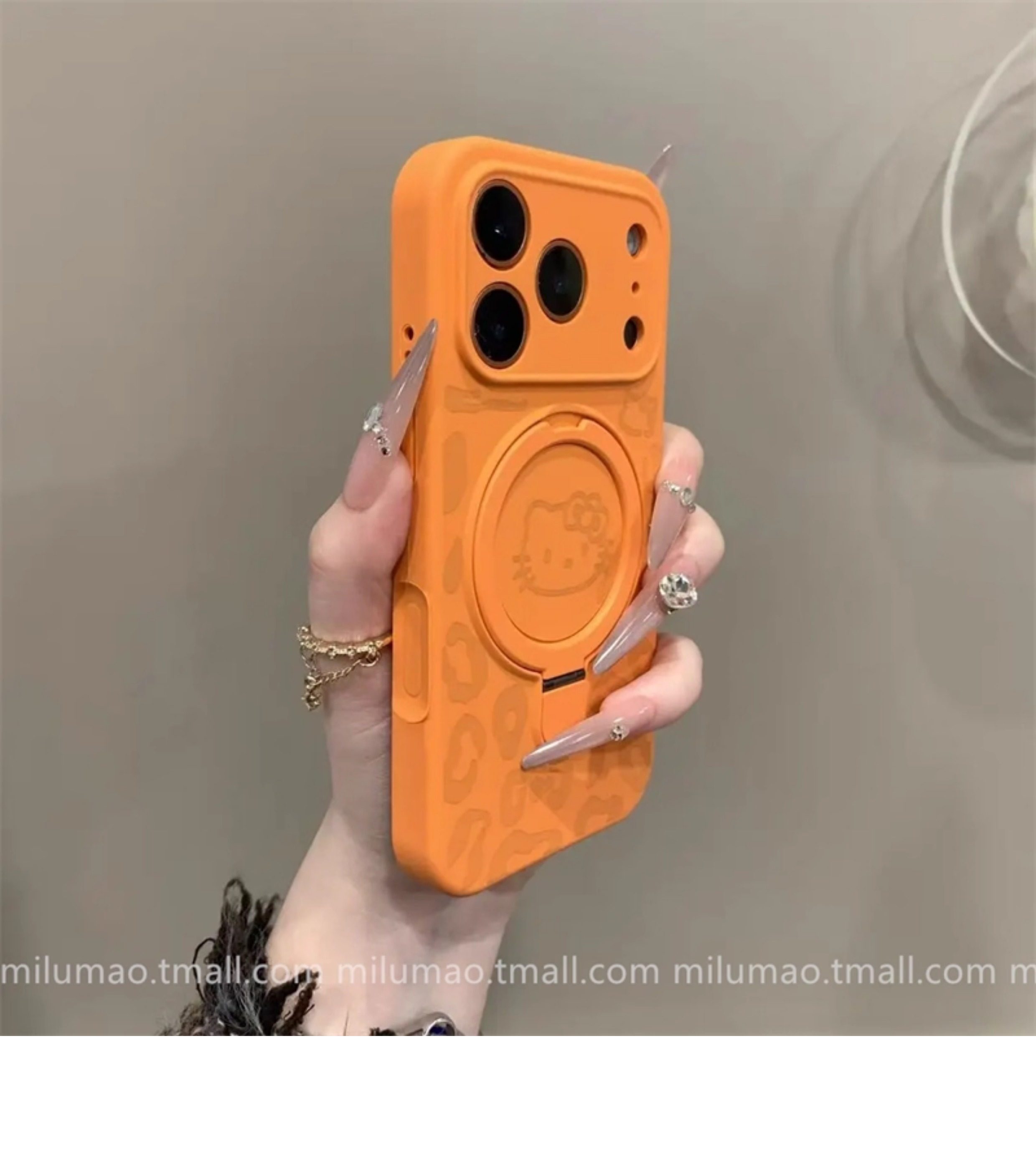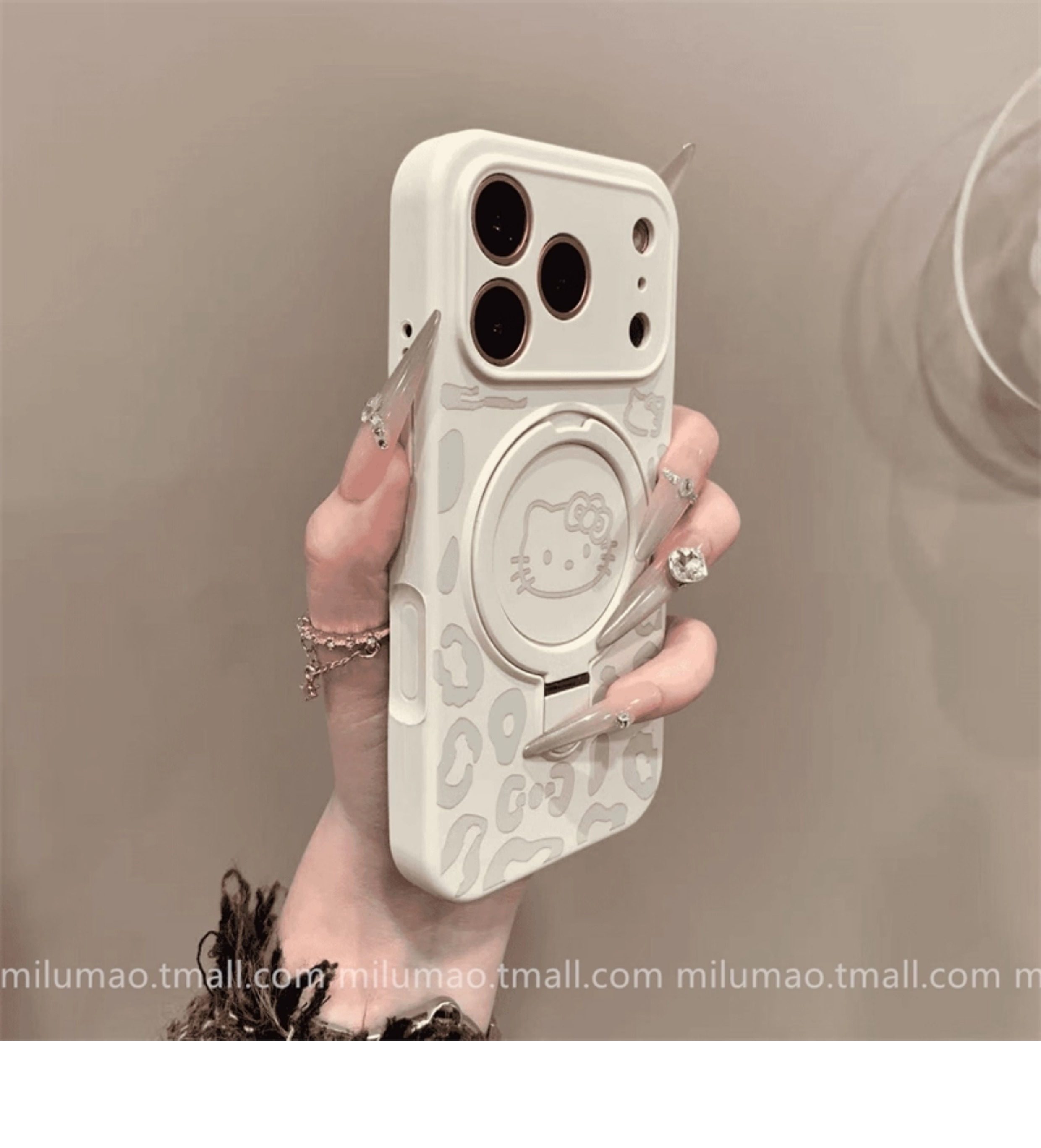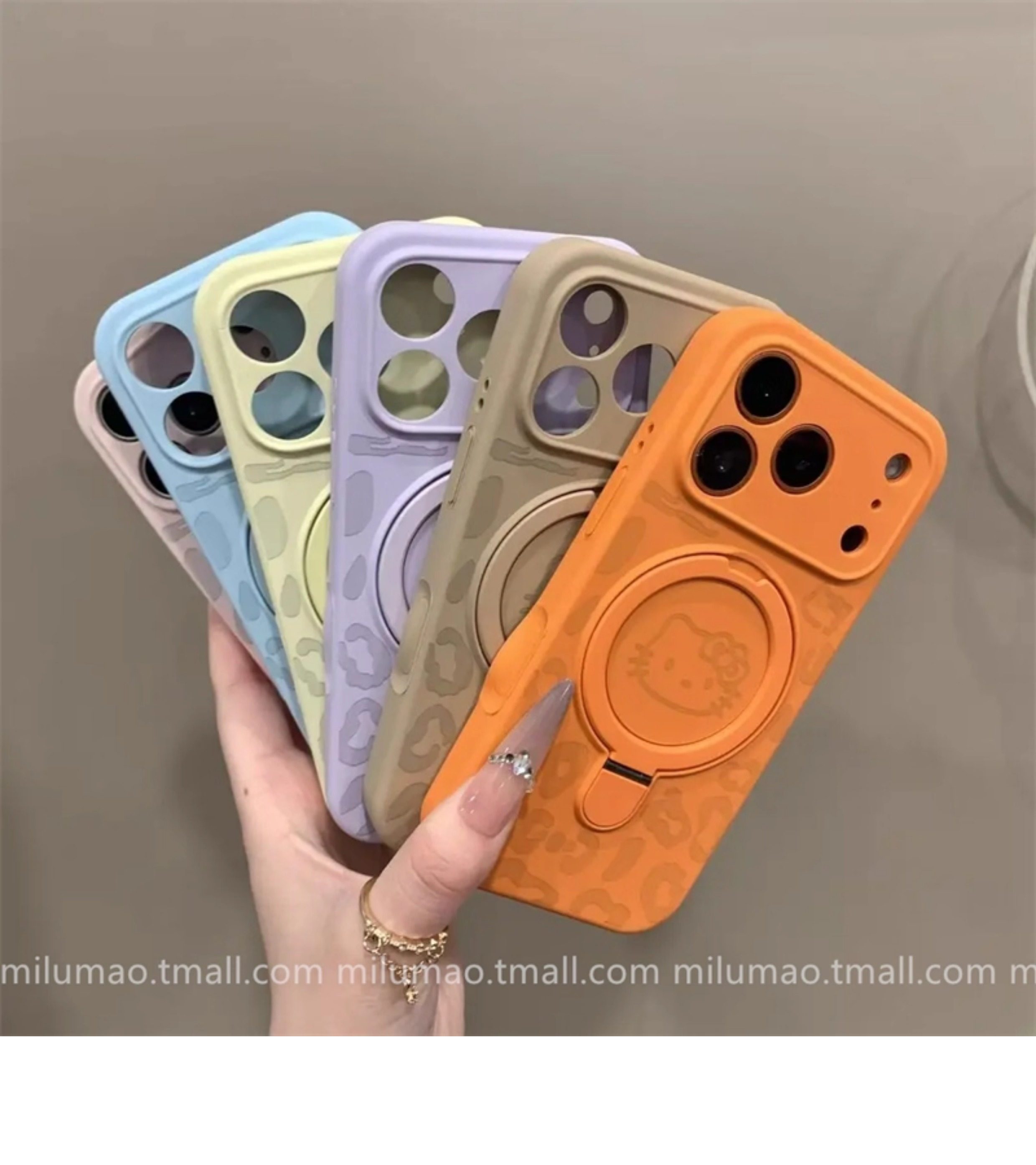 Autumn and Winter Leopard Print Kt Cat Magnetic Stand Suitable for Apple 17 Pro Max Phone Case iPhone 16 Pro Max New Model 13 Liquid Silicone 12 Trendy Girl 11 Internet Celebrity 14 Plus Anti-Drop 15 Pro Max