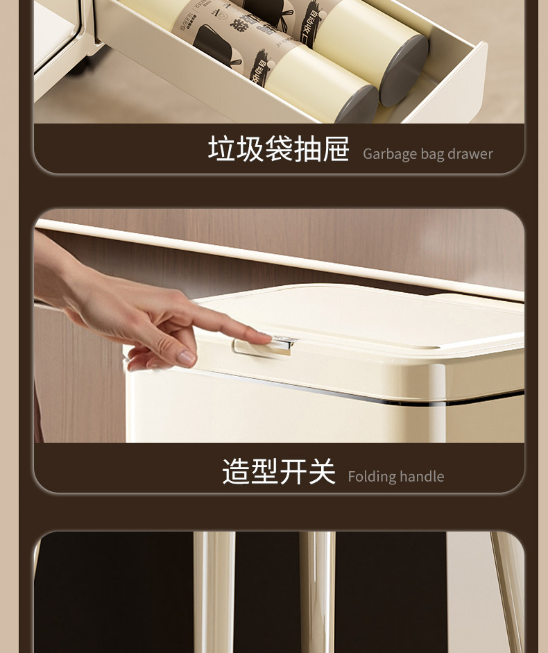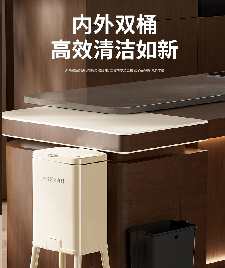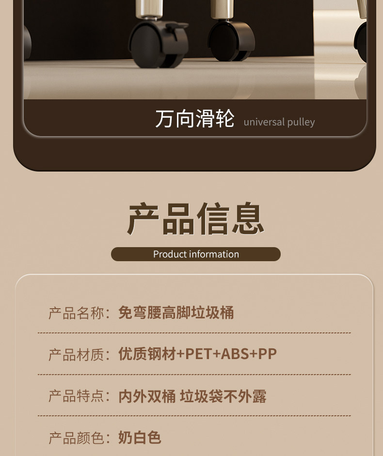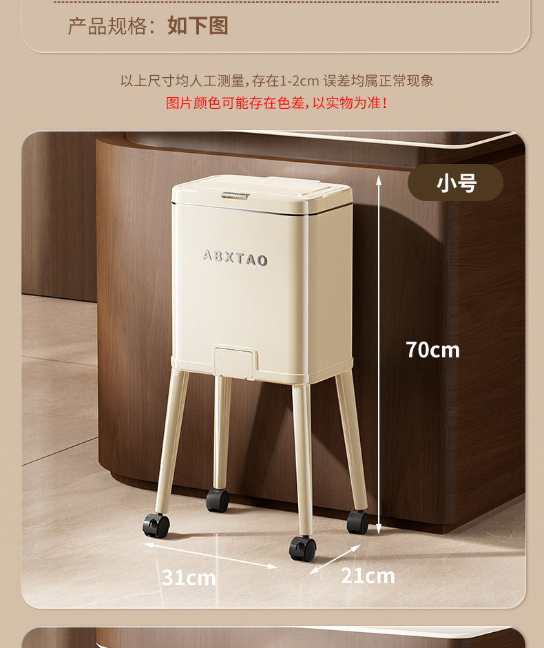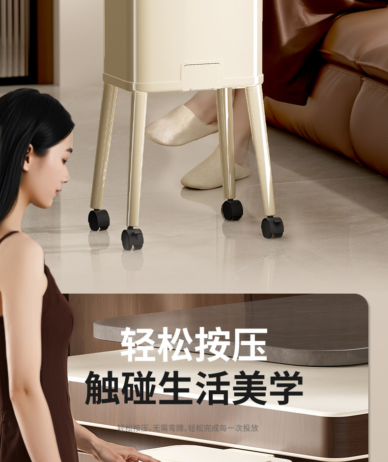 Household Kitchen High-Footed Trash Can That Doesn'T Require Bending Over, 2026 Model, with Lid for Living Room, High Aesthetic Value, Large Capacity, with Wheels for Easy Movement
