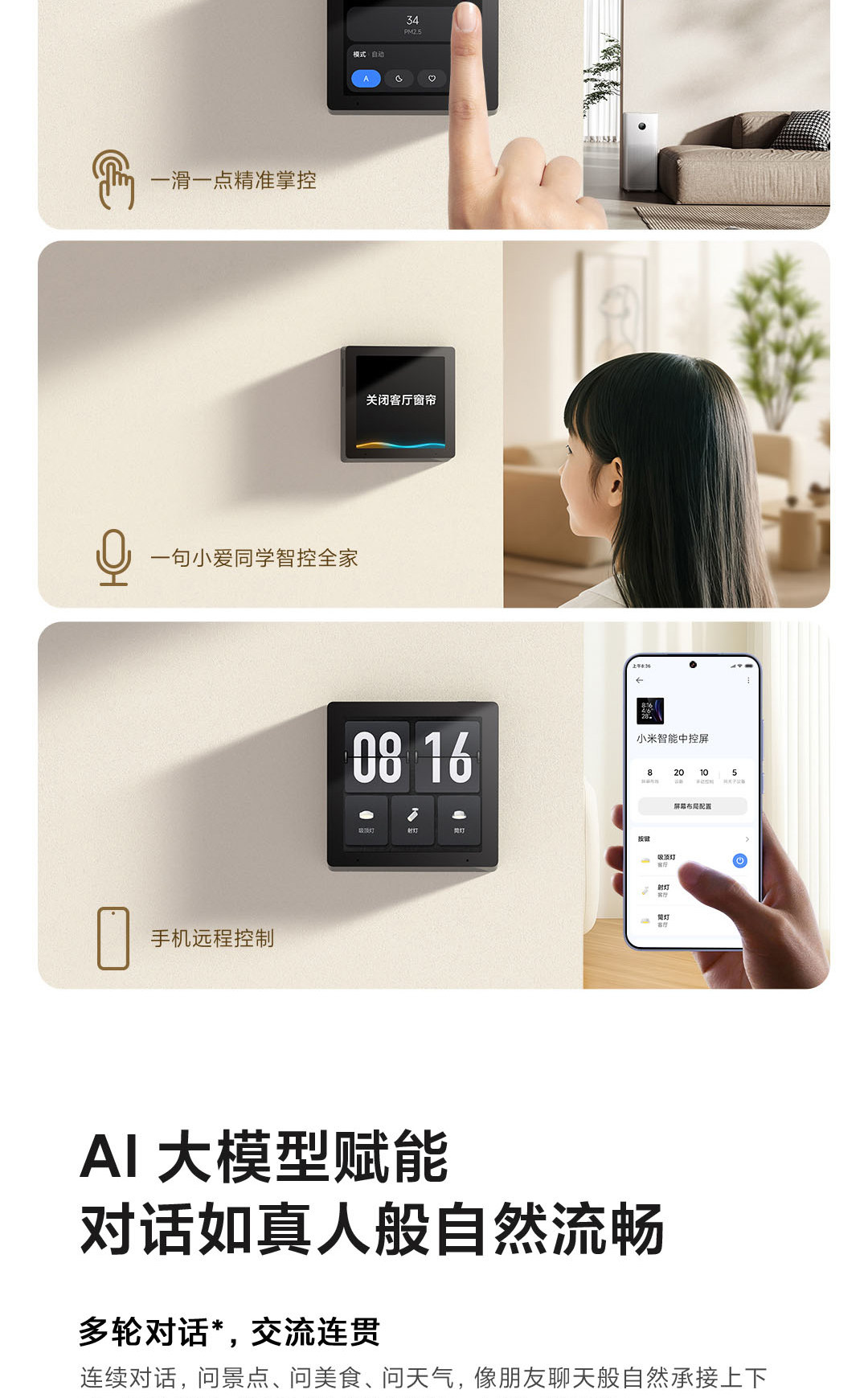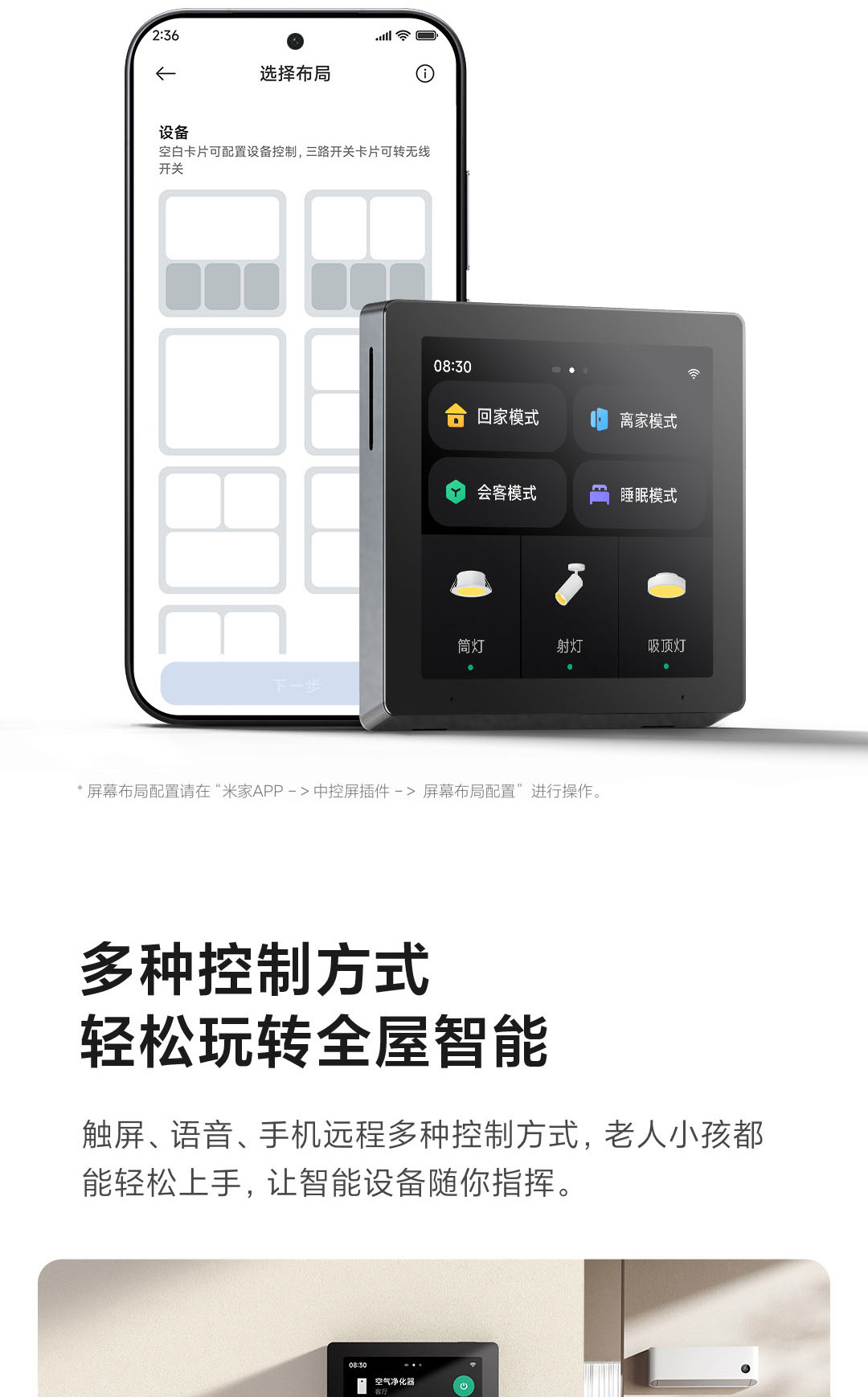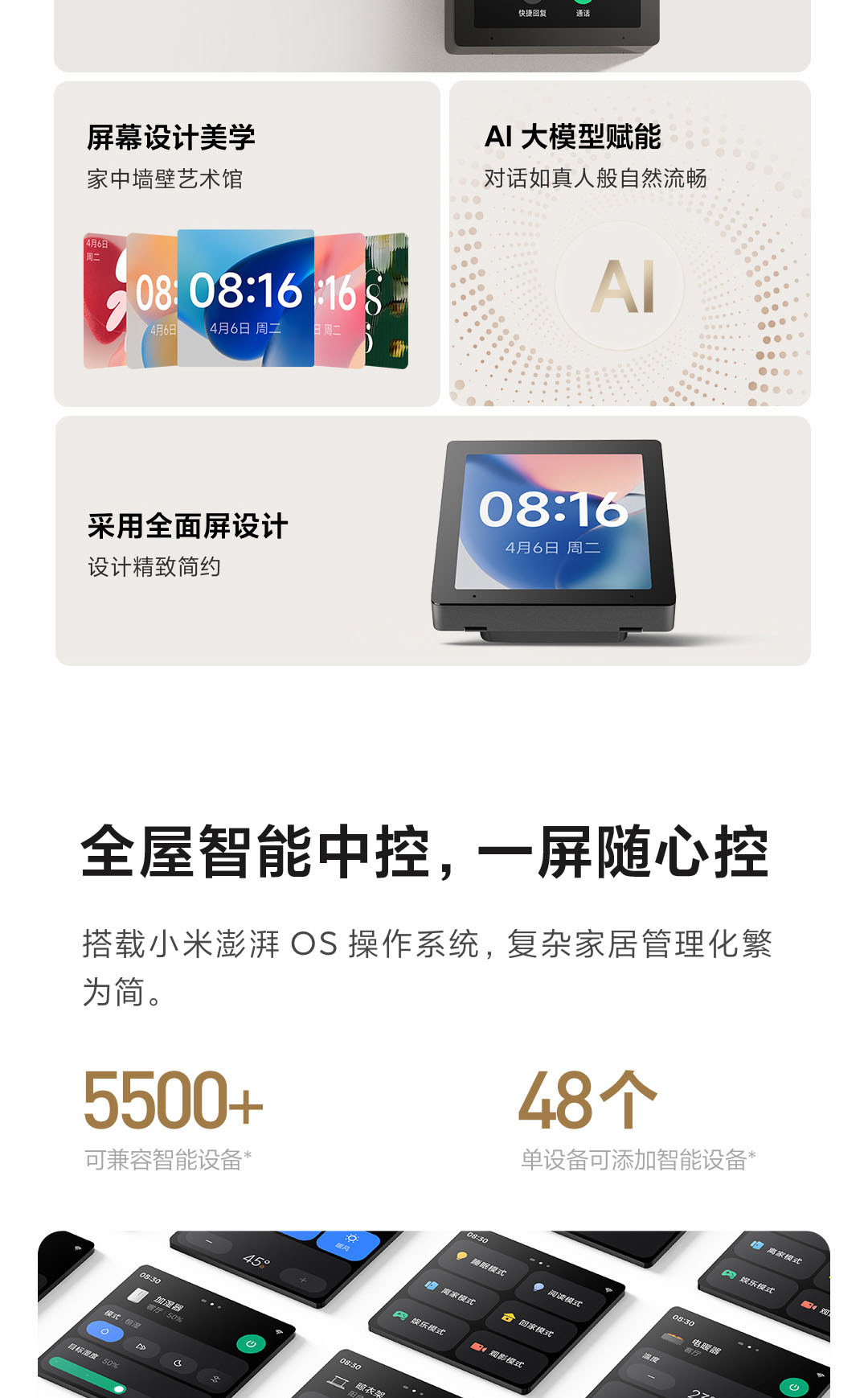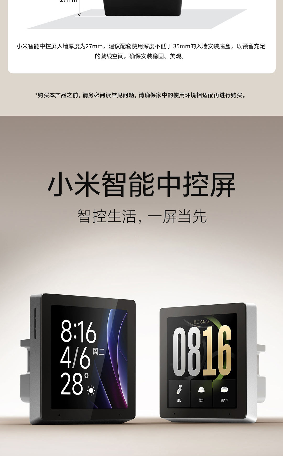 Xiaomi Smart Central Control Screen, Whole-House Smart Central Control with Built-In Mesh 2.0 Gateway, Voice Control, Smart Touch Screen
