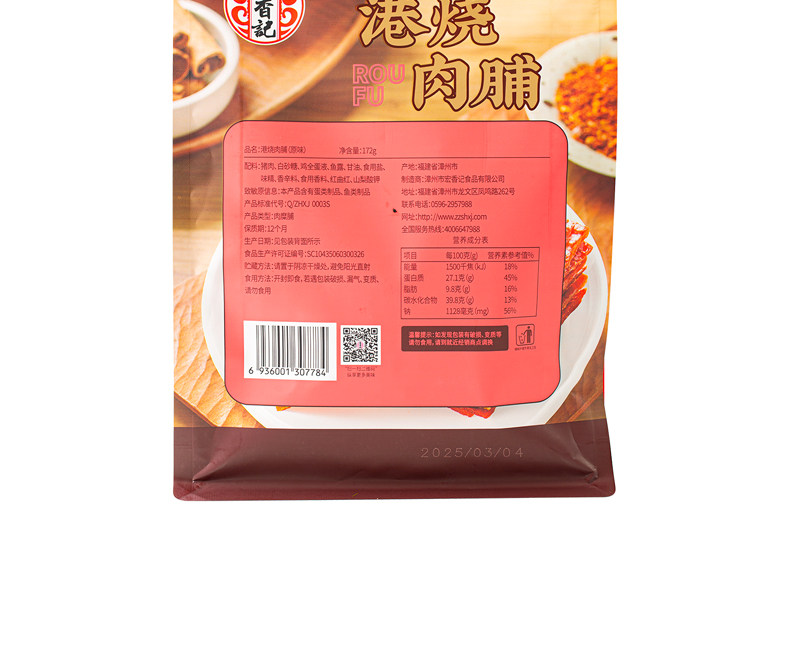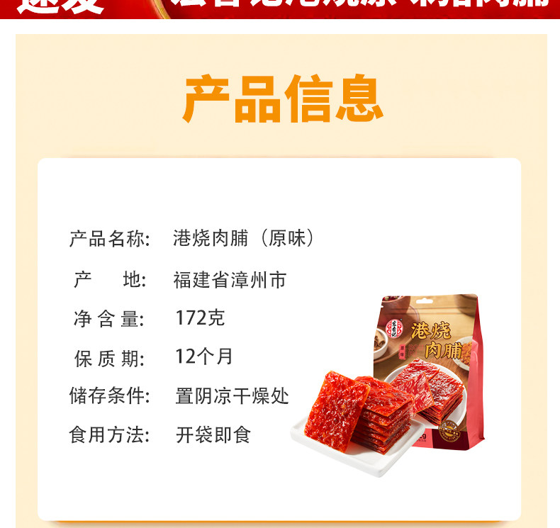Hongxiangji Hong Kong-Style Pork Jerky Original Flavor 172g Ready-To-Eat Jerky Fujian Specialty Binge-Watching Independent Small Package Snack Leisure Food