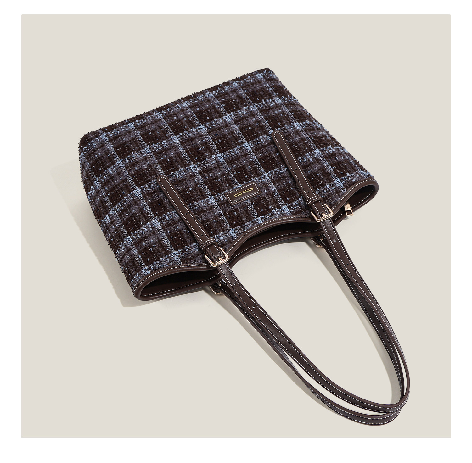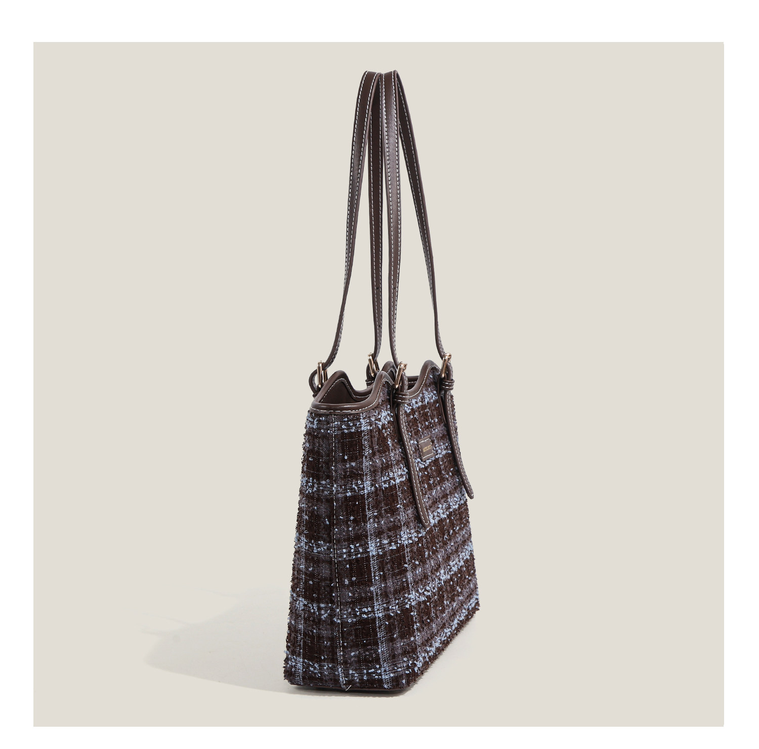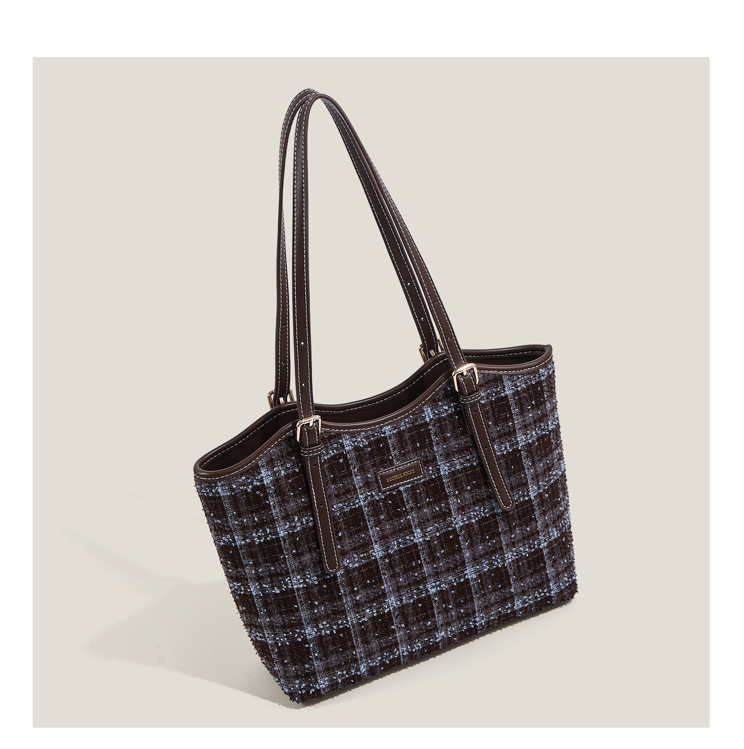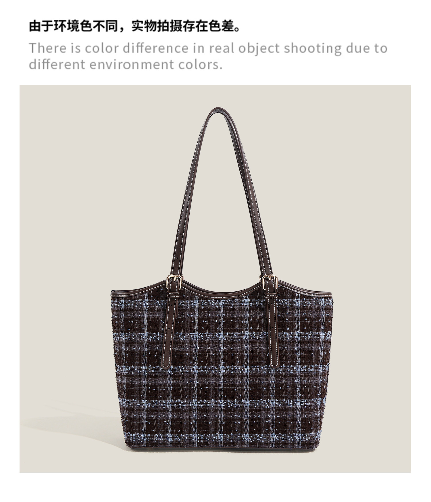 Ctlnokegin Autumn and Winter New Retro Woolen Plaid Tote Bag Women's Large-Capacity Class Commuting Shoulder Bag