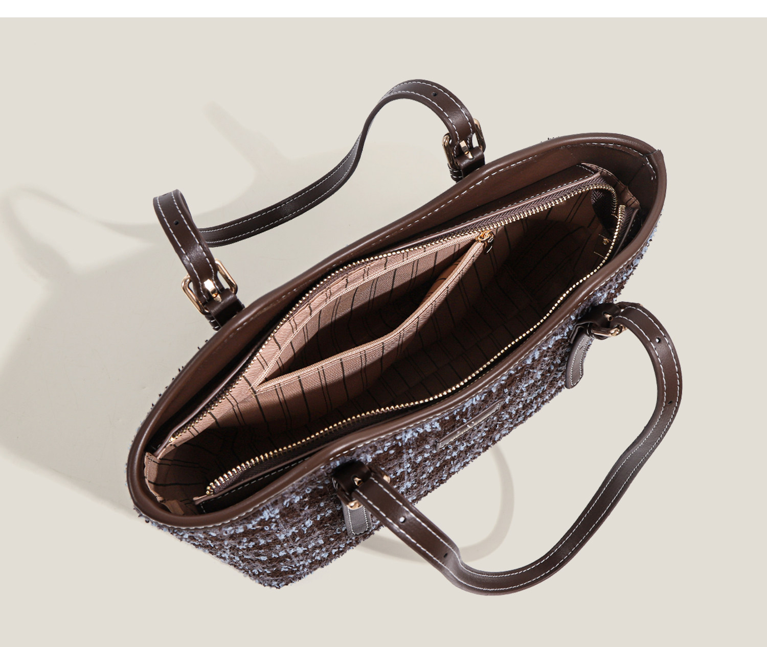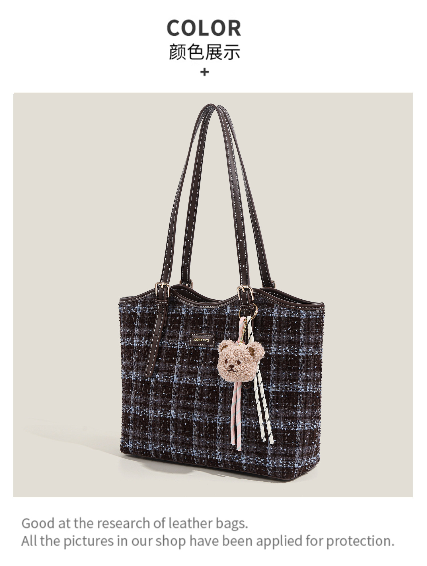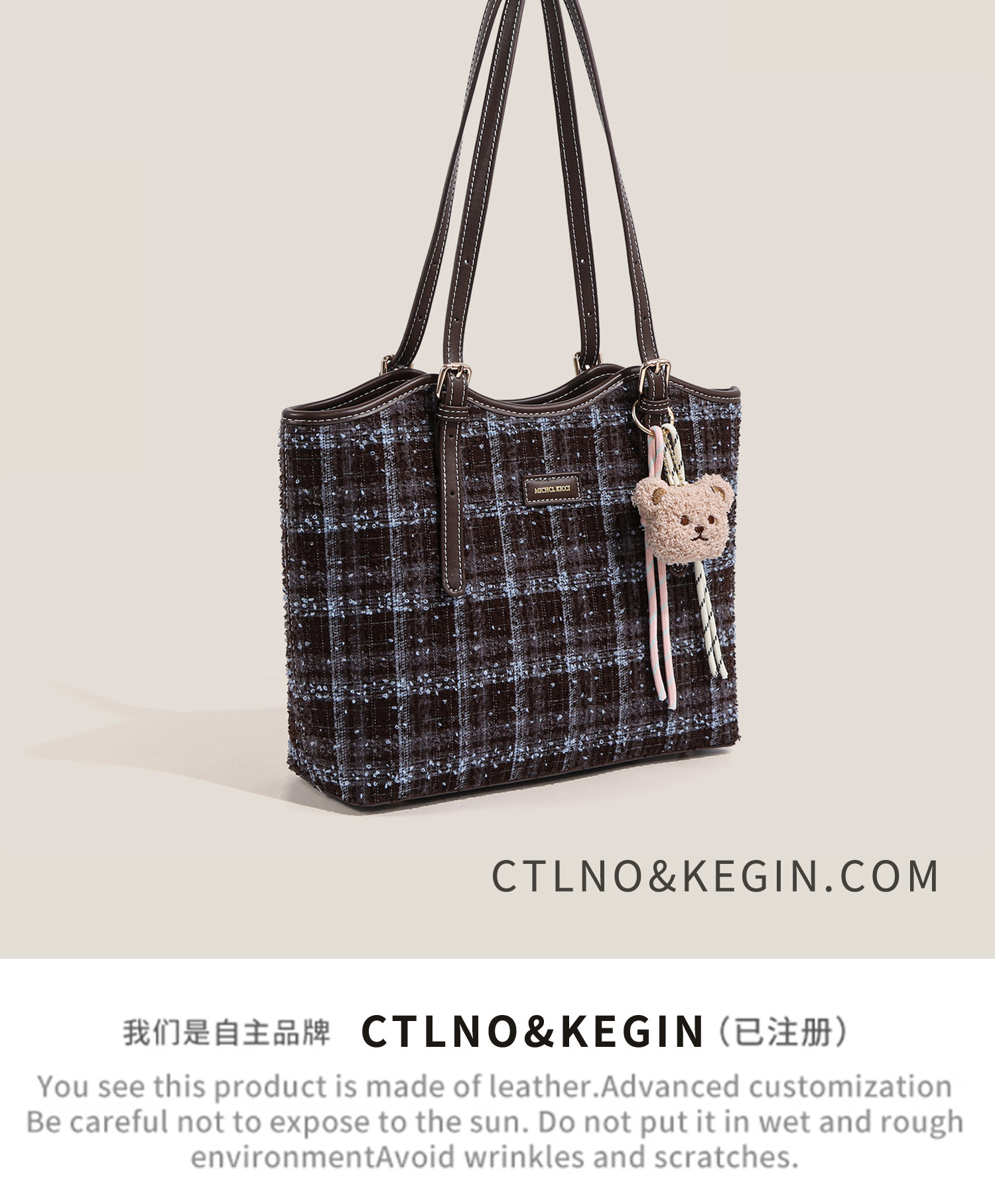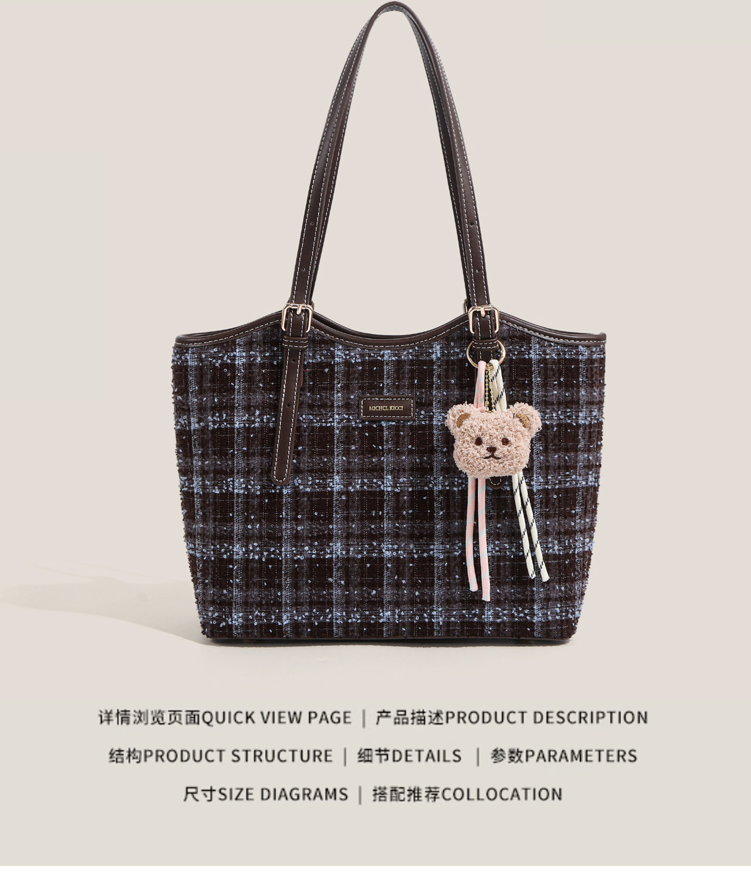 Ctlnokegin Autumn and Winter New Retro Woolen Plaid Tote Bag Women's Large-Capacity Class Commuting Shoulder Bag