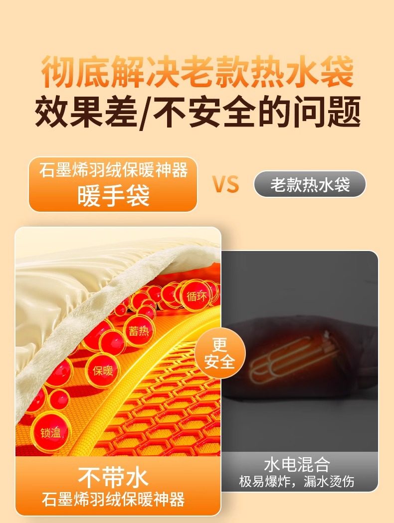Graphene down Hot Water Bottle Rechargeable Hand Warmer Waterless Hand Warmer Explosion-Proof 2025 New Model Birthday Gift for Girls