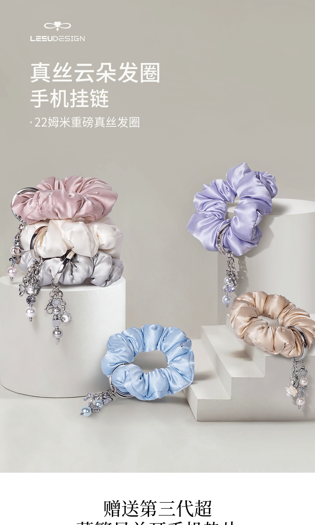Leeudesign New Product 100% Mulberry Silk Hair Tie Phone Chain, Light Luxury and High-End Feel, 22 Momme Silk Wrist Short Phone Case Lanyard, Super Pretty Lanyard, Niche Design Bag Accessory
