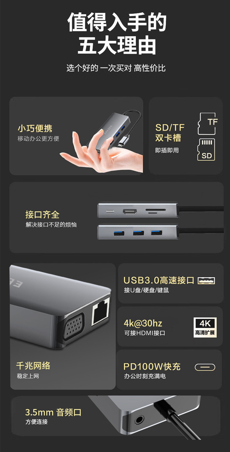 | Color Classification | [Five-In-One] Usb3.0X3+Type-C Power Supply Port,[5-in-1]/Black Usb3.0X3+Gigabit Ethernet Port+Type-C Power Supply Port,Store Manager Recommends/New Product [Five-In-One] Usb3.0+Usb2.0X2+Hdmi+Pd,[5-in-1] Metal Usb3.2*2+Type-C3.2X2+Type-C Power Supply Port Hc05 Pro,[5-in-1]/Black Usb3.0+Usb2.0X2+Pd+Gigabit Ethernet Port,New [5-in-1 Network Port] Usb3.0+Pd+Gigabit Network Port,[5-in-1] Metal Type-C3.0+Usb3.0X2+Type-C Power Supply Port+Gigabit Network Port,New Product [5-in-1 Network Port] Usb3.0+Pd+Gigabit Network Port,[5-in-1] Metal Type-C3.0+Usb3.0X2+Pd+Gigabit Ethernet Port,[5-in-1] Usb2.0X3+Pd100W+Dp,[6-in-1] Usb3.0X3+Hdmi+Gigabit Ethernet Port+Pd,[8-in-1] Usb3.0*3+Hdmi+Card Reader+Pd+Gigabit Network Port,[10-in-1] Usb3.0*3+Hdmi+Vga+Card Reader+Gigabit Network Port+Pd+Audio,Docking Station Hard Drive Box Base |