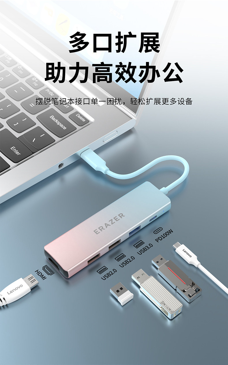 Lenovo Eco Brand Type-C Docking Station HDMI Screen Projection Converter USB Hub Multi-Port Adapter Compatible with Huawei Apple 17 Laptops iPad
