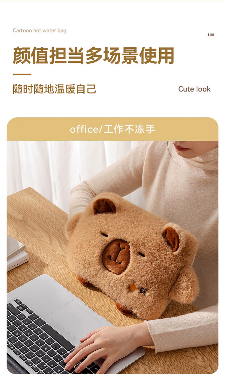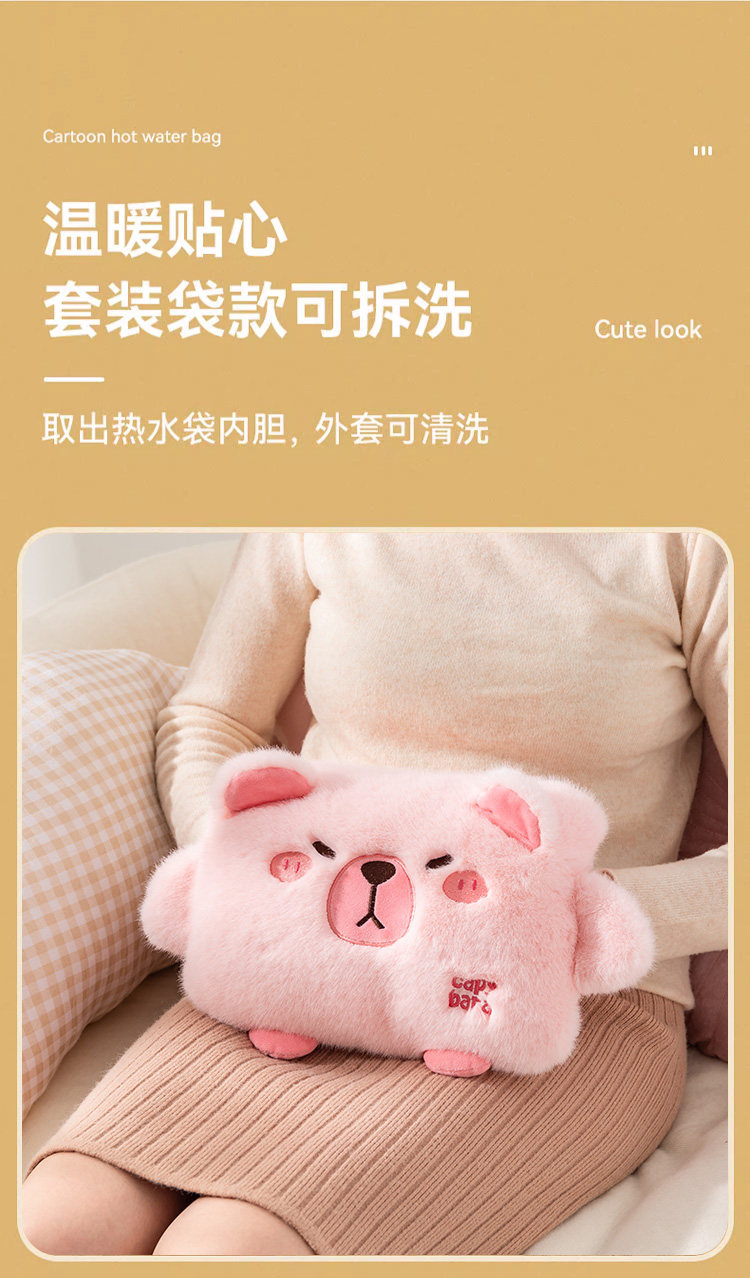 Rechargeable Hot Water Bottle, Cute Plush Hand Warmer, Warm Baby, Hot Compress for Girls, Water-Filled, Explosion-Proof Hot Water Bottle