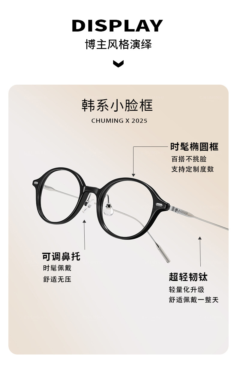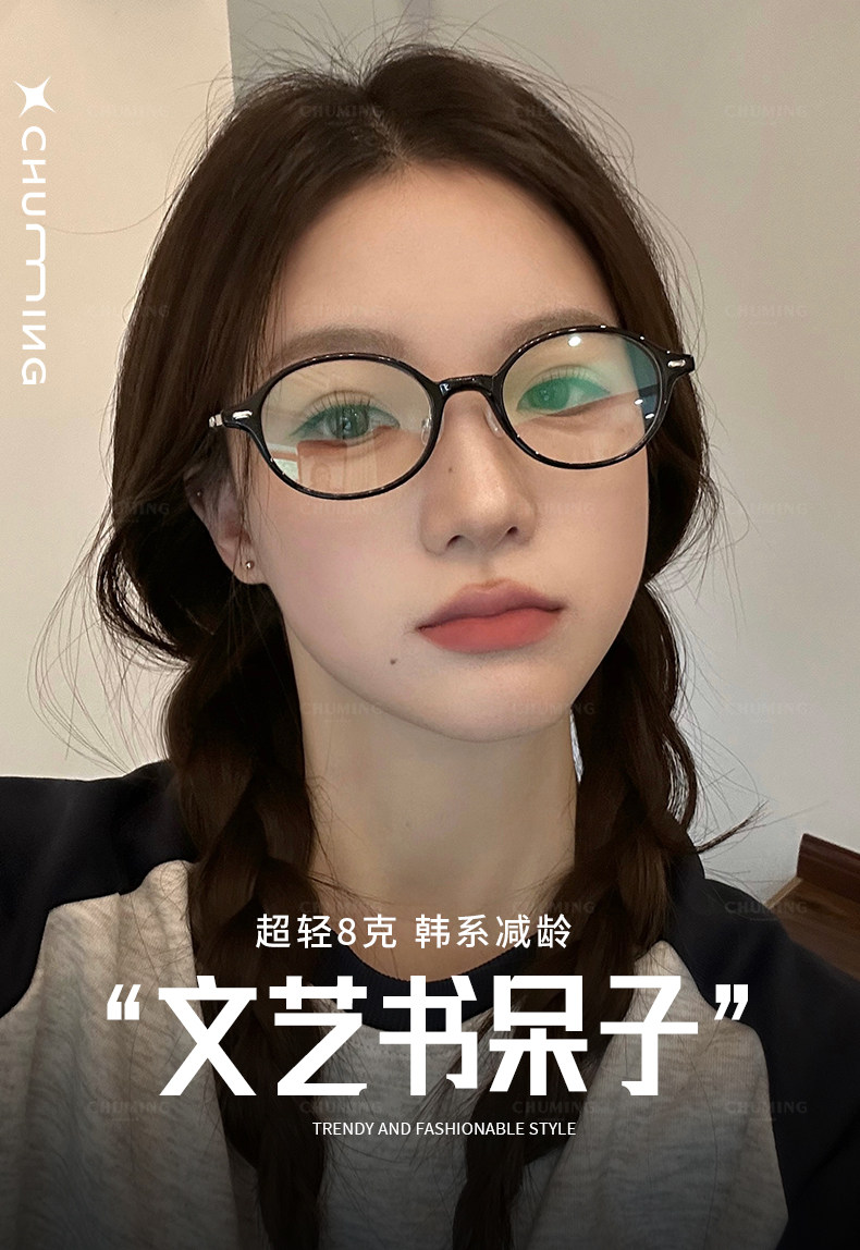 Chuming Ultra-Light Titanium Frame Black-Rimmed Glasses for Women, Can Be Fitted with Prescription Lenses, Korean Style, Nerd-Style, Natural Look, Blue Light Blocking Eyeglass Frame