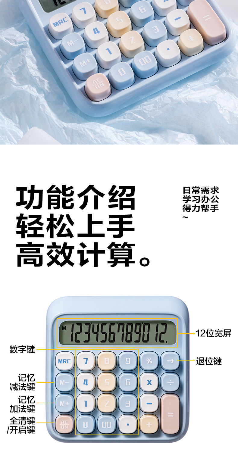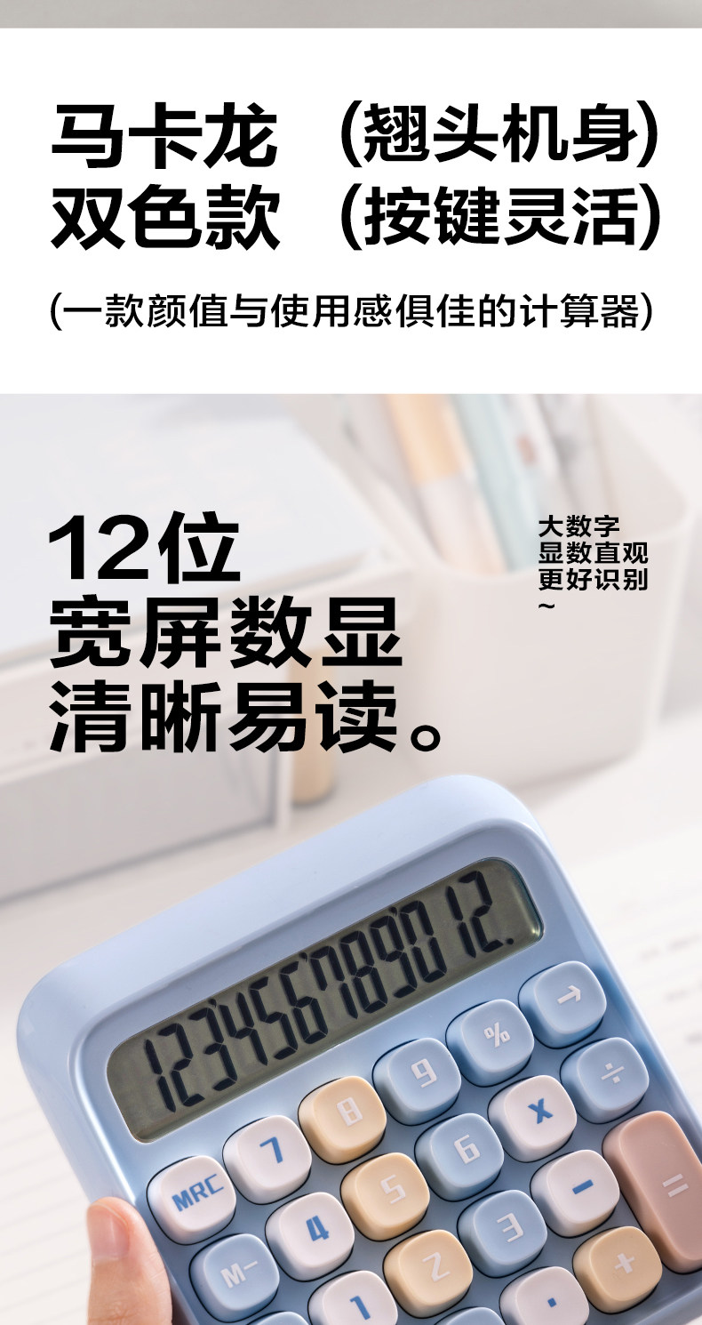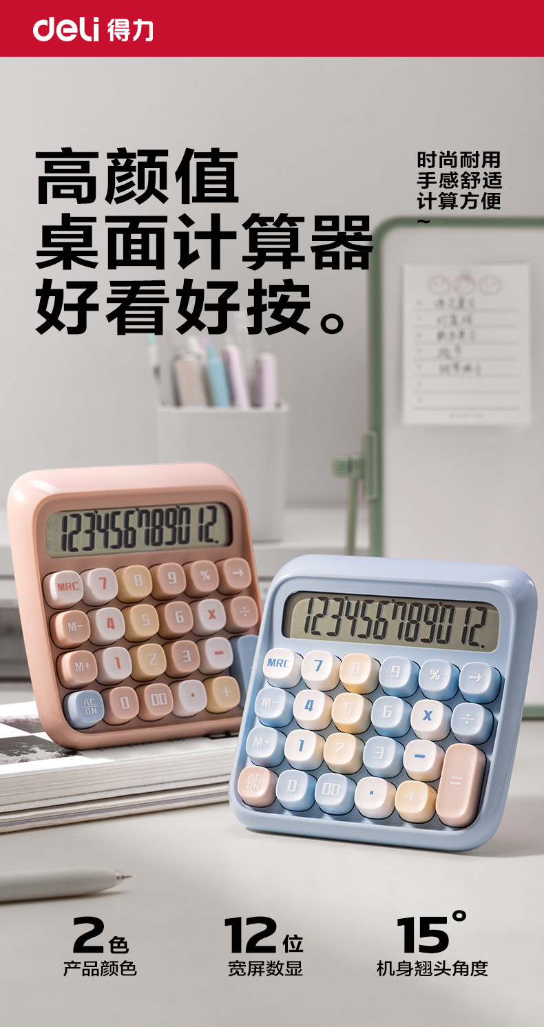 Deli Office Calculator for Finance and Accounting, High Aesthetic Value, Macaron Goddess Style, Multifunctional for College Students, Non-Voice Model, Calculator for Exams, Office Desktop, Large Display, High Keyboard Keys