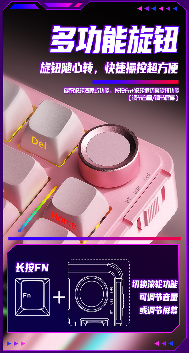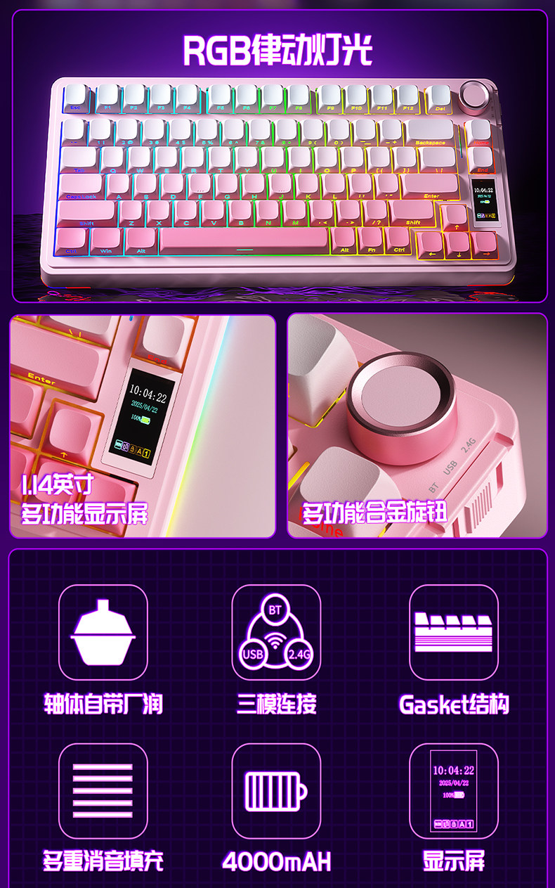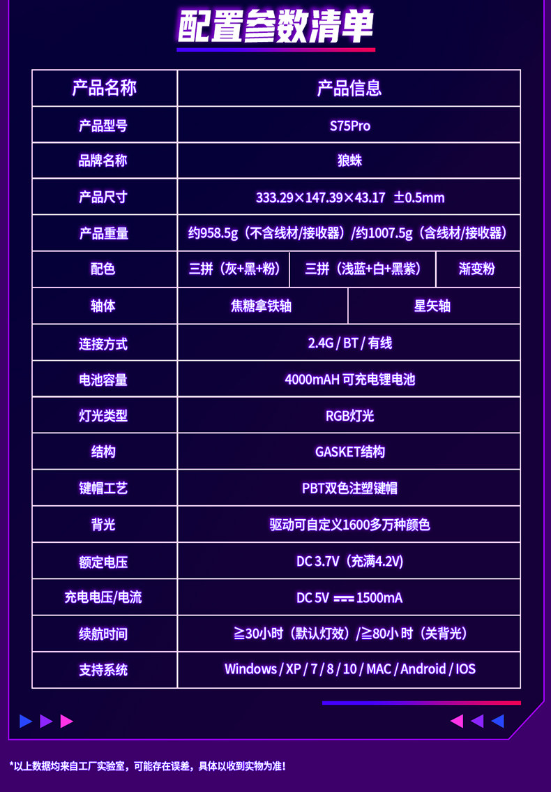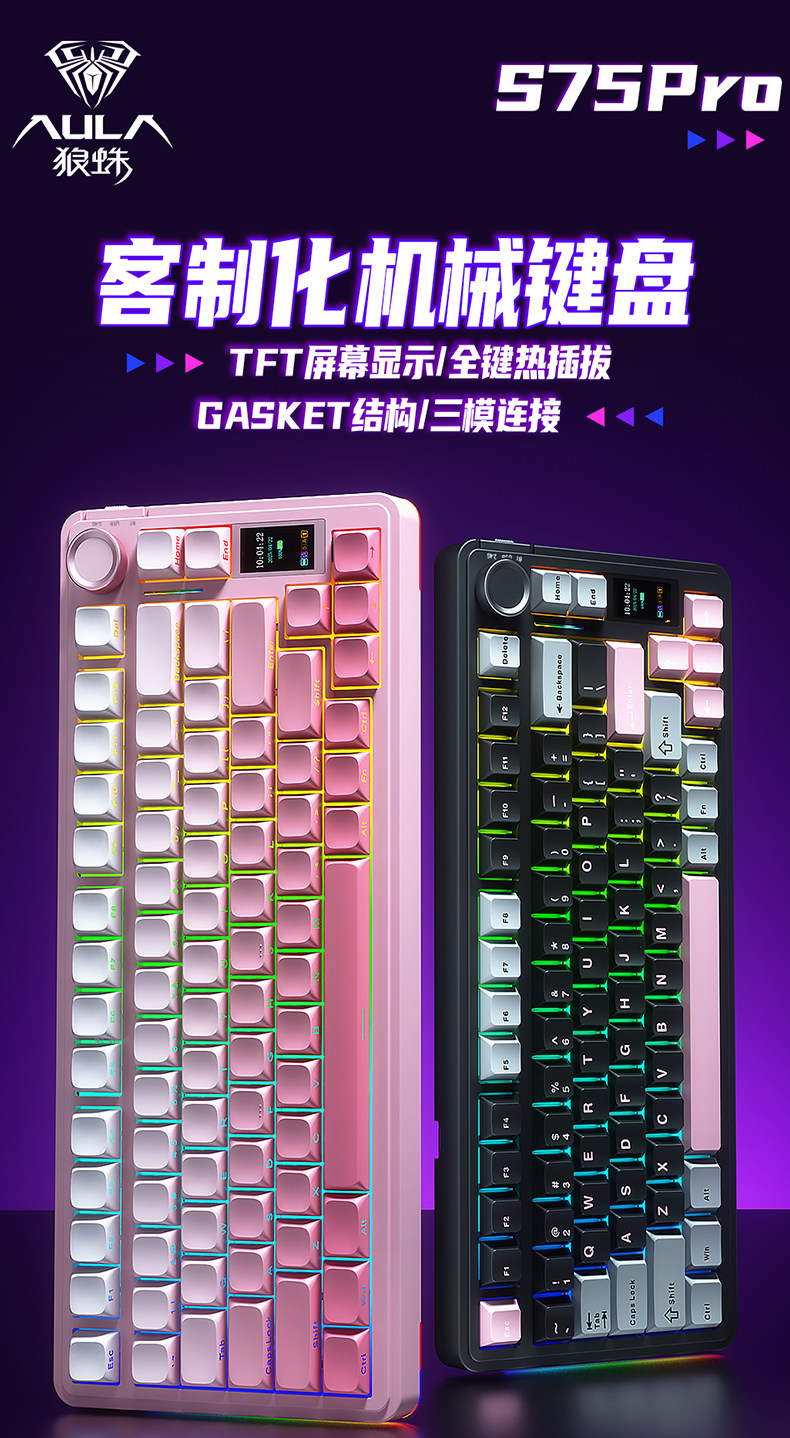 Wolf Spider S75Pro Wireless Customized Mechanical Keyboard, Three-Mode 2.4g Gaming Keyboard for E-Sports, with Contour Side Engraving