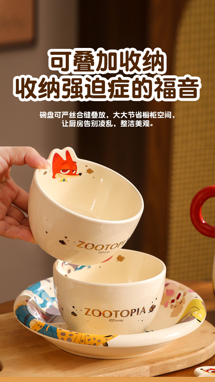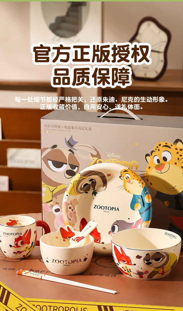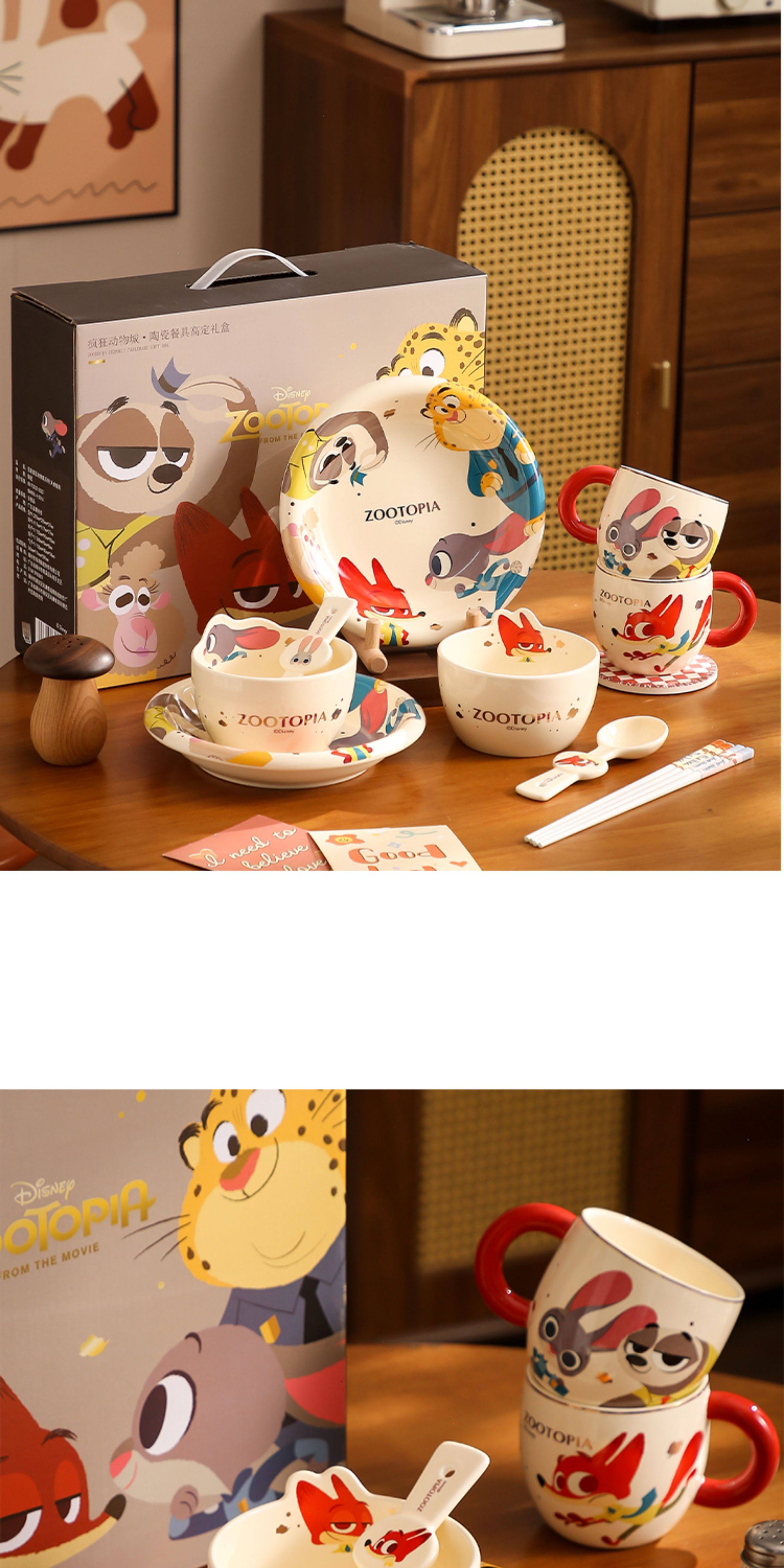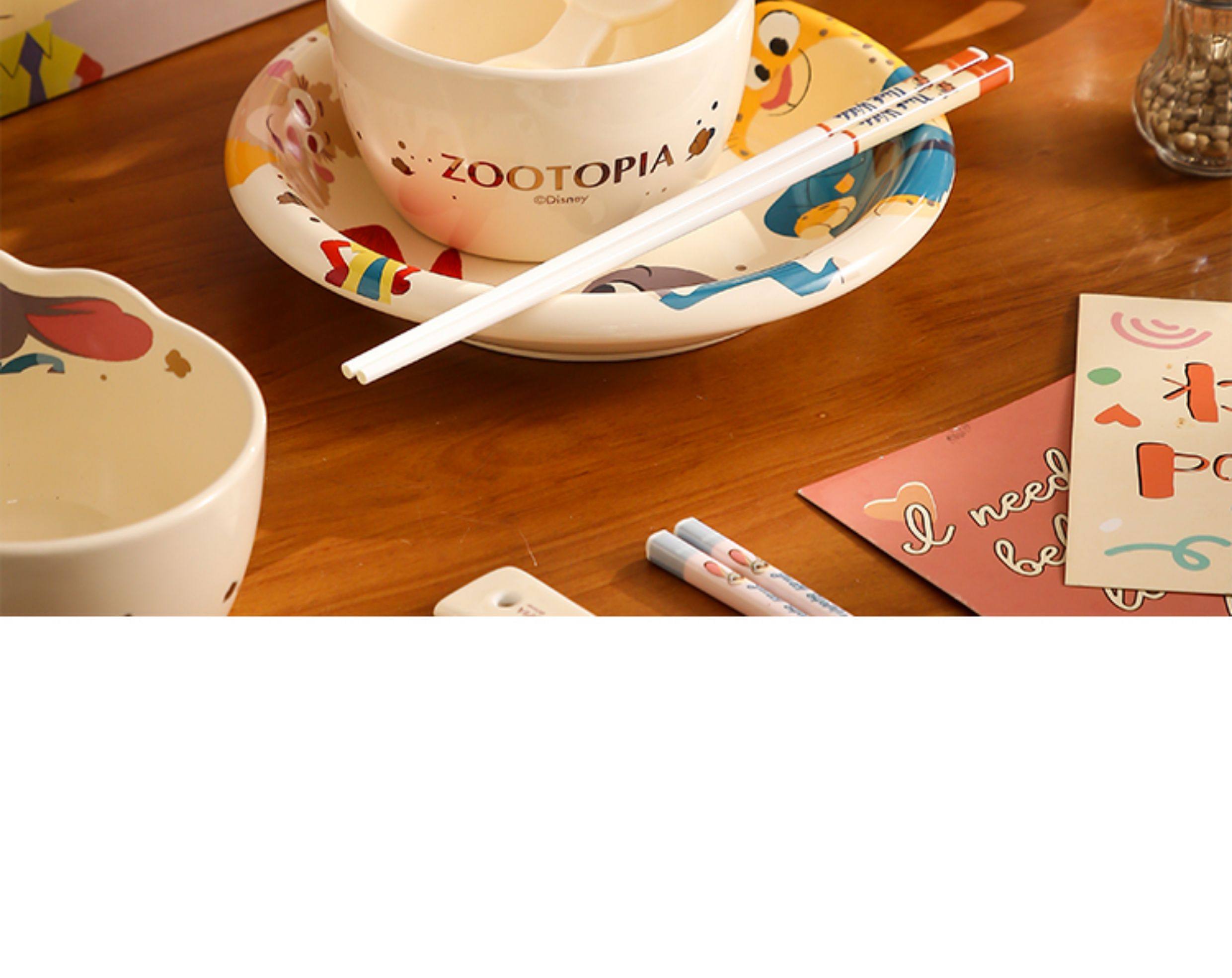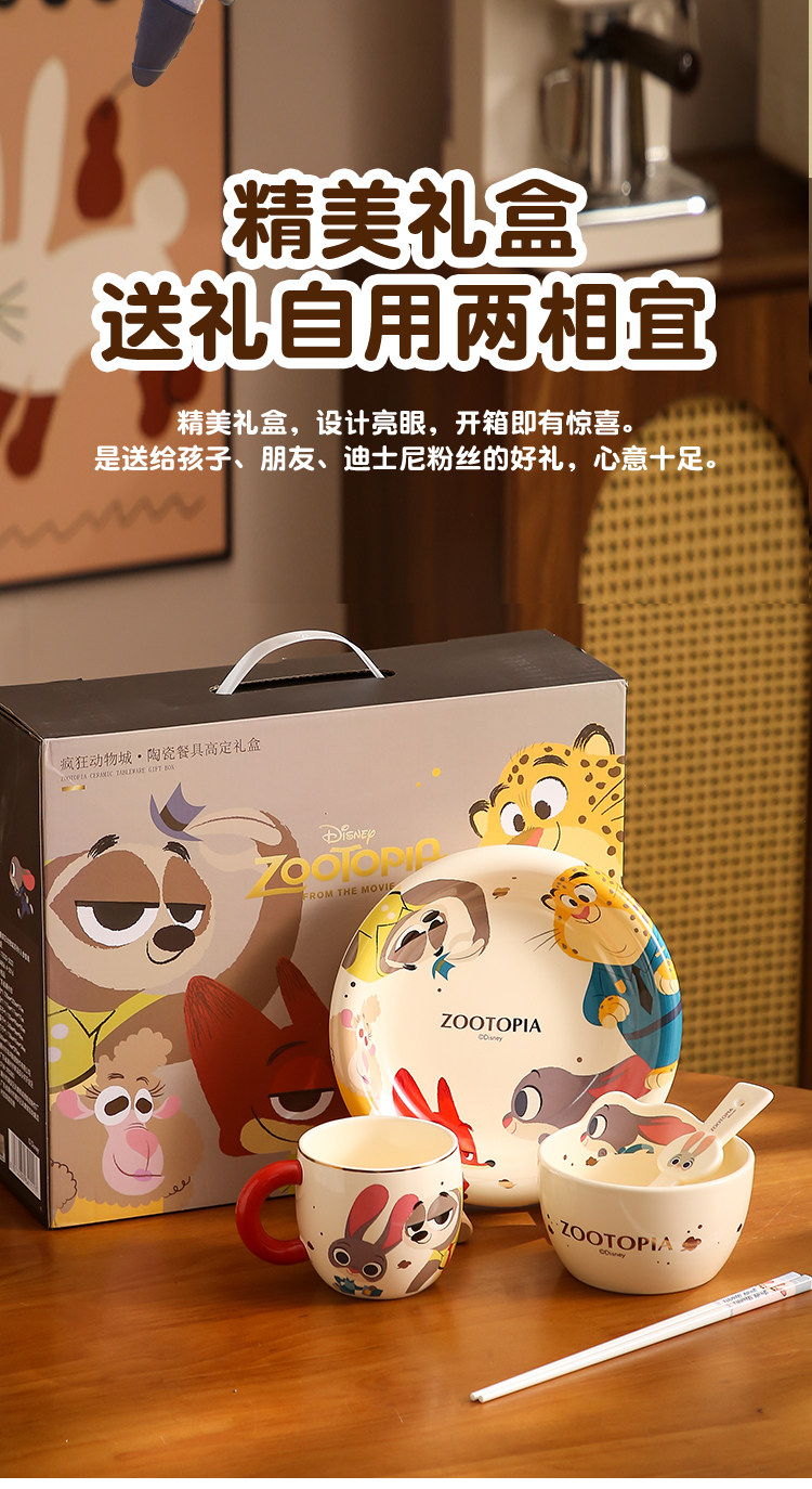 Zootopia Tableware Set, High-Quality, Suitable for Girls and Children, Single-Serving Bowls, Plates, and Spoons, Practical Birthday Gift Box