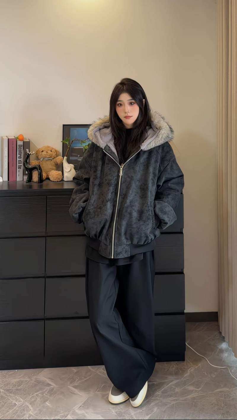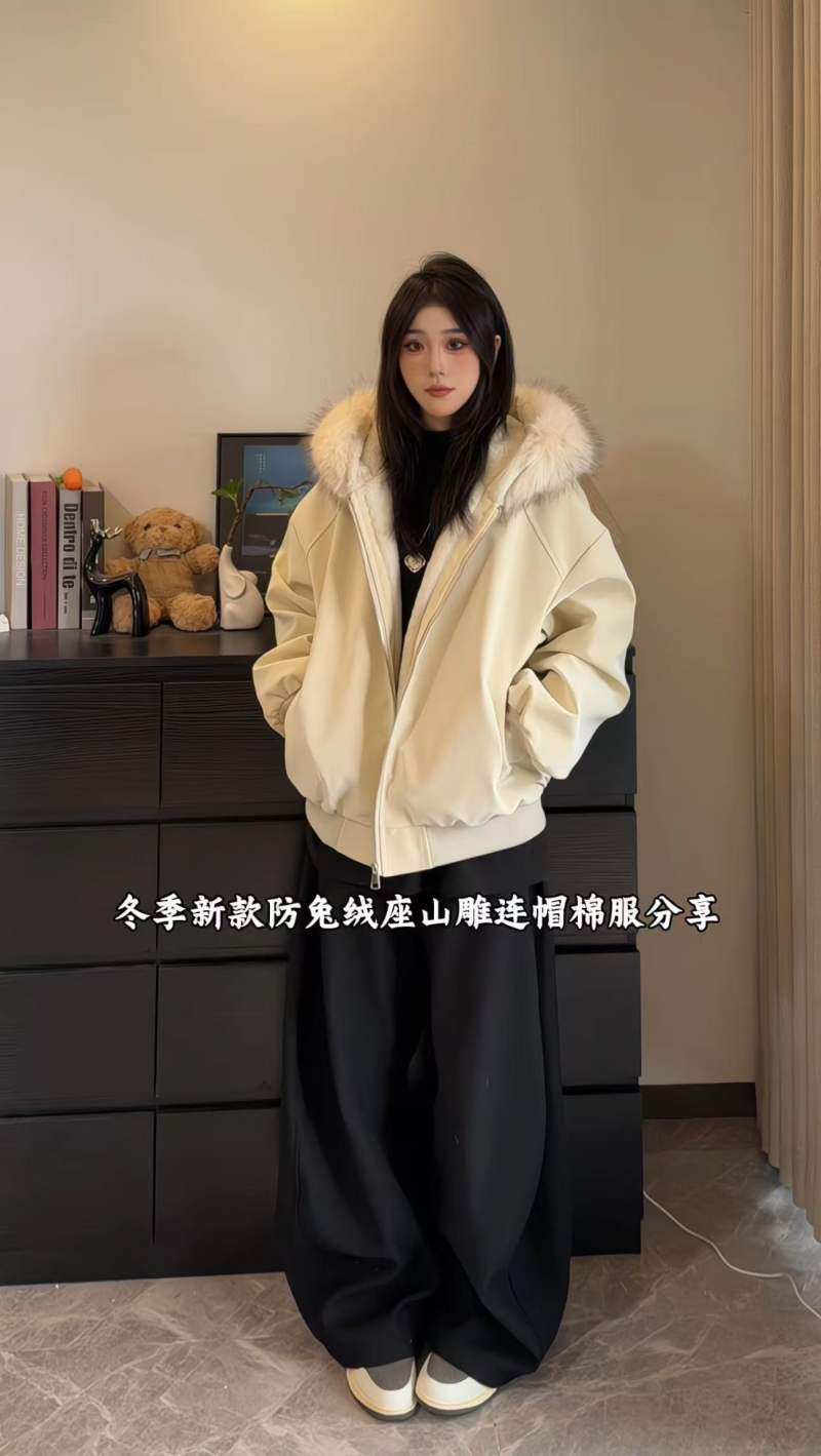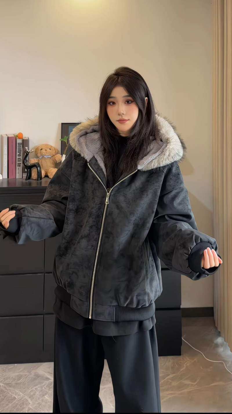 Lychee Pattern Detachable Fur Collar Pu Leather Cotton Jacket for Men and Women, Couple's Thickened Warm Coat, Winter down Cotton Clothing
