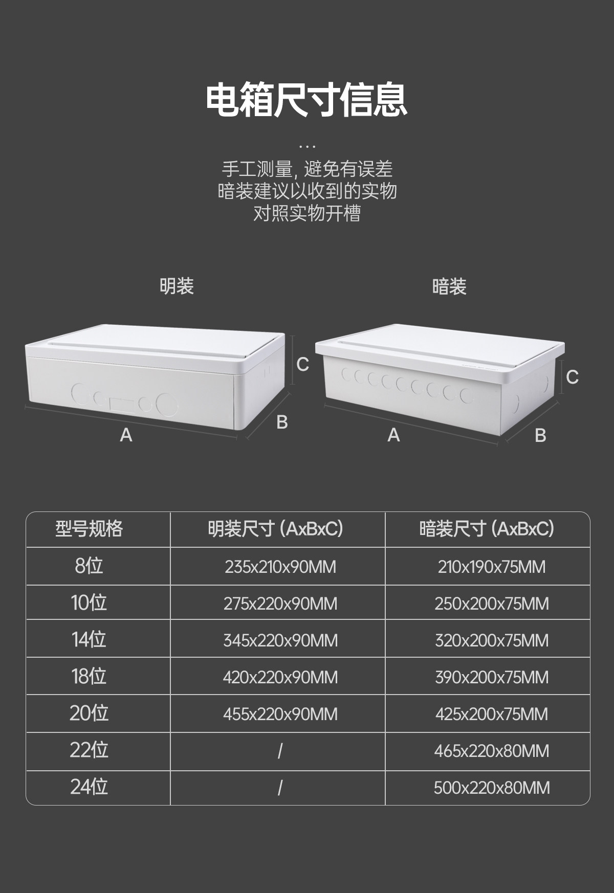 | Color Classification | Surface Mounted (63A+32A*2),Surface Mounted (63A+32A*3),Surface Mounted(63A+32A*5),Surface Mounted(63A+32A*7),Surface Mounted (63A+32A*8),Concealed Installation (63A+32A*2),Concealed Installation (63A+32A*3),Concealed Installation (63A+32A*5),Concealed Installation (63A+32A*7),Concealed Installation (63A+32A*8),Concealed Installation (63A+32A*9),Concealed Installation(63A+32A*10) |