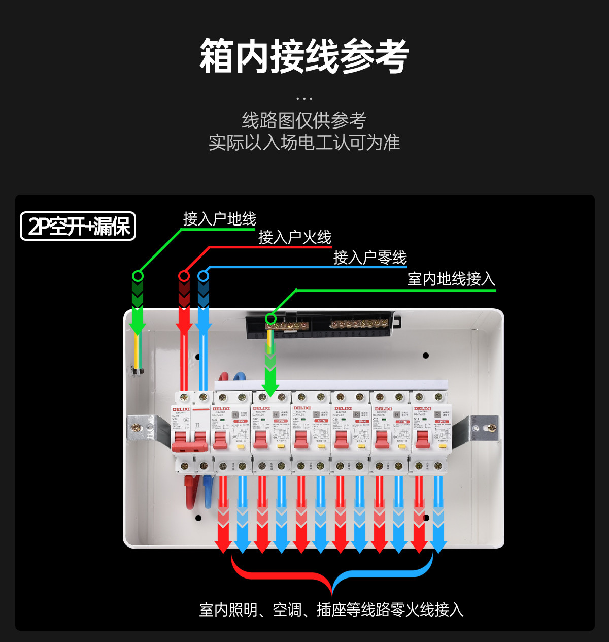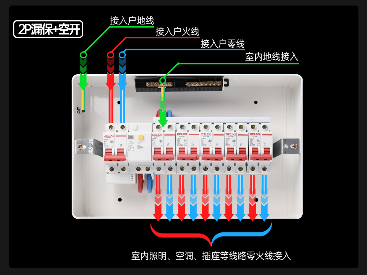 Complete Set of Delixi 2P63A Leakage Protection 32A Circuit Breaker Protection Box for Household High-Voltage Power Box Main Switch Meter Box