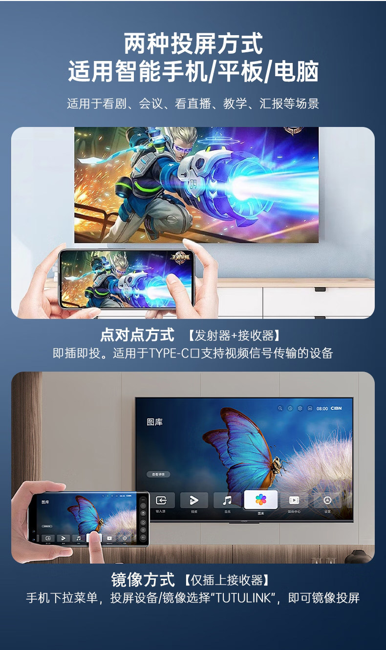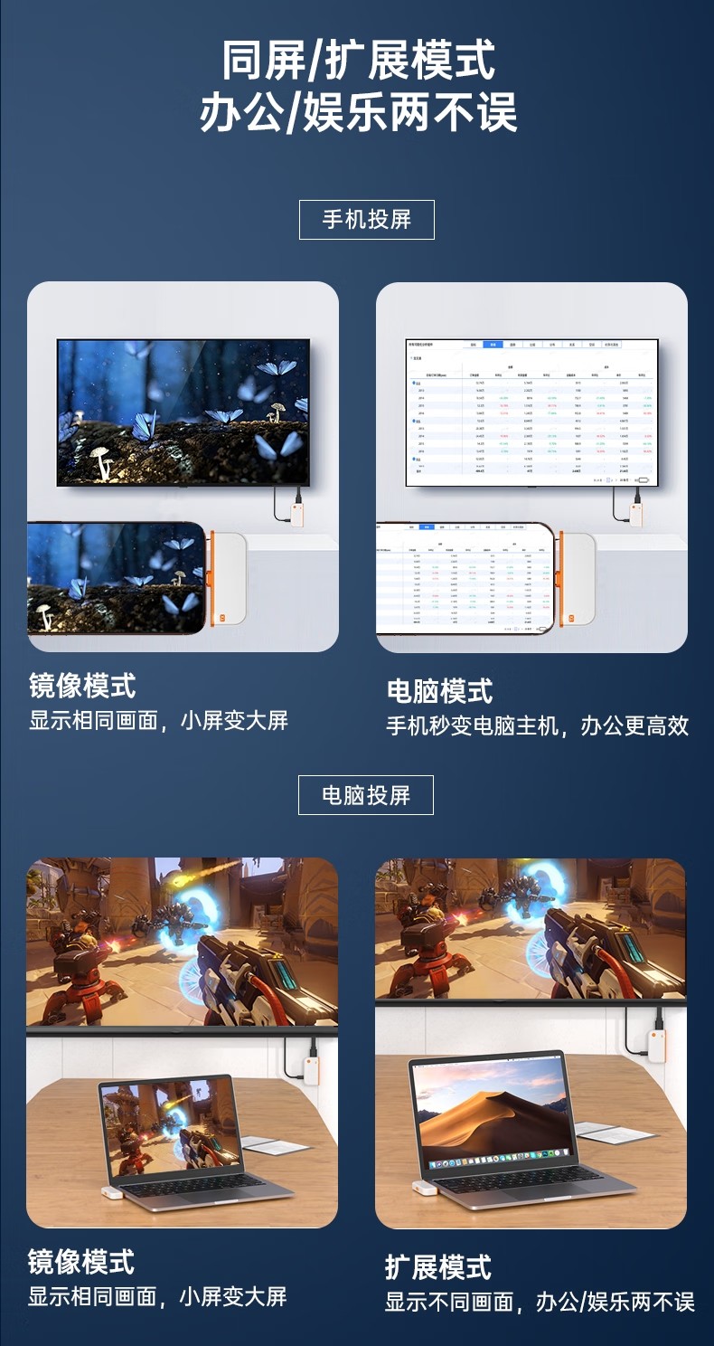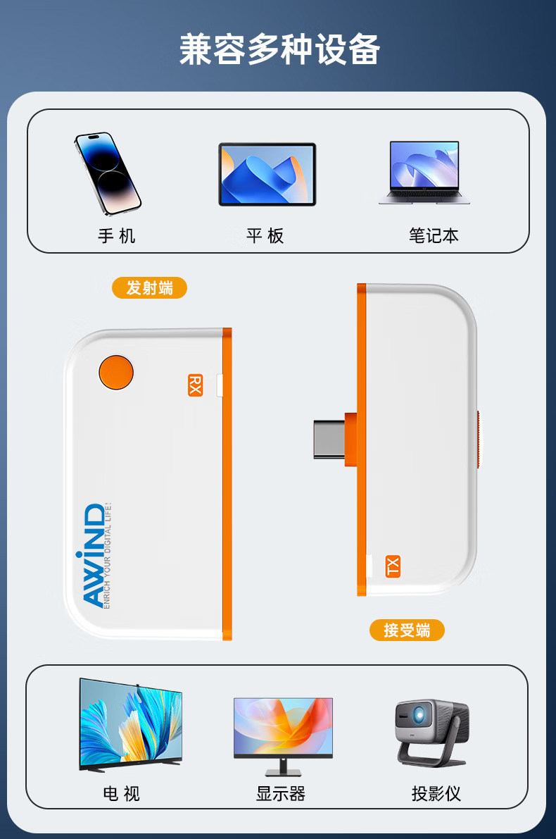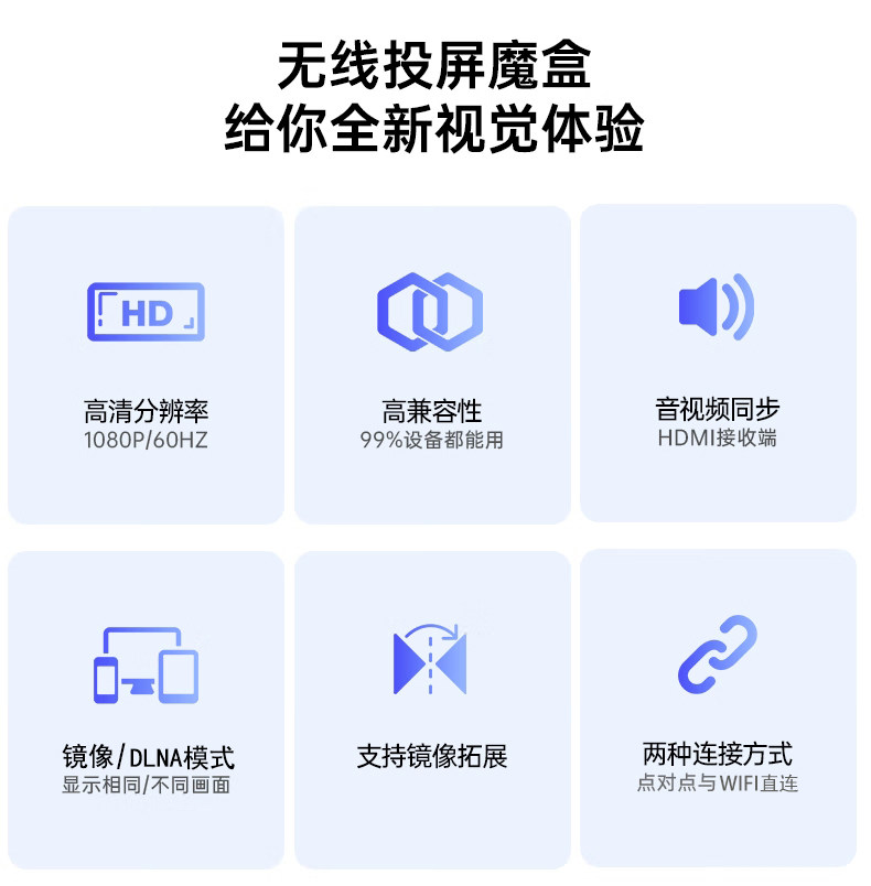 Mobile Phone Screen Projector Connected to Tv and Computer, Same-Screen Projector, Wireless HDMI Transmission, High-Definition Wireless Screen Projector